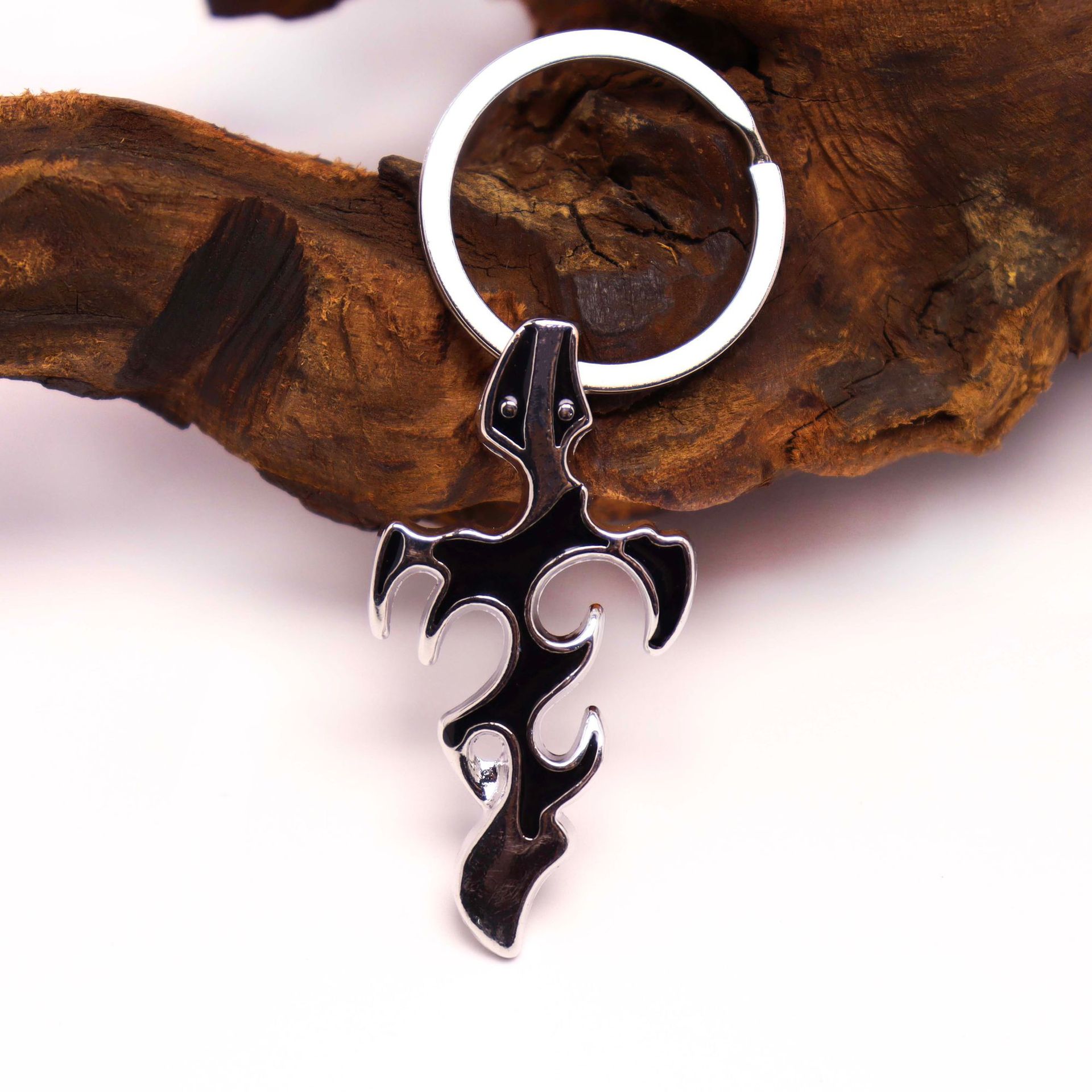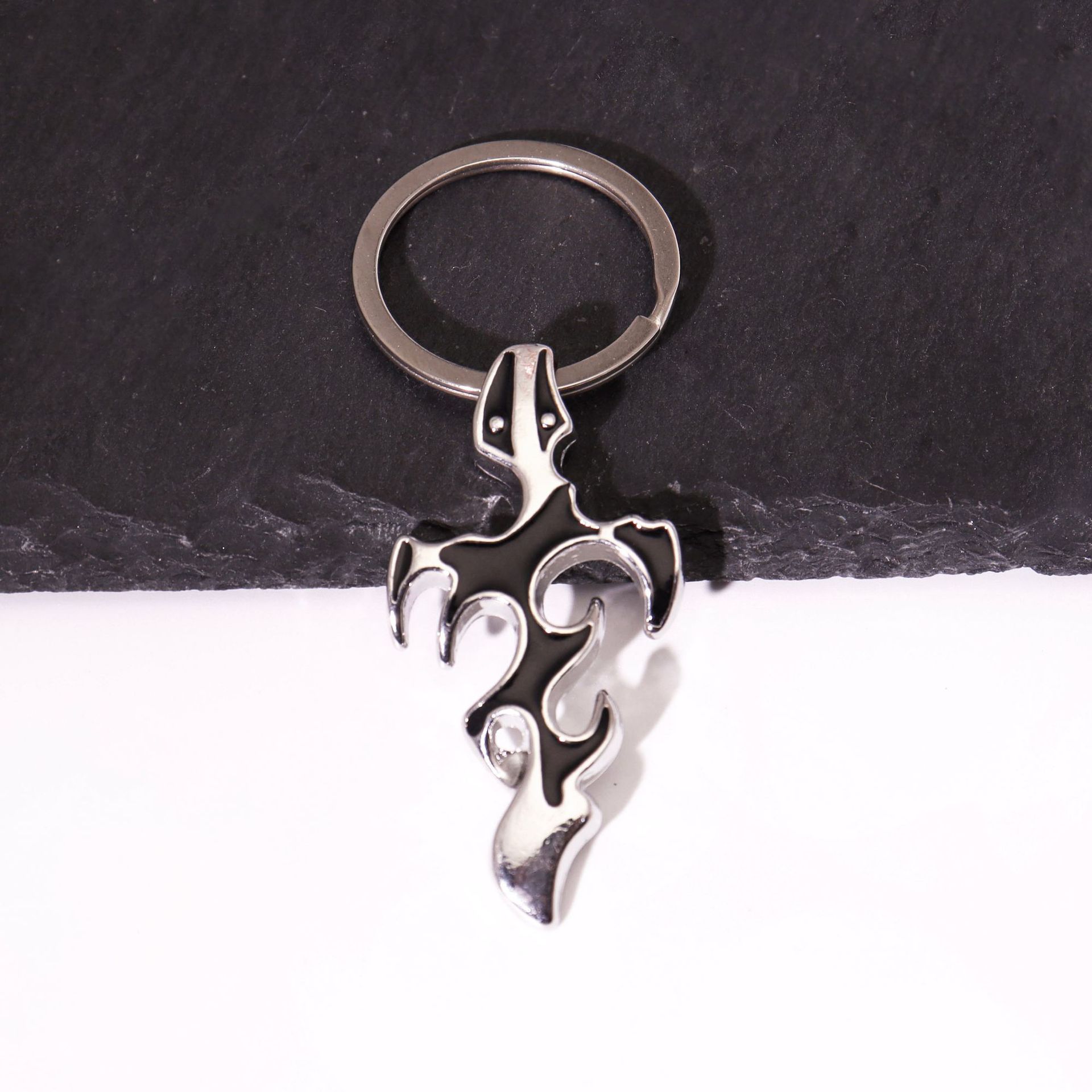 Chiave catena, lega in zinco, Croce, placcato color oro, gioielli di moda & smalto, nero, Venduto da PC