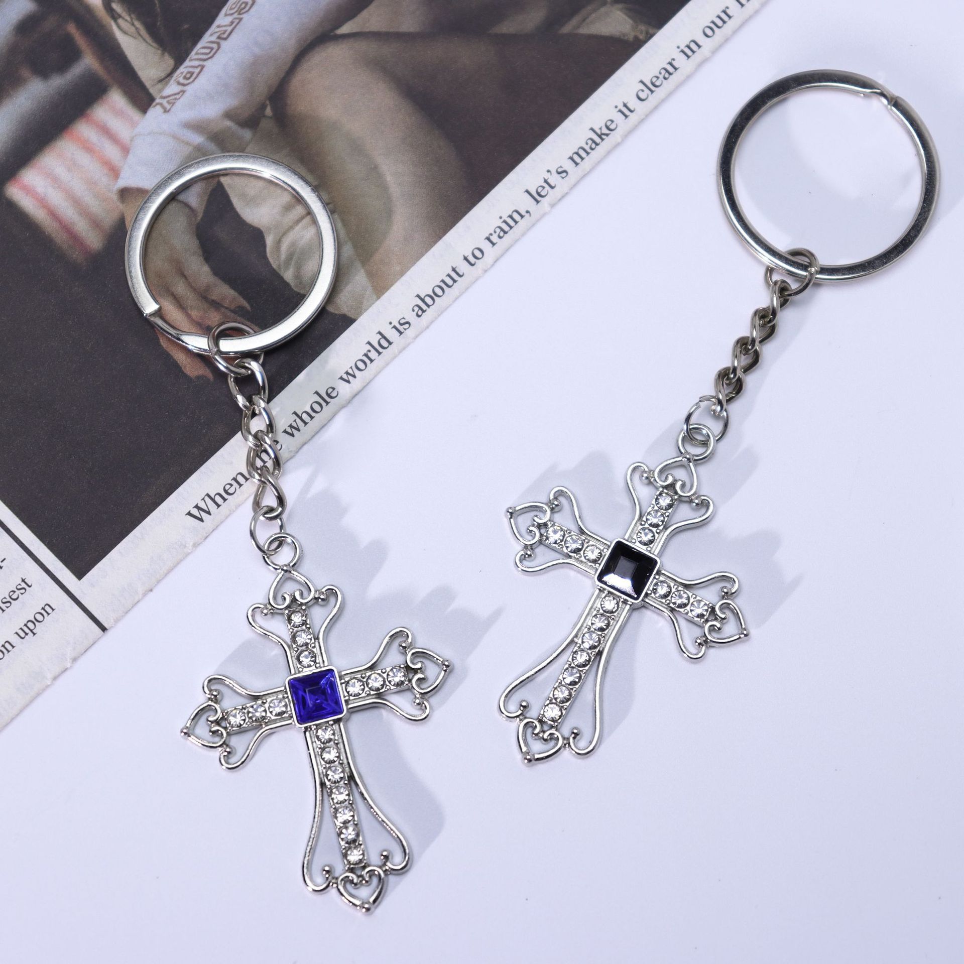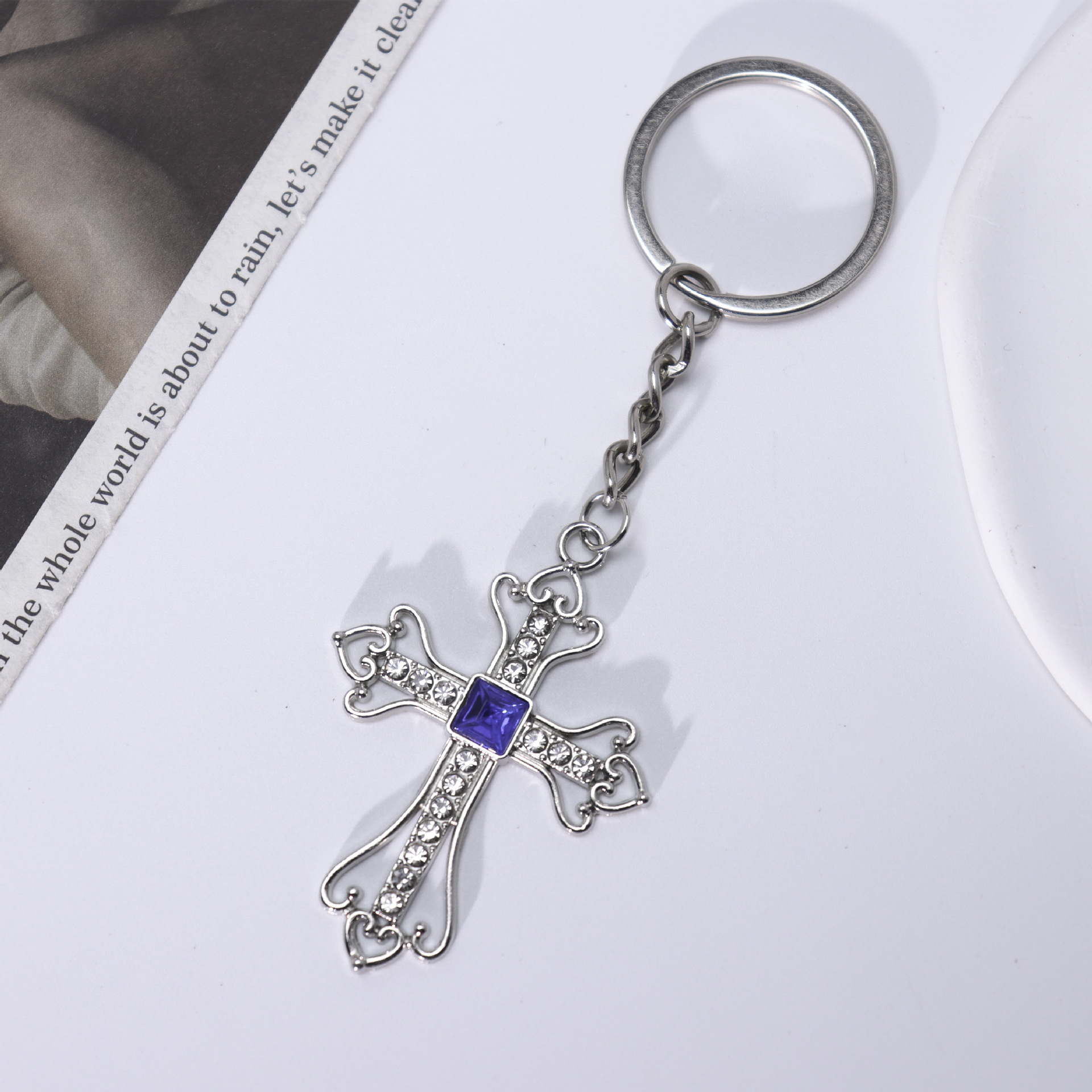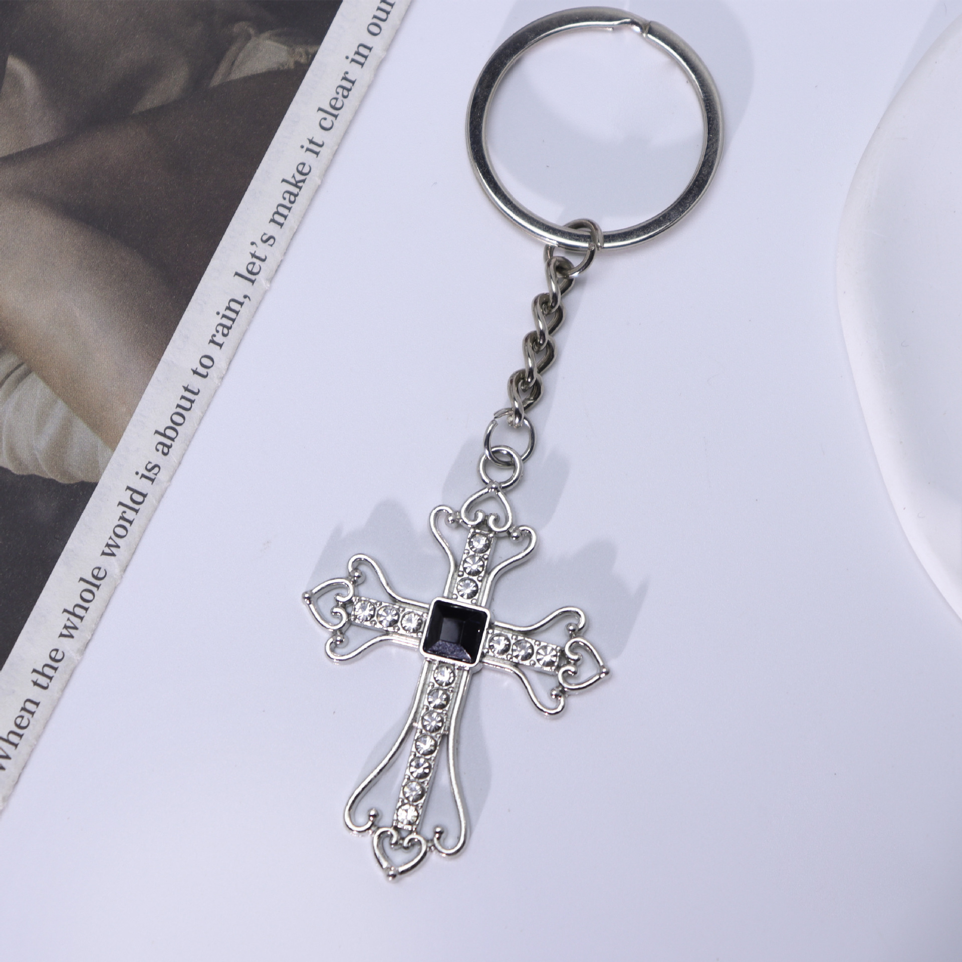 Chiave catena, lega in zinco, Croce, placcato color oro, gioielli di moda & con strass, nessuno, Venduto da PC