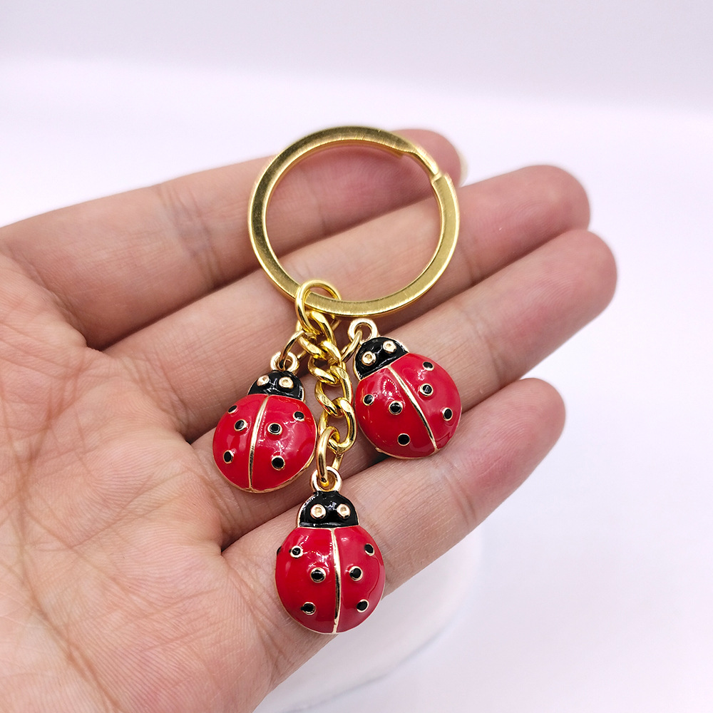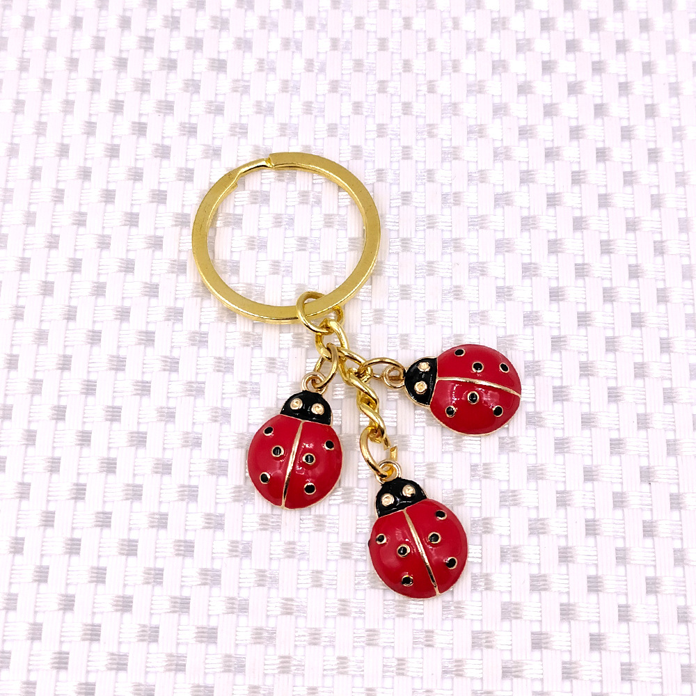 Chiave catena, lega in zinco, Coccinella, placcato color oro, gioielli di moda & smalto, rosso, Venduto da PC