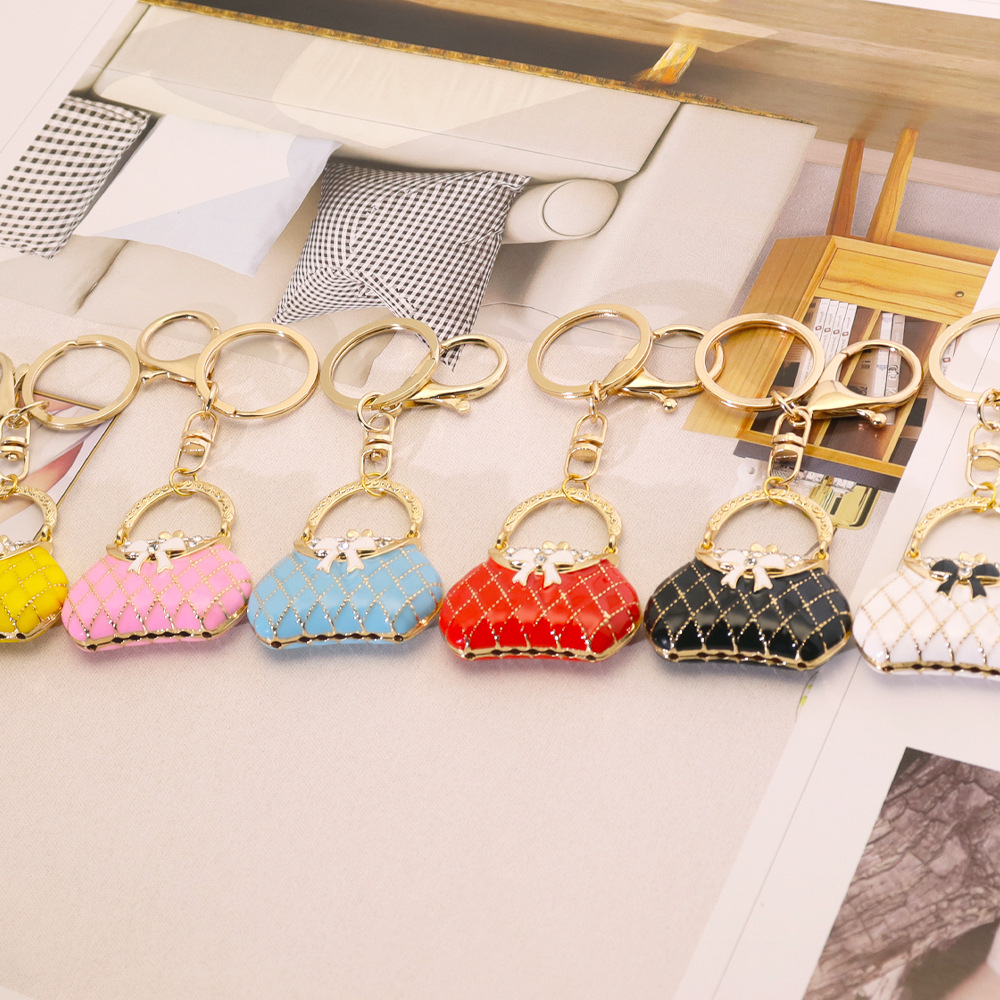 Chiave catena, lega in zinco, Borsetta, placcato color oro, gioielli di moda & smalto & con strass, nessuno, Venduto da PC