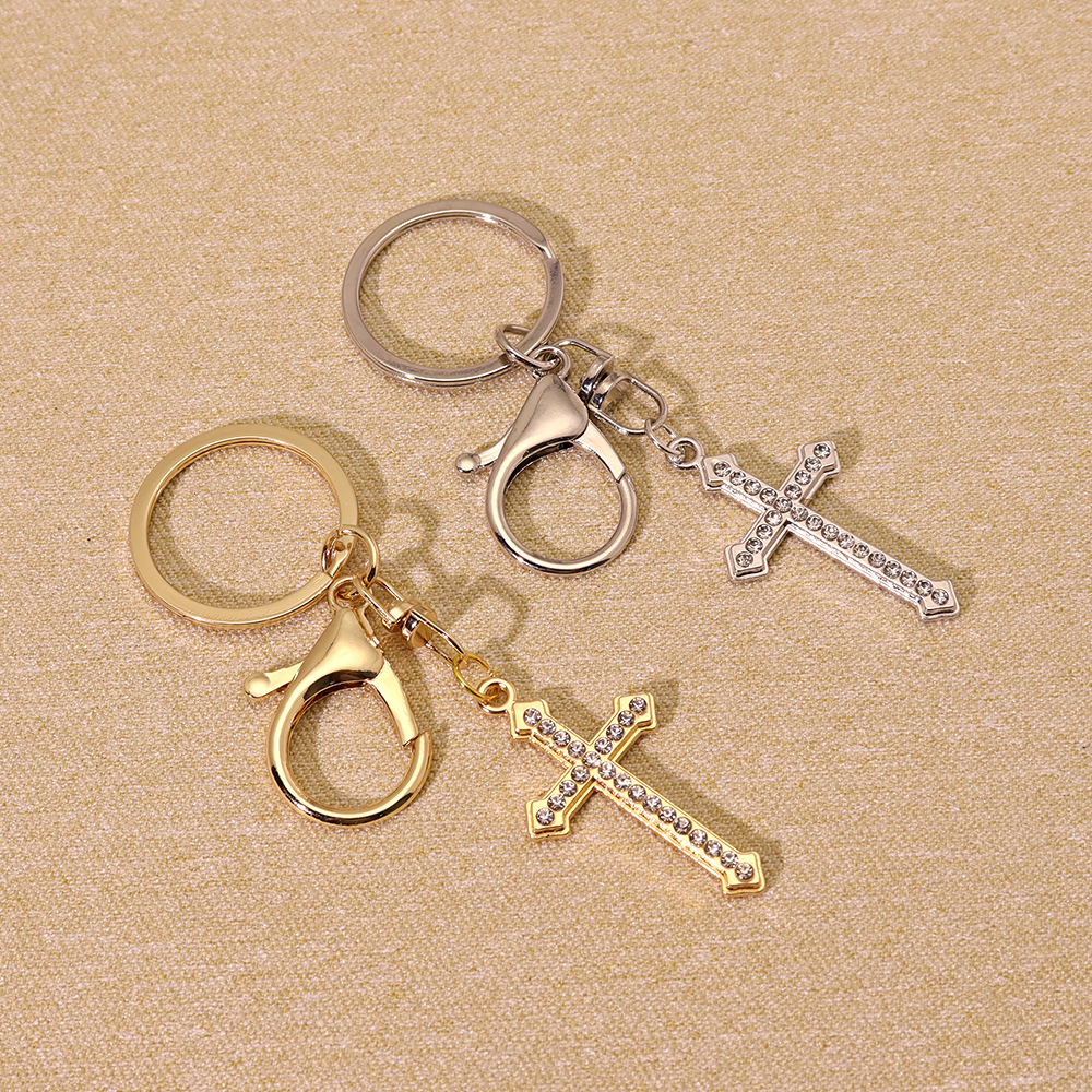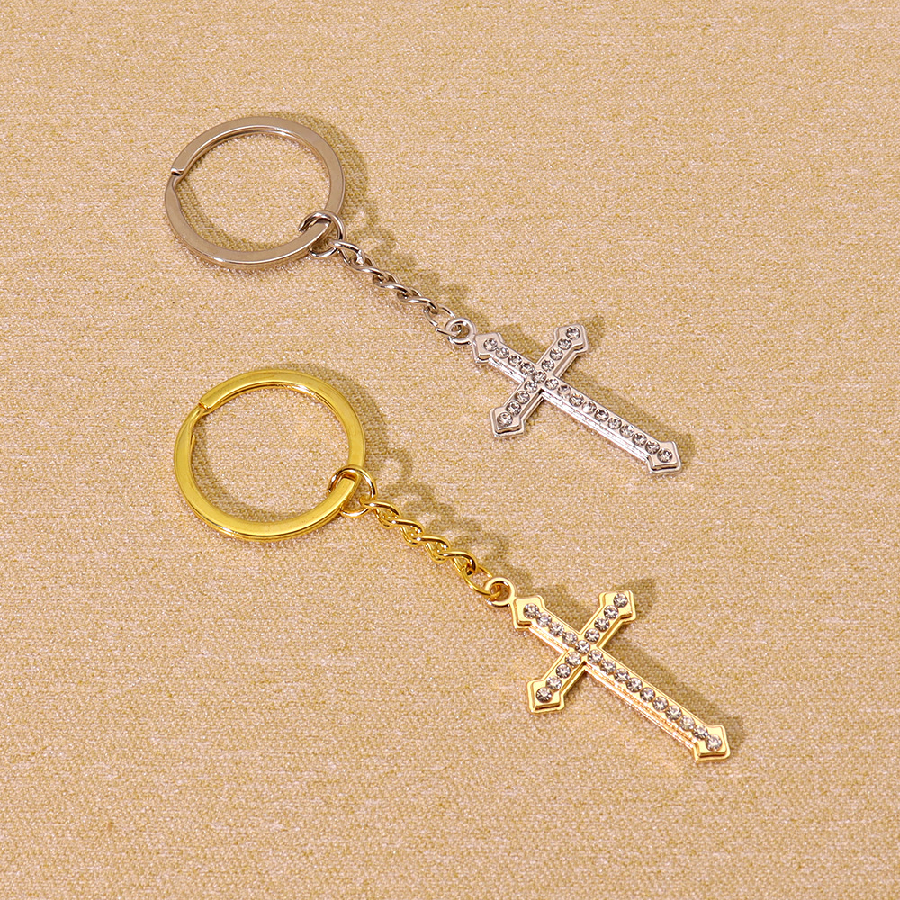 Chiave catena, lega in zinco, Croce, placcato color oro, gioielli di moda & con strass, nessuno, Venduto da PC