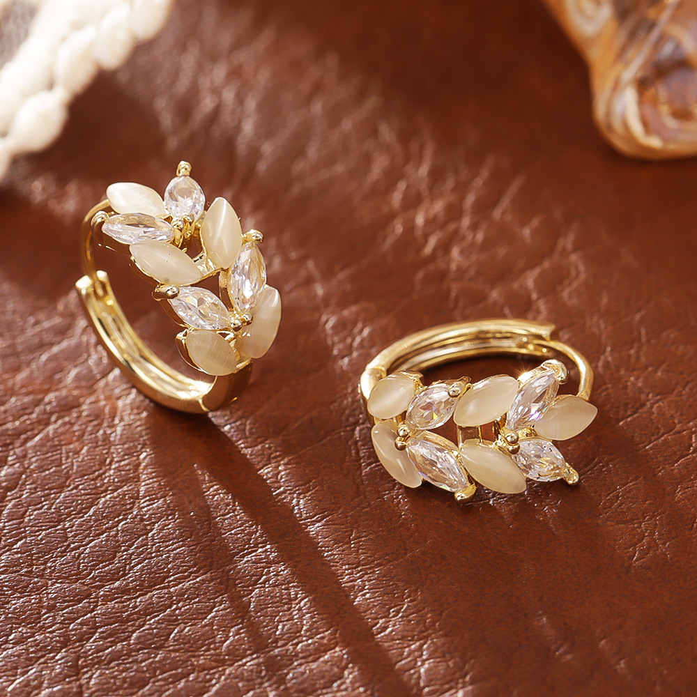 Cilindrata Zircone Orecchini in ottone micro pavimenta, with cubico zircone & occhi di gatto, granograno, placcato oro vero, gioielli di moda & per la donna, Venduto da coppia