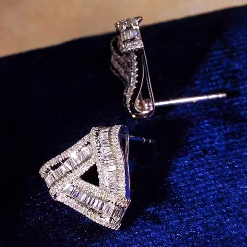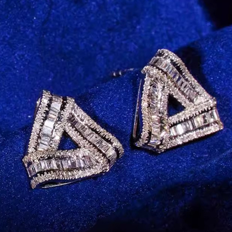 Cilindrata Zircone Orecchini in ottone micro pavimenta, Triangolo, placcato, Micro spianare cubic zirconia & per la donna & cavo, Venduto da coppia