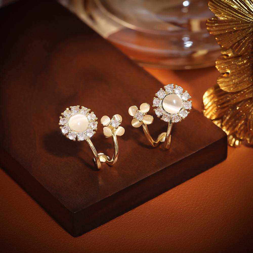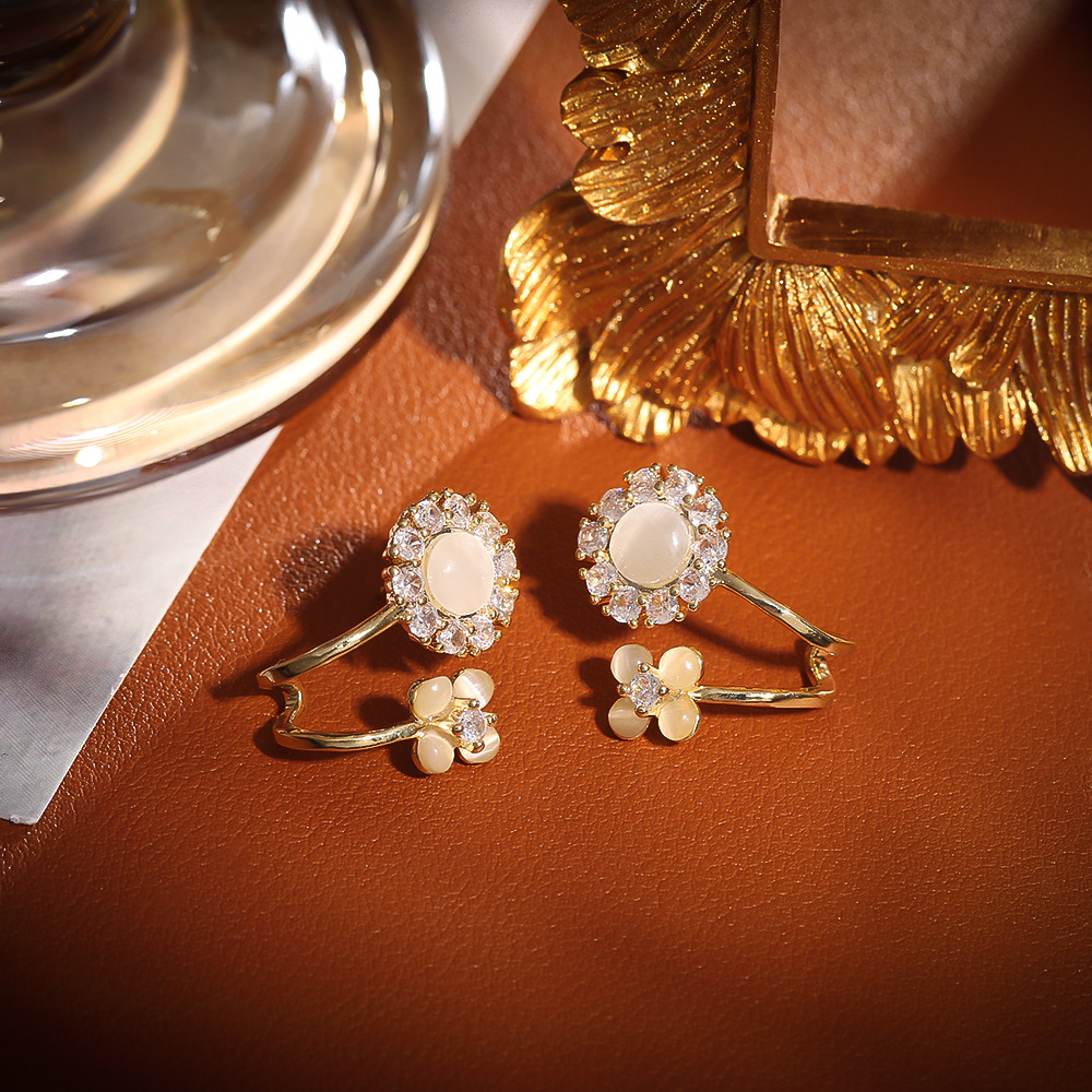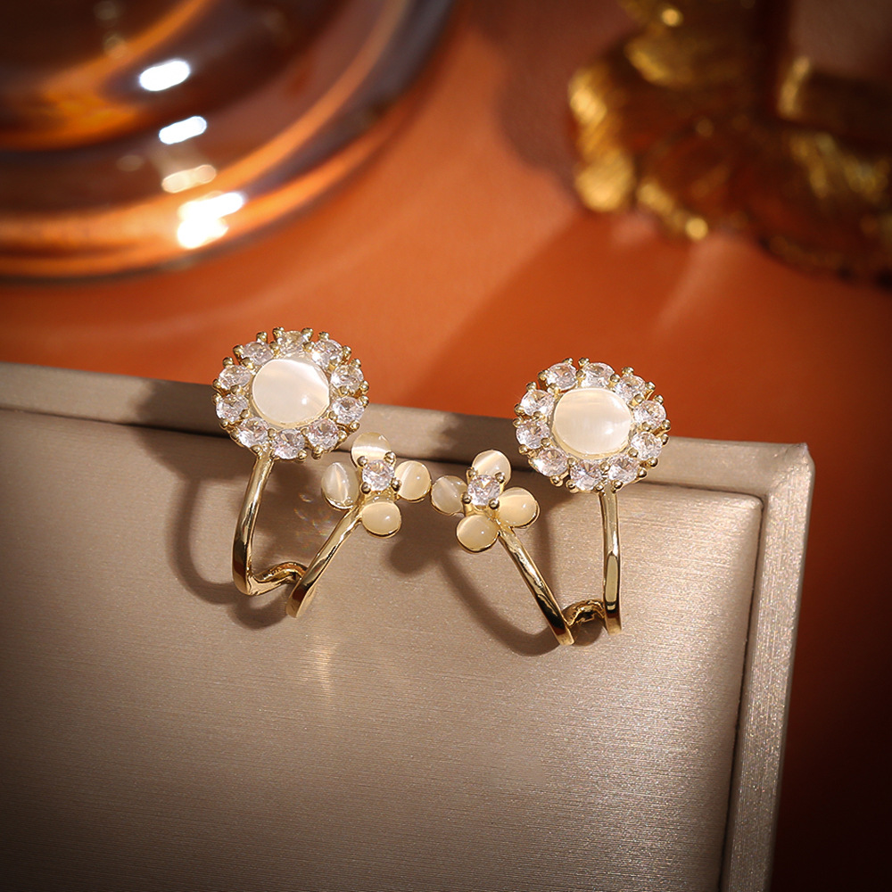 Cilindrata Zircone Orecchini in ottone micro pavimenta, with occhi di gatto, Fiore, placcato oro vero, gioielli di moda & Micro spianare cubic zirconia & per la donna, Venduto da coppia