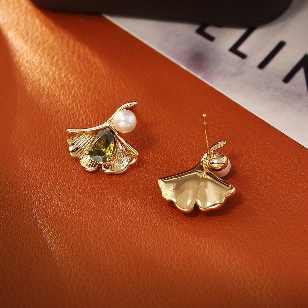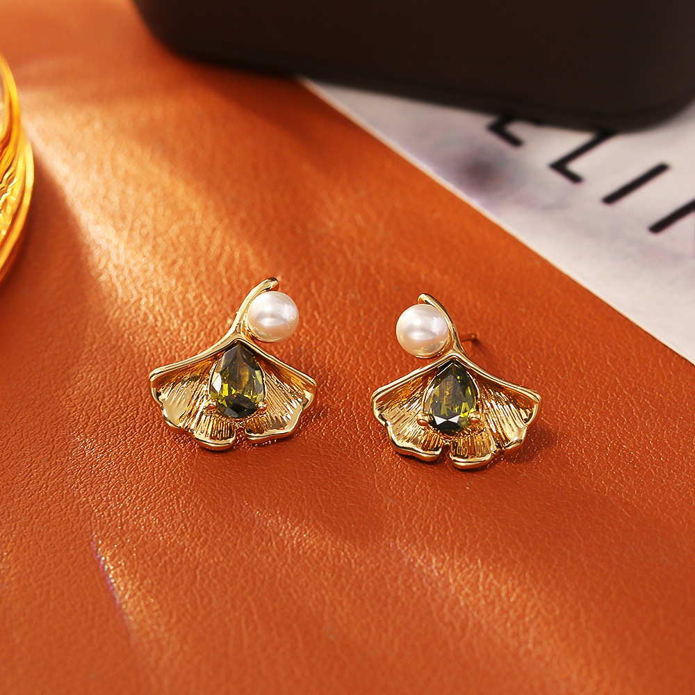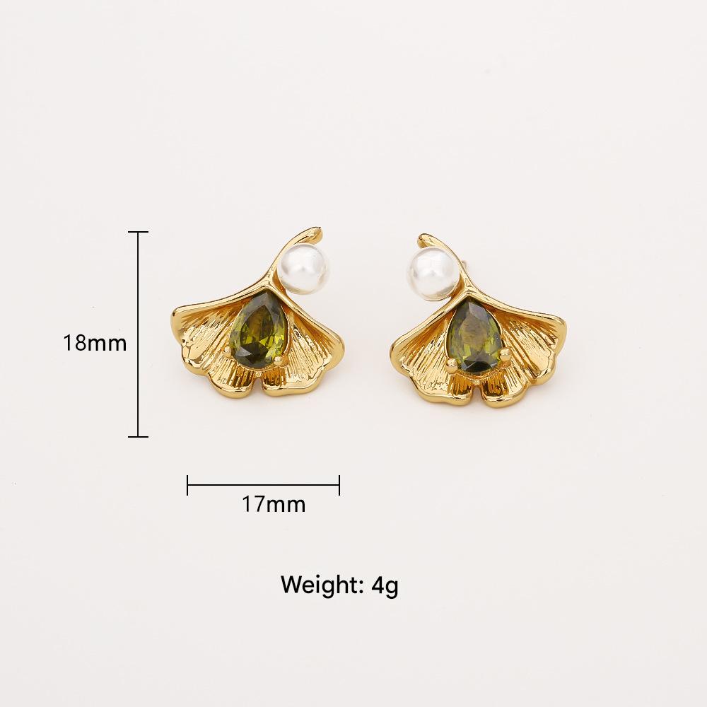 Cilindrata Zircone Orecchini in ottone micro pavimenta, with cubico zircone & perla in plastica, Foglia di Ginkgo, placcato oro vero, gioielli di moda & per la donna, Venduto da coppia