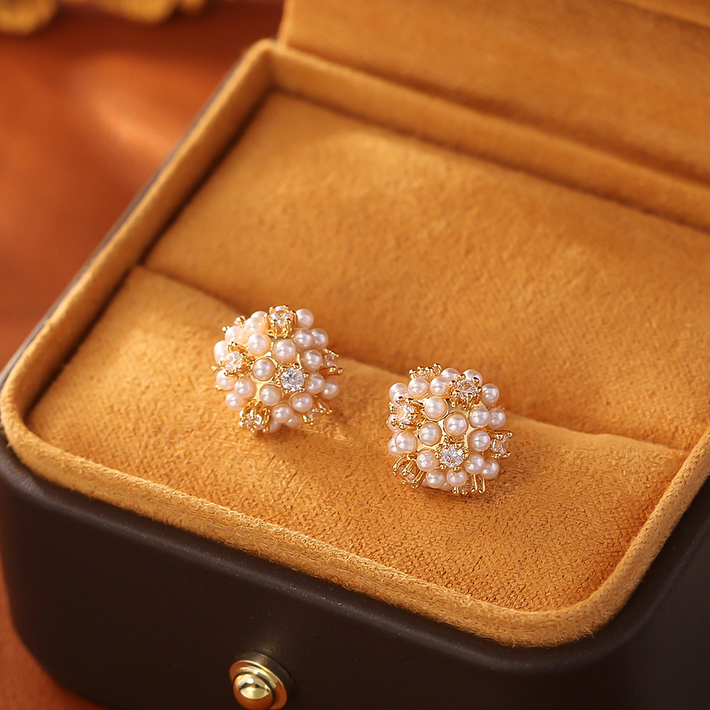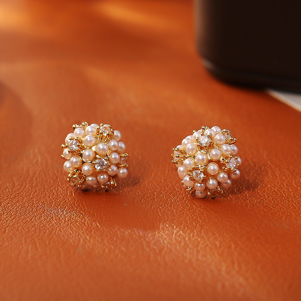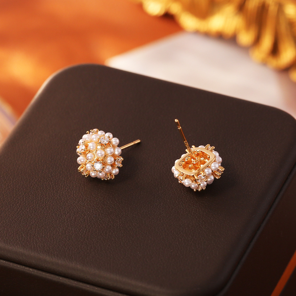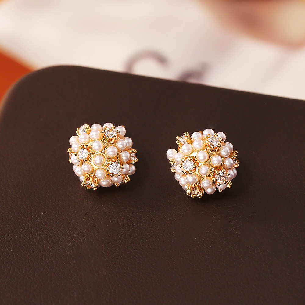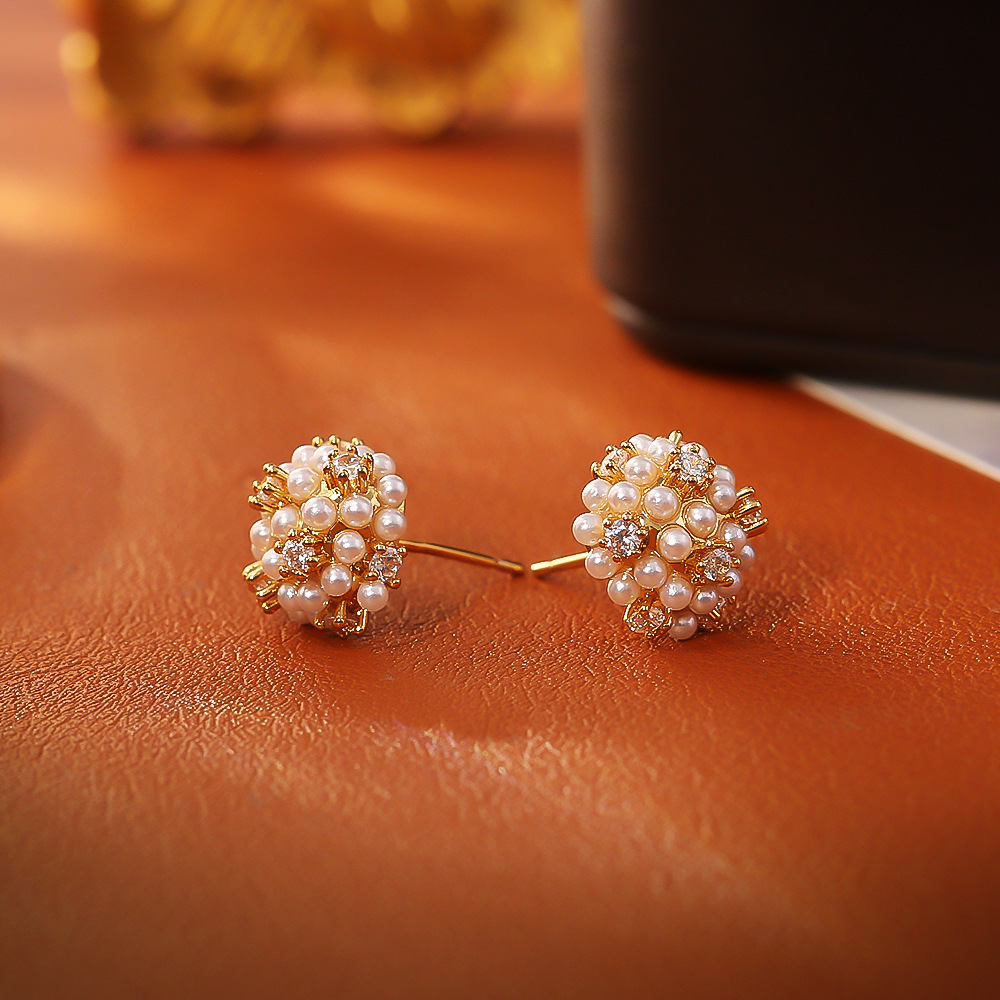 Cilindrata Zircone Orecchini in ottone micro pavimenta, with perla in plastica, Ortensie, placcato oro vero, gioielli di moda & Micro spianare cubic zirconia & per la donna, Venduto da coppia