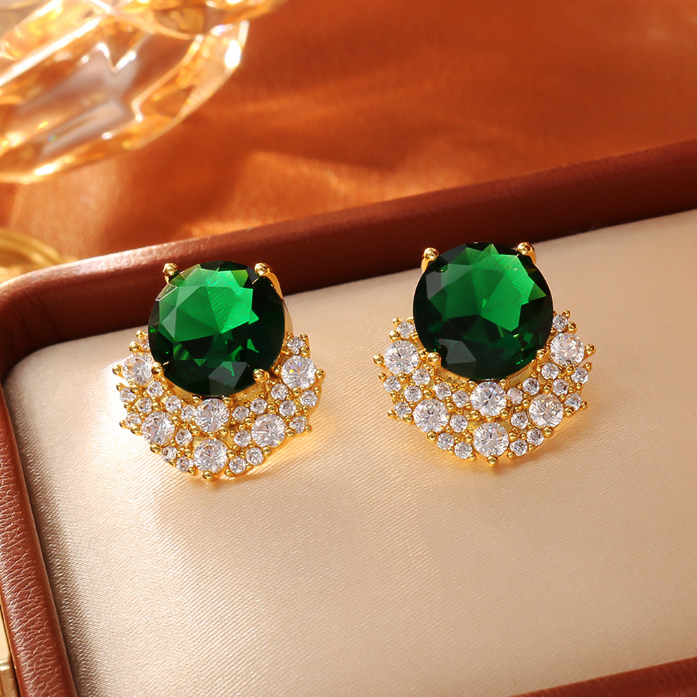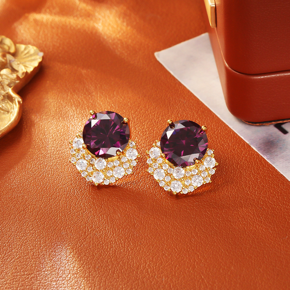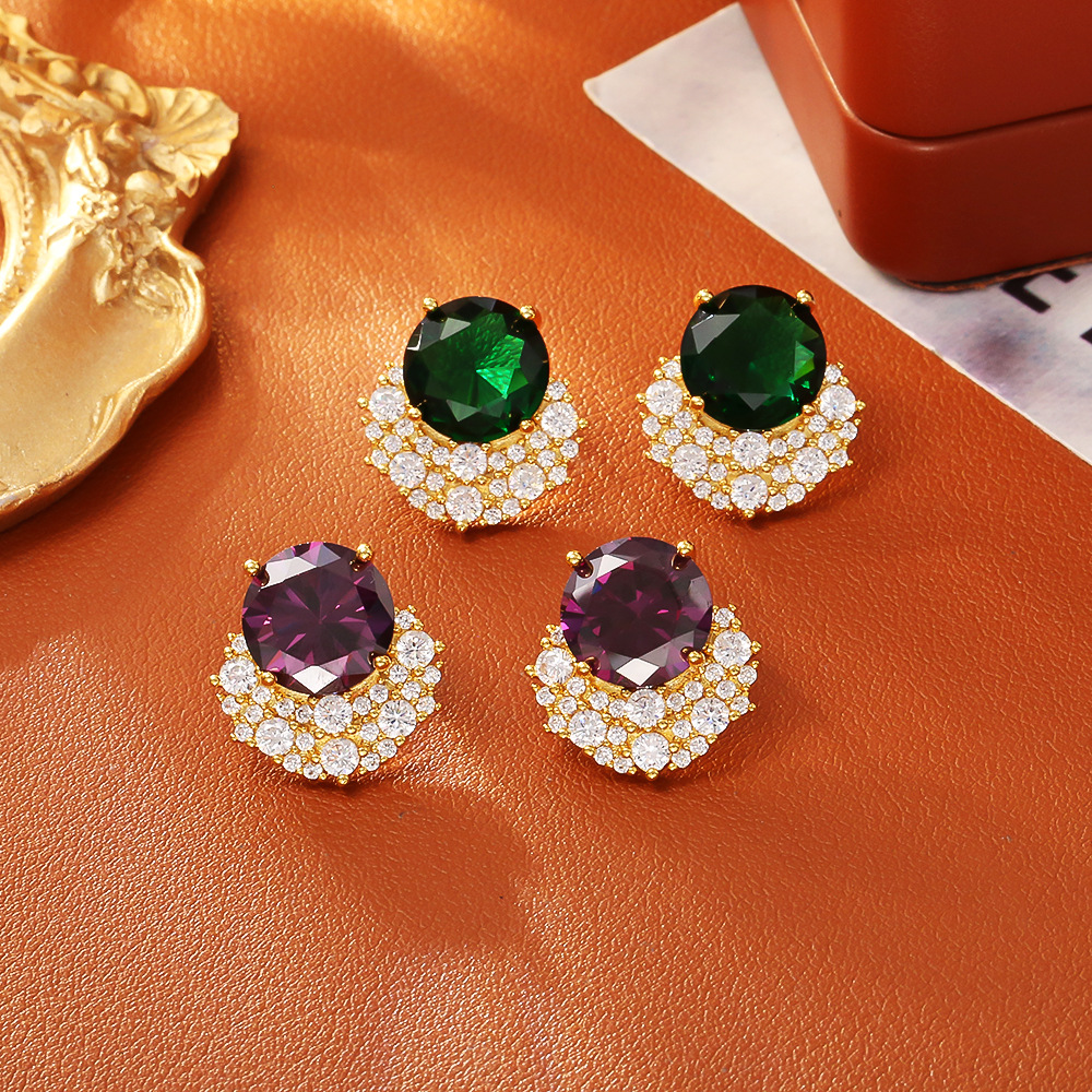 Cilindrata Zircone Orecchini in ottone micro pavimenta, placcato, tre pezzi & per la donna, dorato, Venduto da set