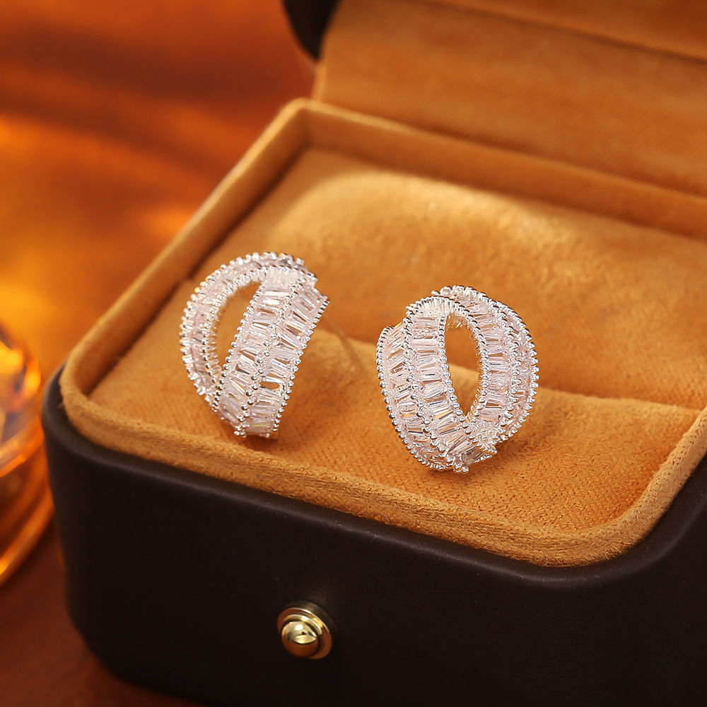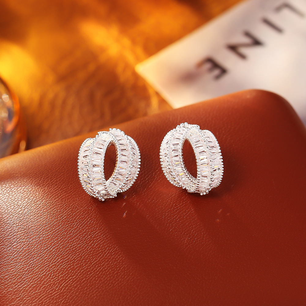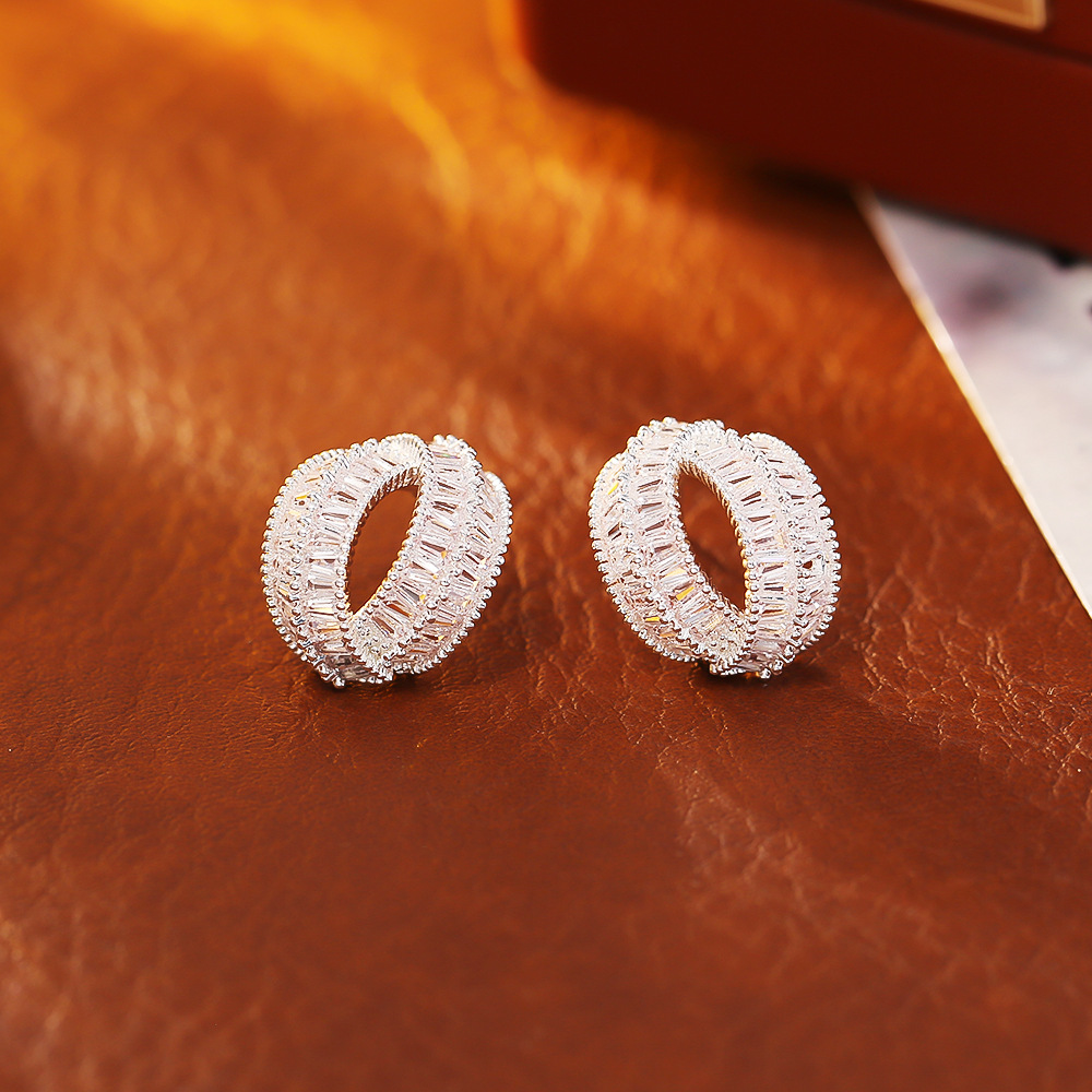 Cilindrata Zircone Orecchini in ottone micro pavimenta, placcato, gioielli di moda & Micro spianare cubic zirconia & per la donna & cavo, argento, Venduto da coppia