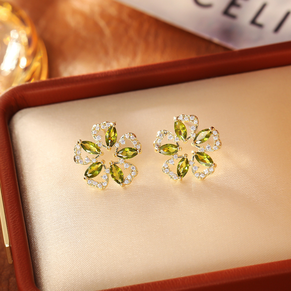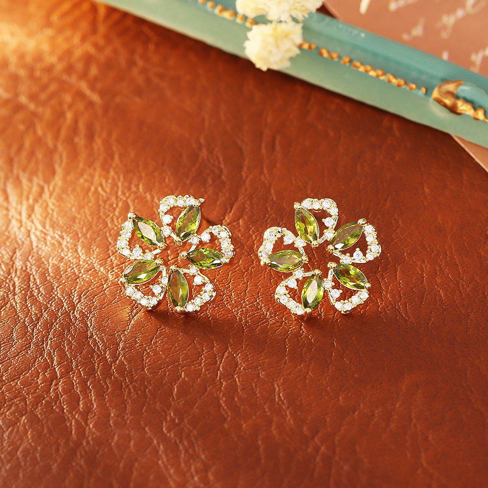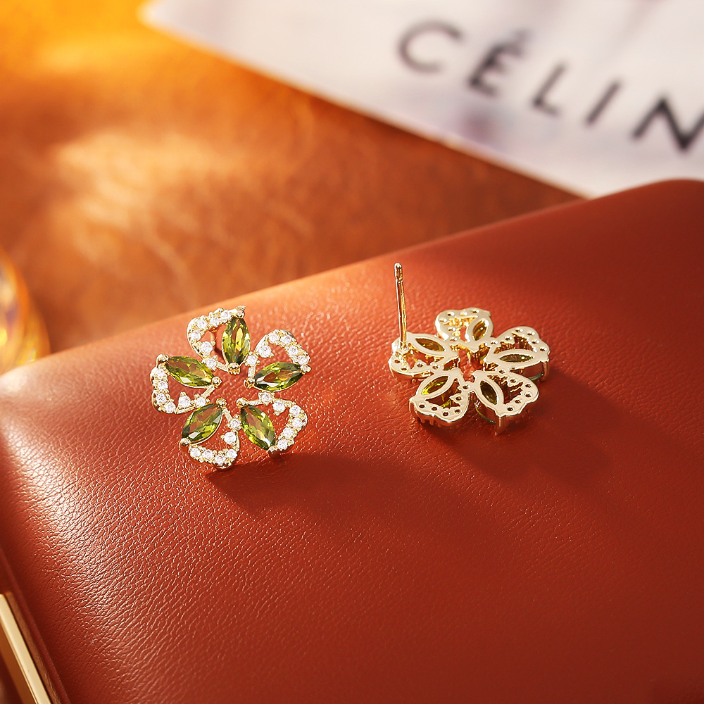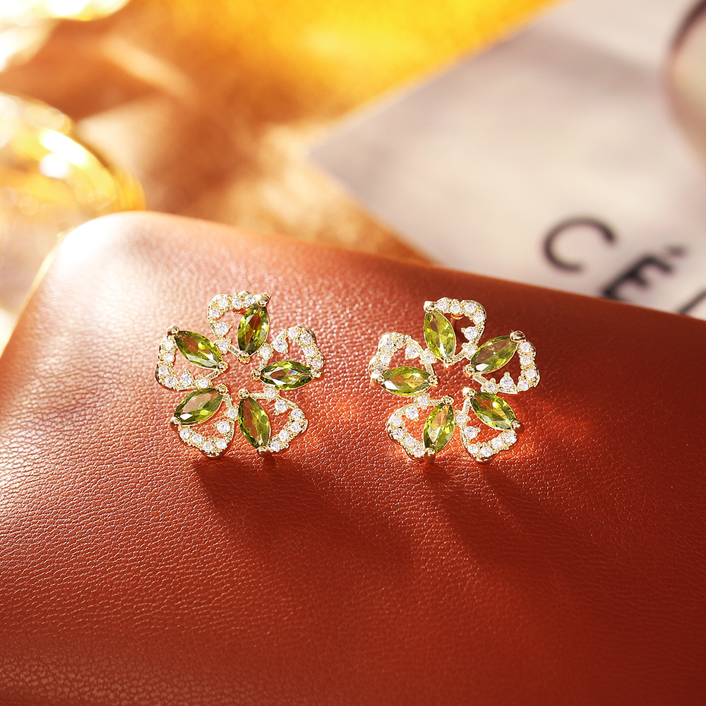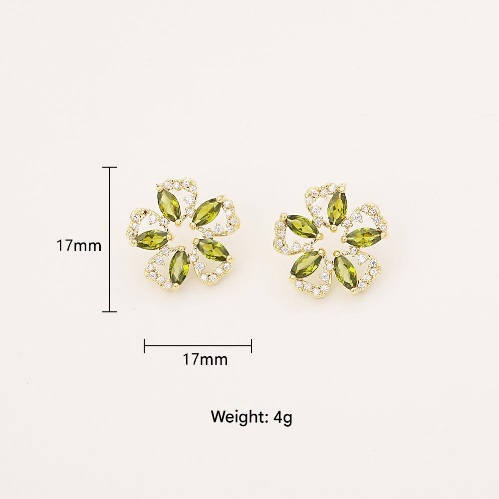 Cilindrata Zircone Orecchini in ottone micro pavimenta, Fiore, placcato oro vero, Micro spianare cubic zirconia & per la donna & cavo, Venduto da coppia