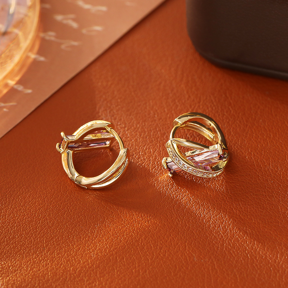Cilindrata Zircone Orecchini in ottone micro pavimenta, placcato, tre pezzi & per la donna, dorato, Venduto da set