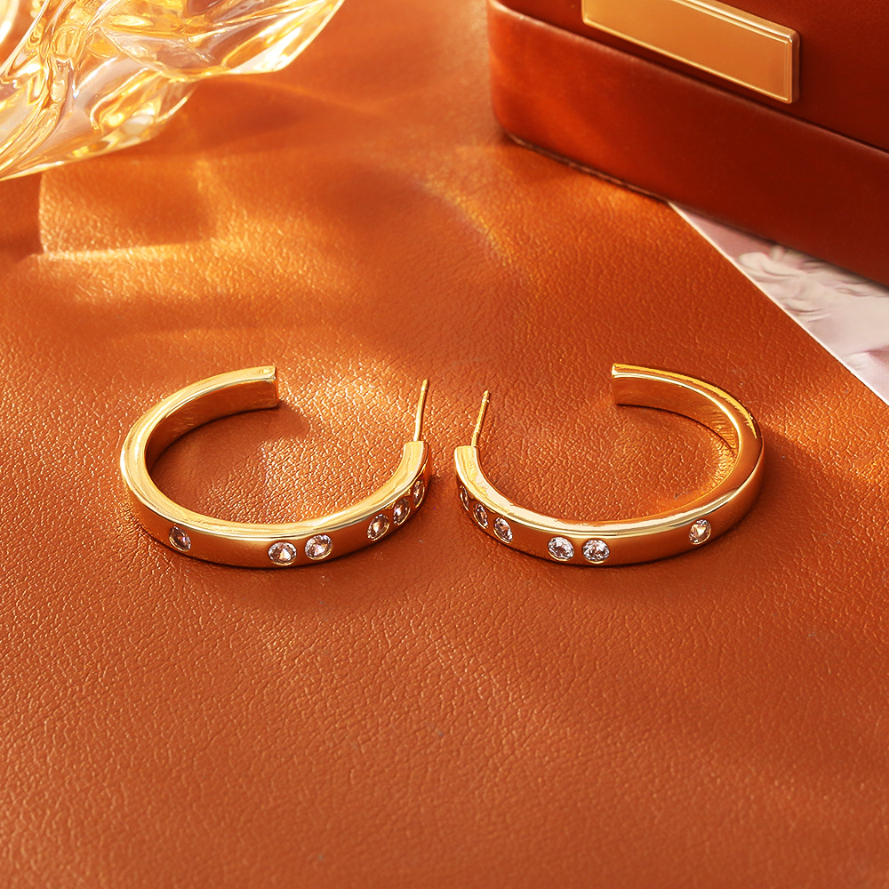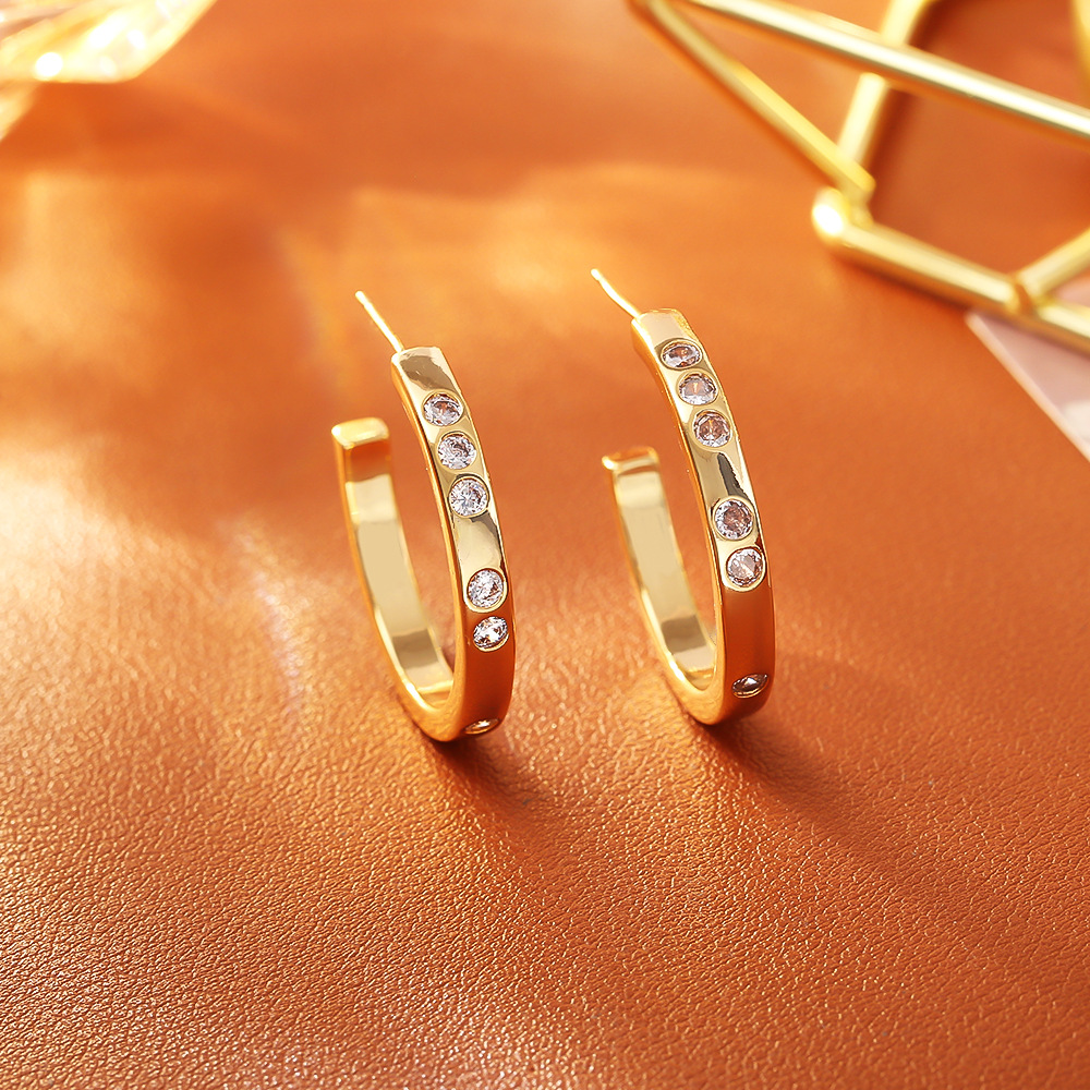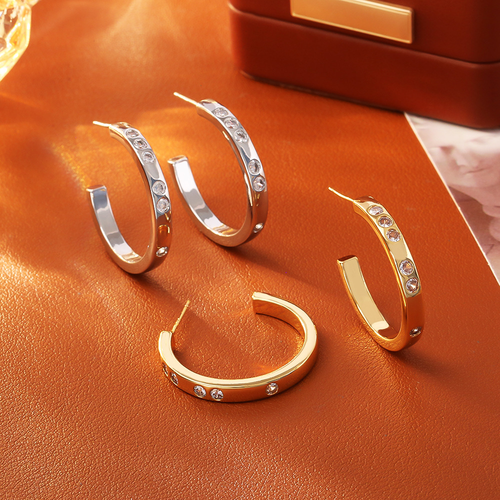 Cilindrata Zircone Orecchini in ottone micro pavimenta, placcato, tre pezzi & per la donna, dorato, Venduto da set