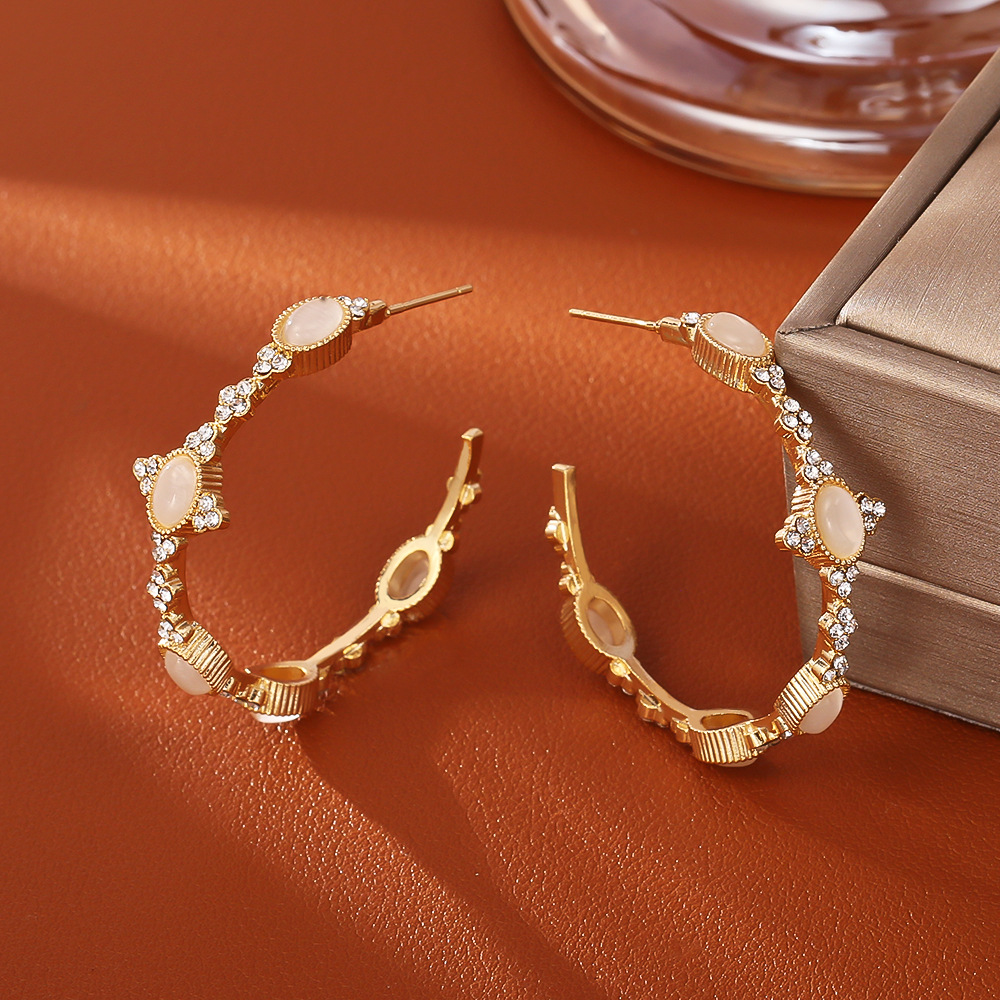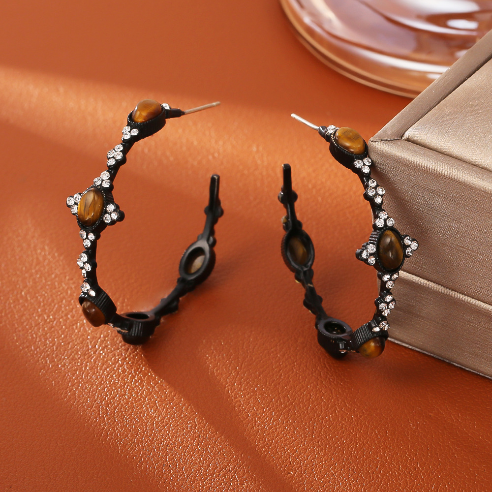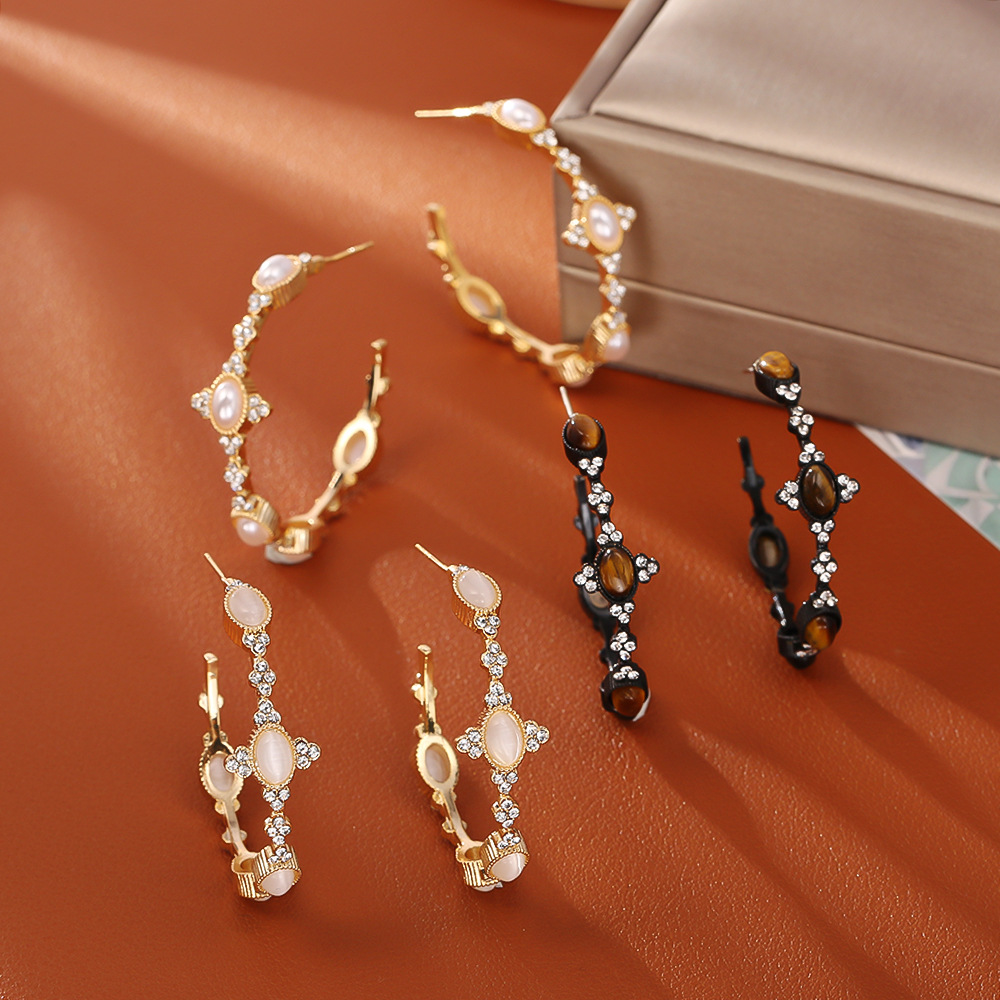 1:Cat's eye stone large ear rings2:Tiger's eye stone large ear ring3:Pearl large ear rings