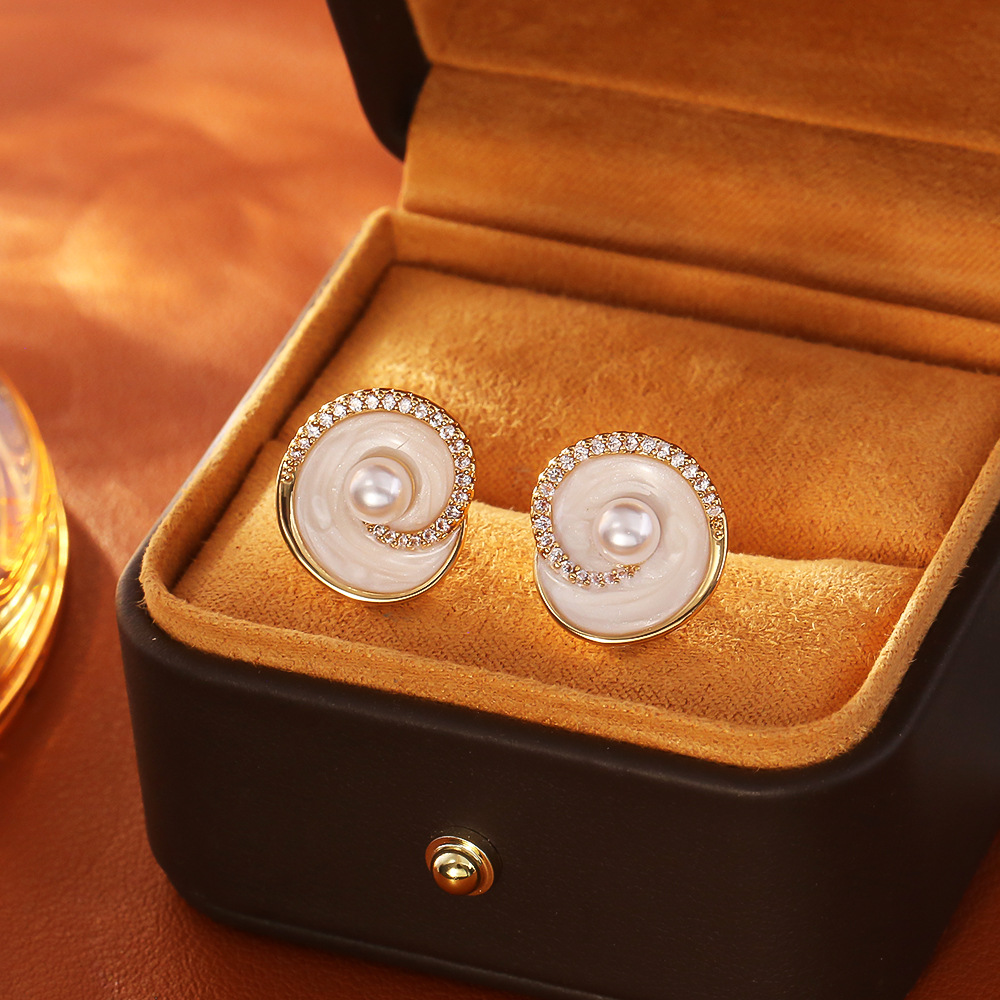 Cilindrata Zircone Orecchini in ottone micro pavimenta, with perla in plastica, Lumaca di mare, placcato, gioielli di moda & Micro spianare cubic zirconia & per la donna & smalto, nessuno, Venduto da coppia