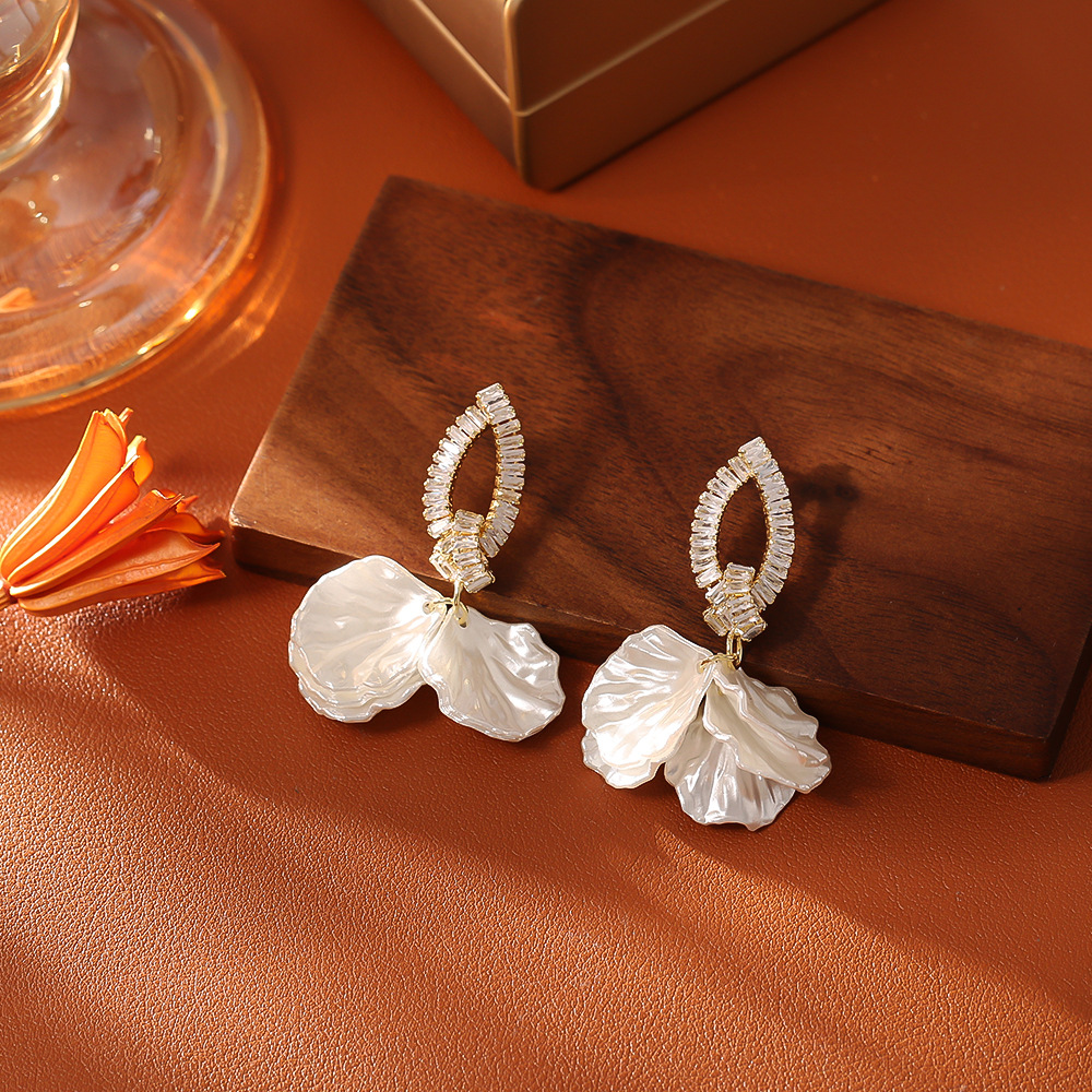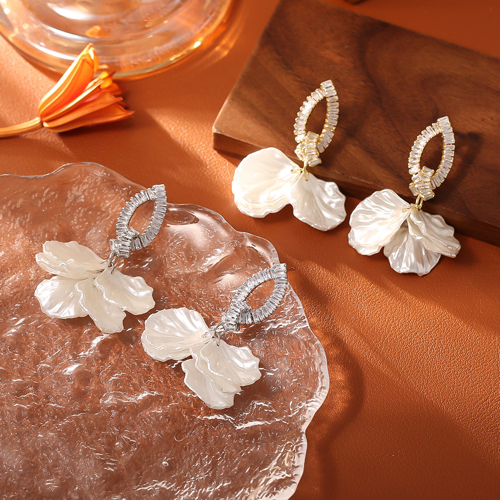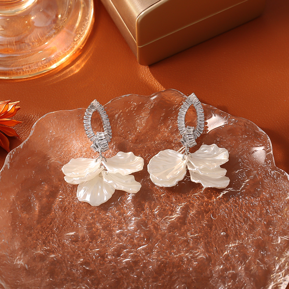 Cilindrata Zircone Orecchini in ottone micro pavimenta, with conchiglia, placcato, gioielli di moda & Micro spianare cubic zirconia & per la donna, nessuno, Venduto da coppia