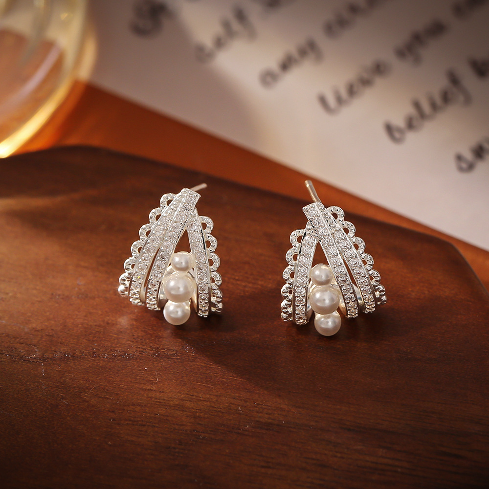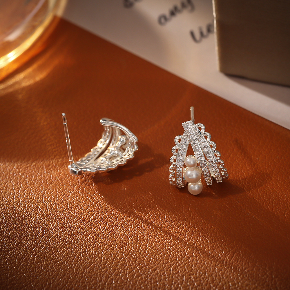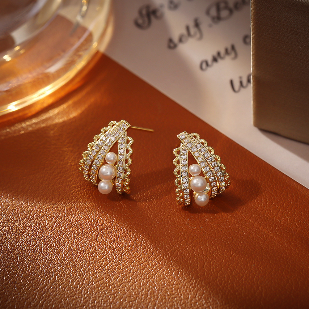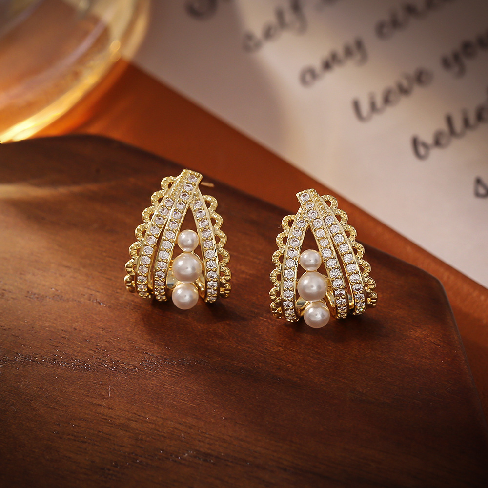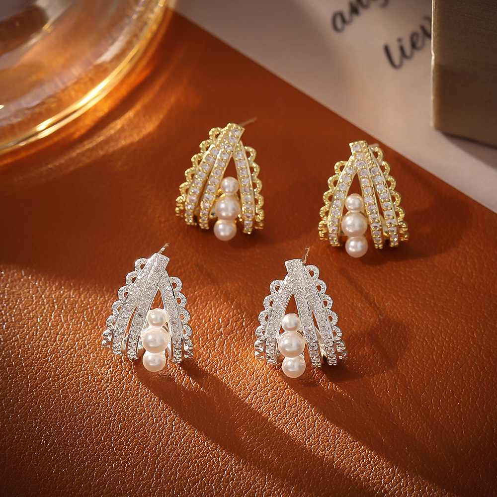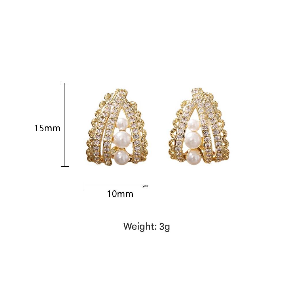 Cilindrata Zircone Orecchini in ottone micro pavimenta, with perla in plastica, placcato, Micro spianare cubic zirconia & per la donna & cavo, nessuno, Venduto da coppia