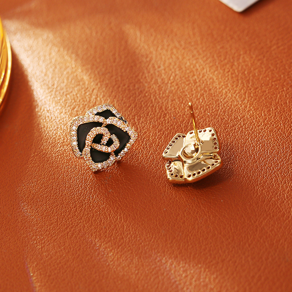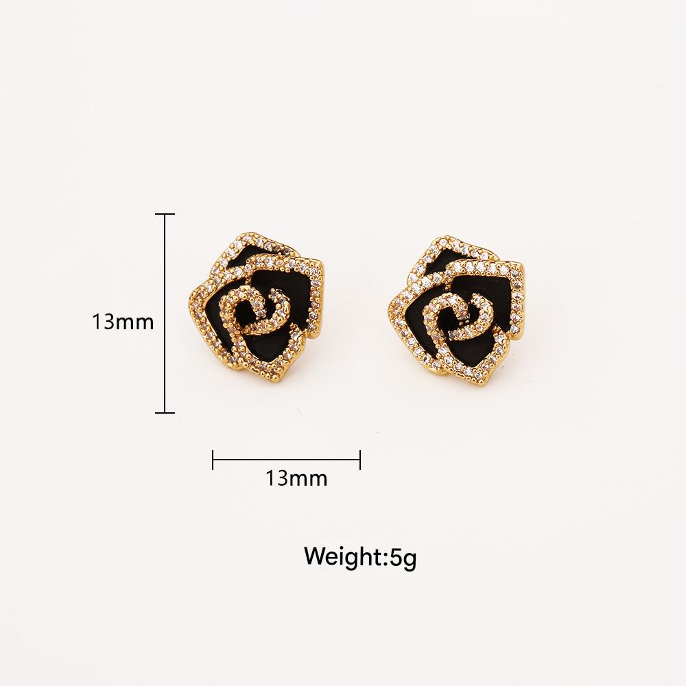 Cilindrata Zircone Orecchini in ottone micro pavimenta, Fiore, placcato oro vero, Micro spianare cubic zirconia & per la donna & smalto, Venduto da coppia