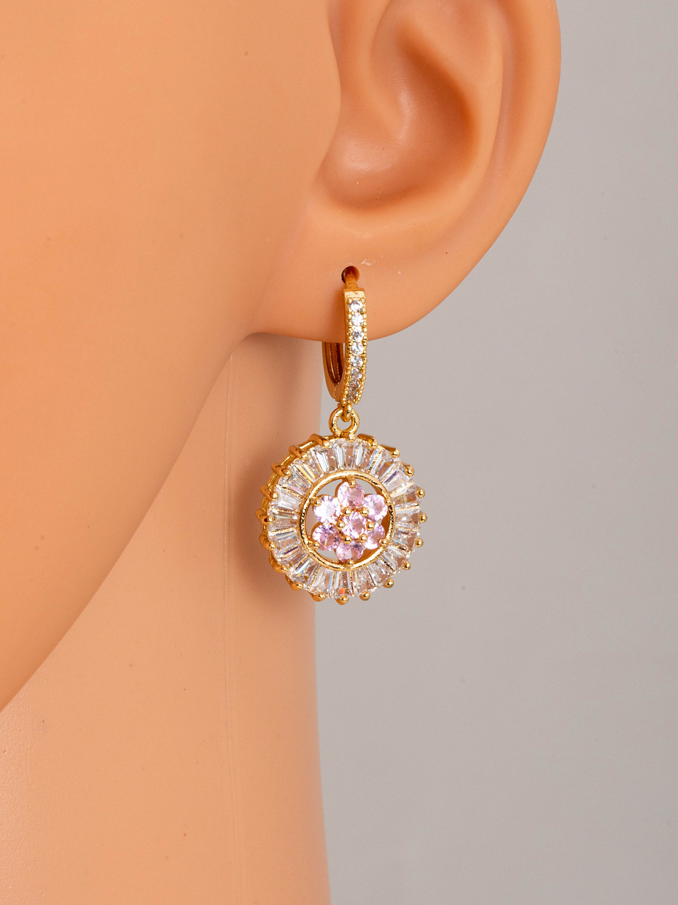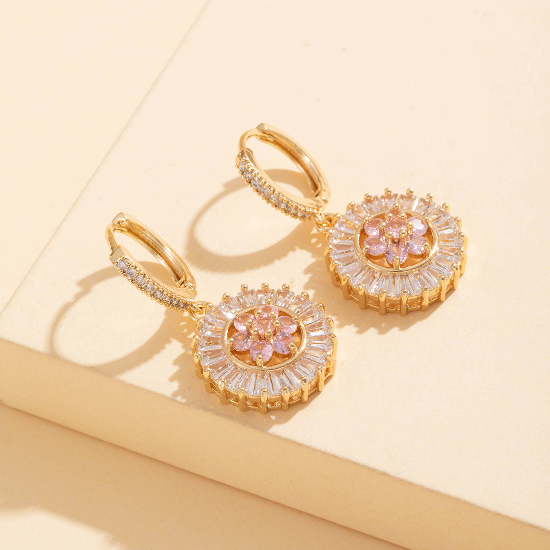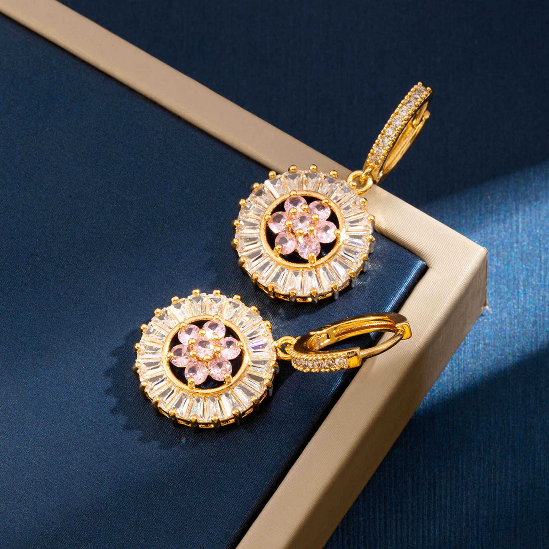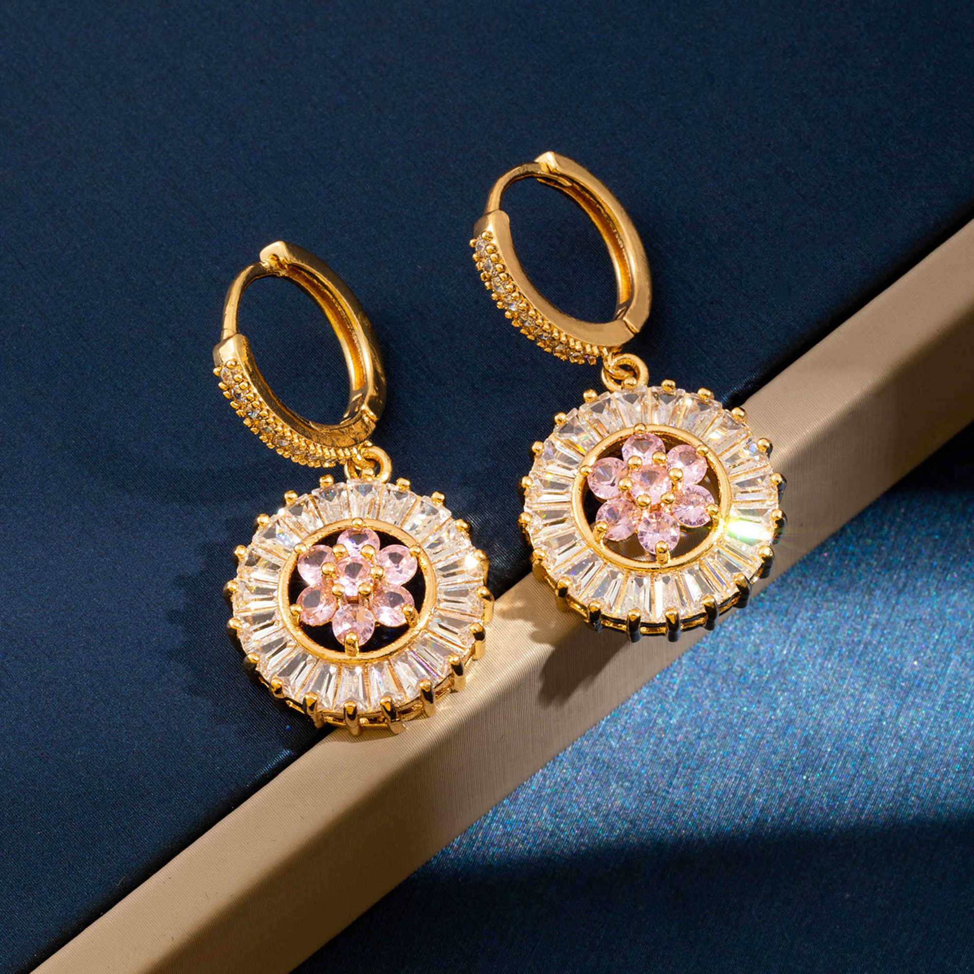 Cilindrata Zircone Orecchini in ottone micro pavimenta, Fiore, placcato, gioielli di moda & Micro spianare cubic zirconia, dorato, assenza di nichel,piombo&cadmio, Venduto da coppia