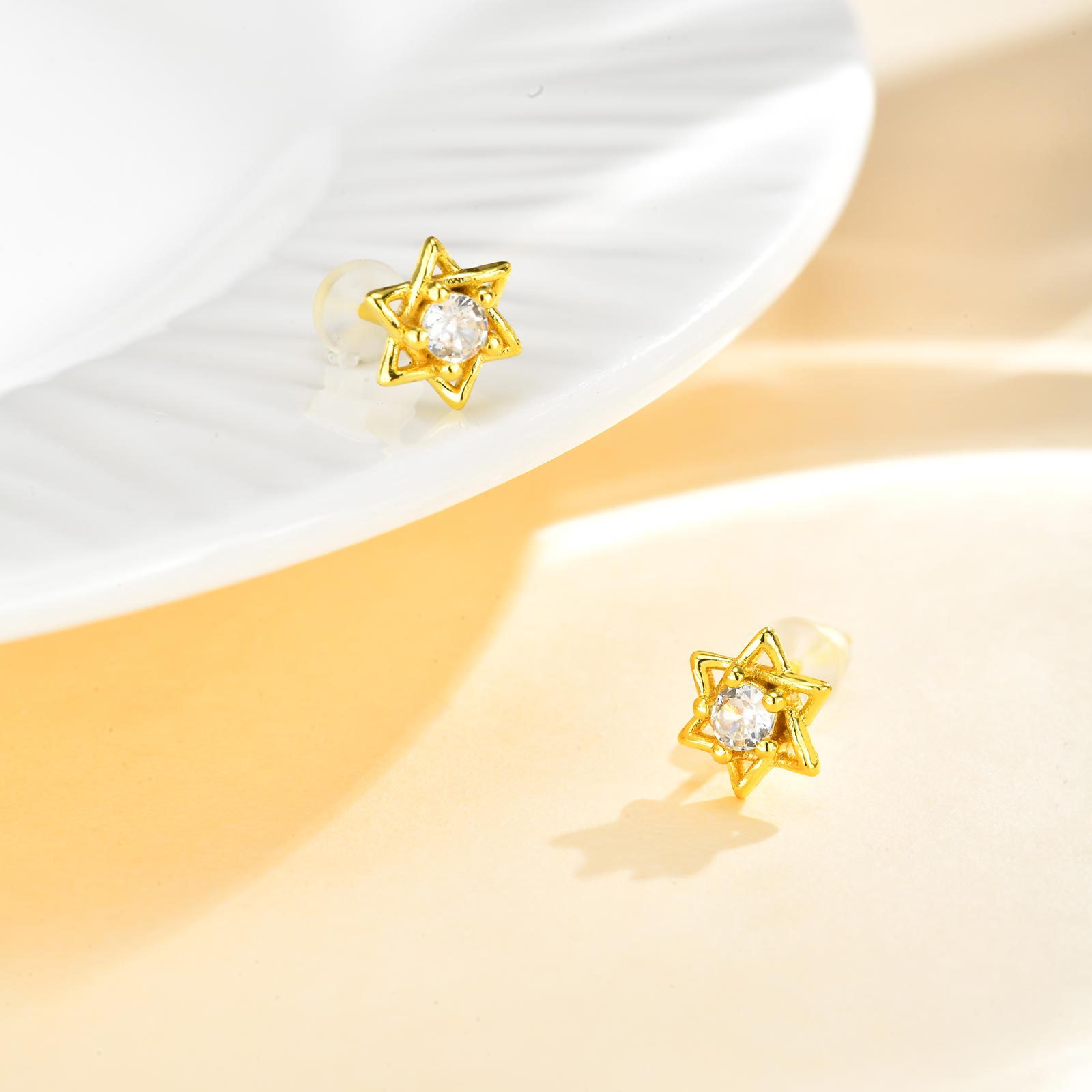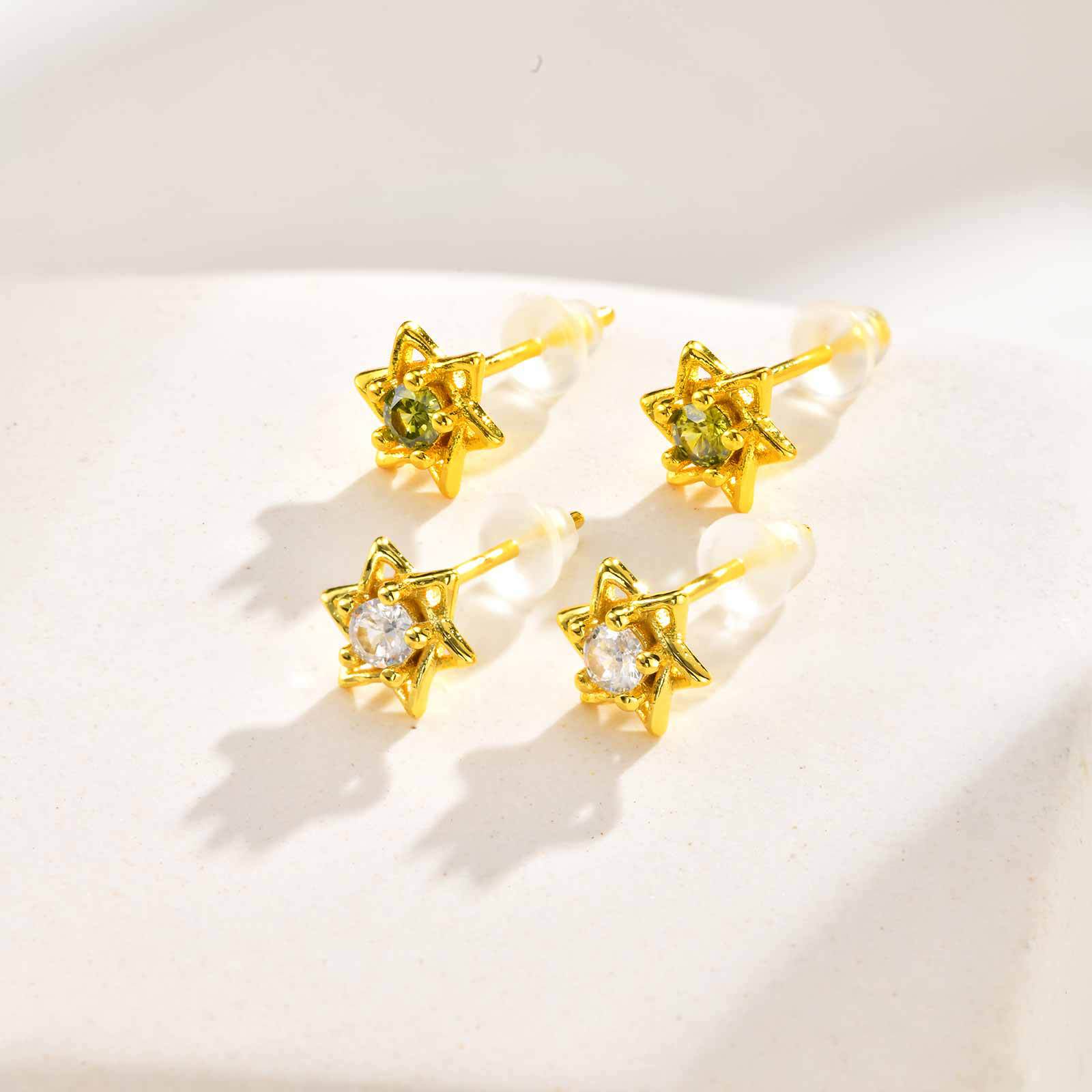 Cilindrata Zircone Orecchini in ottone micro pavimenta, placcato, tre pezzi & per la donna, dorato, Venduto da set
