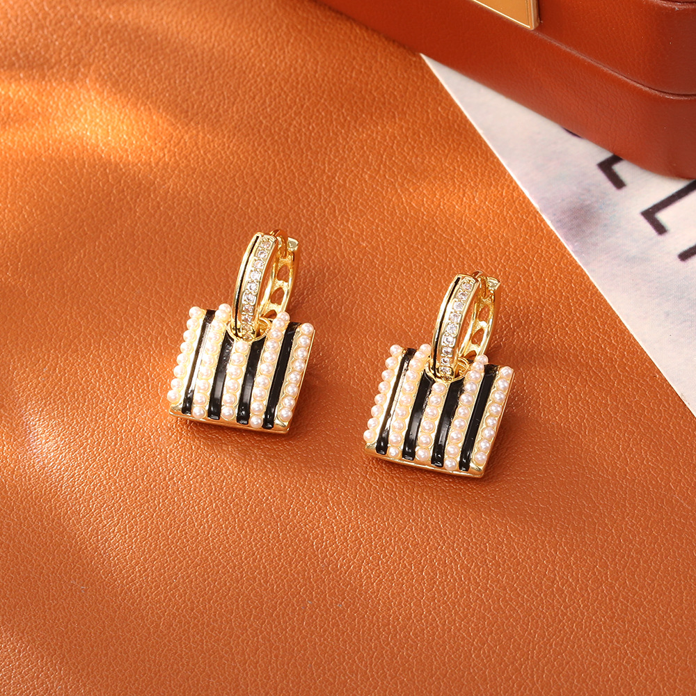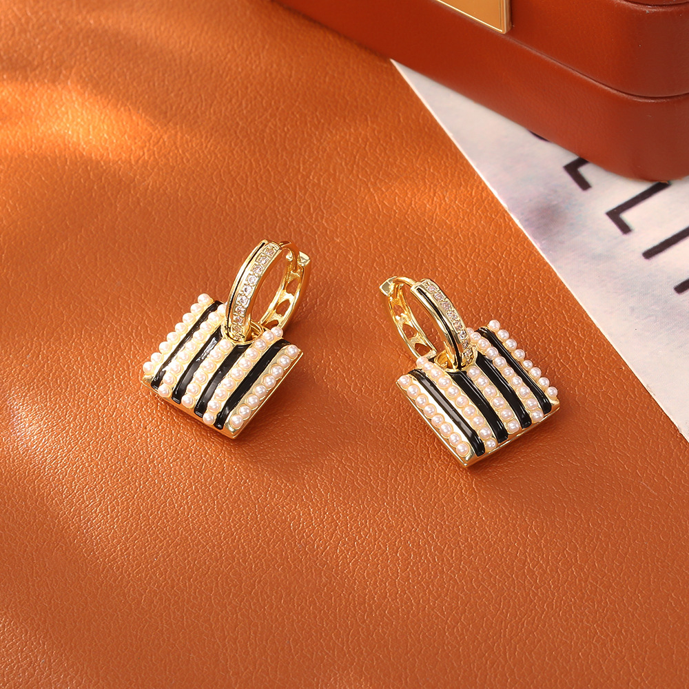 Cilindrata Zircone Orecchini in ottone micro pavimenta, with Seedbead, Borsetta, placcato, Micro spianare cubic zirconia & per la donna & smalto, nessuno, Venduto da coppia