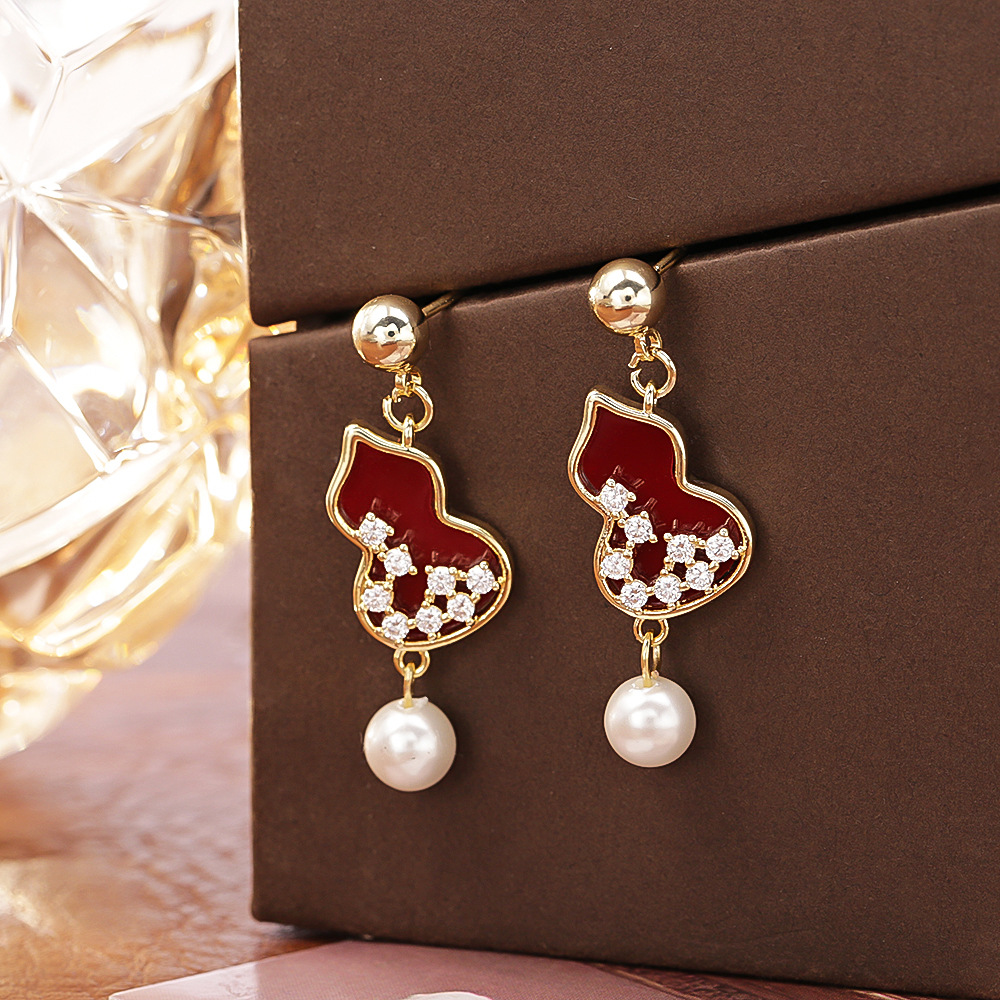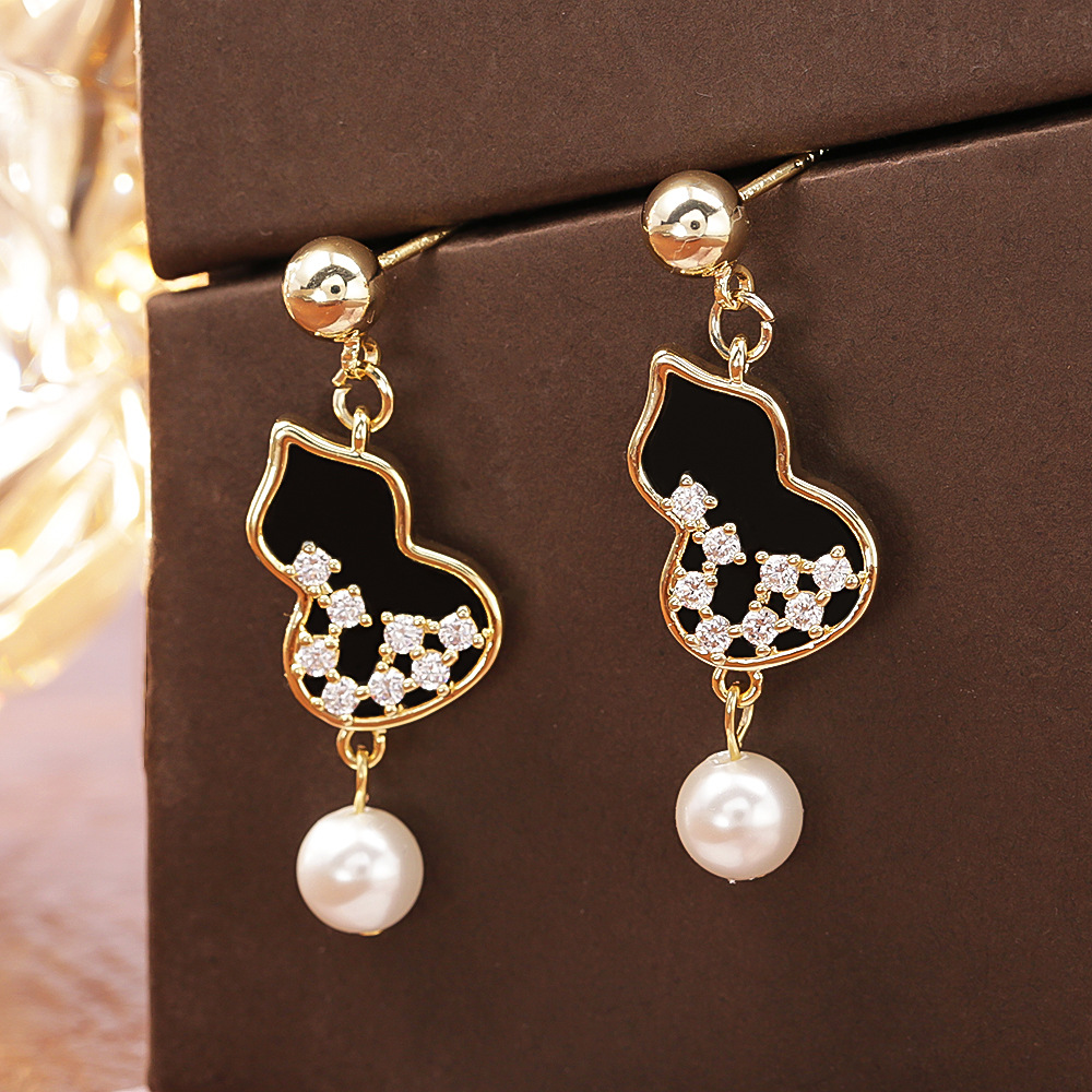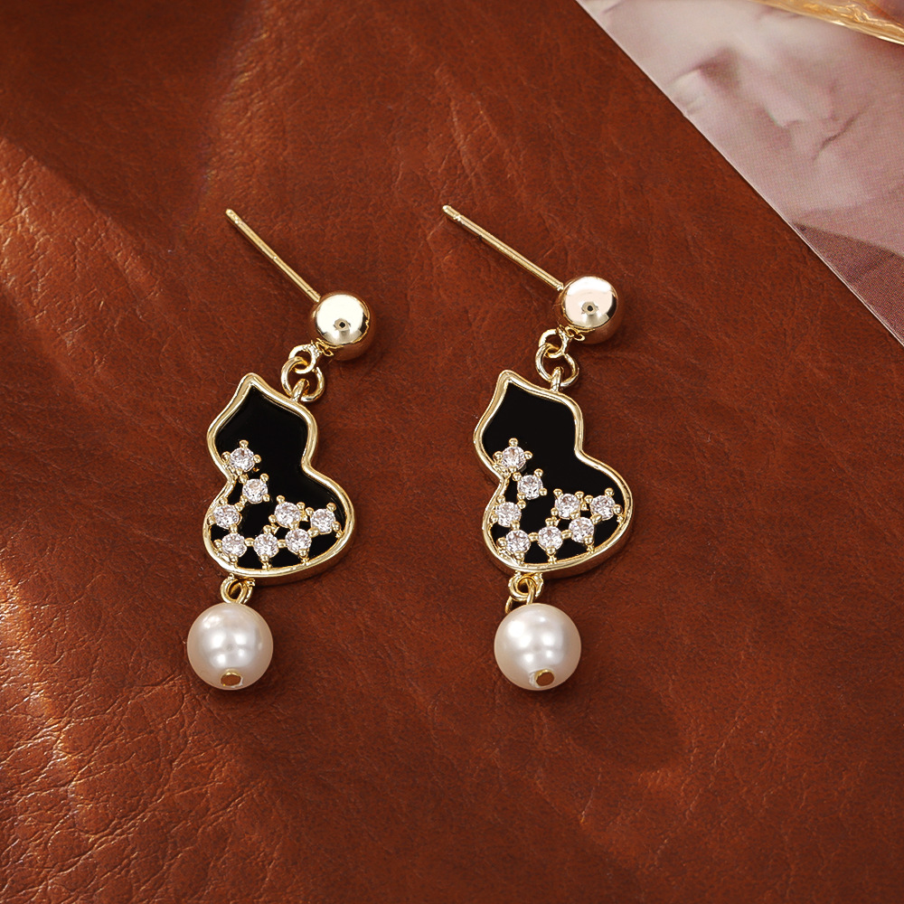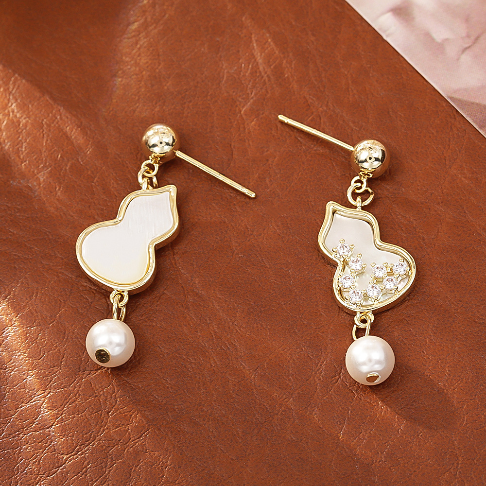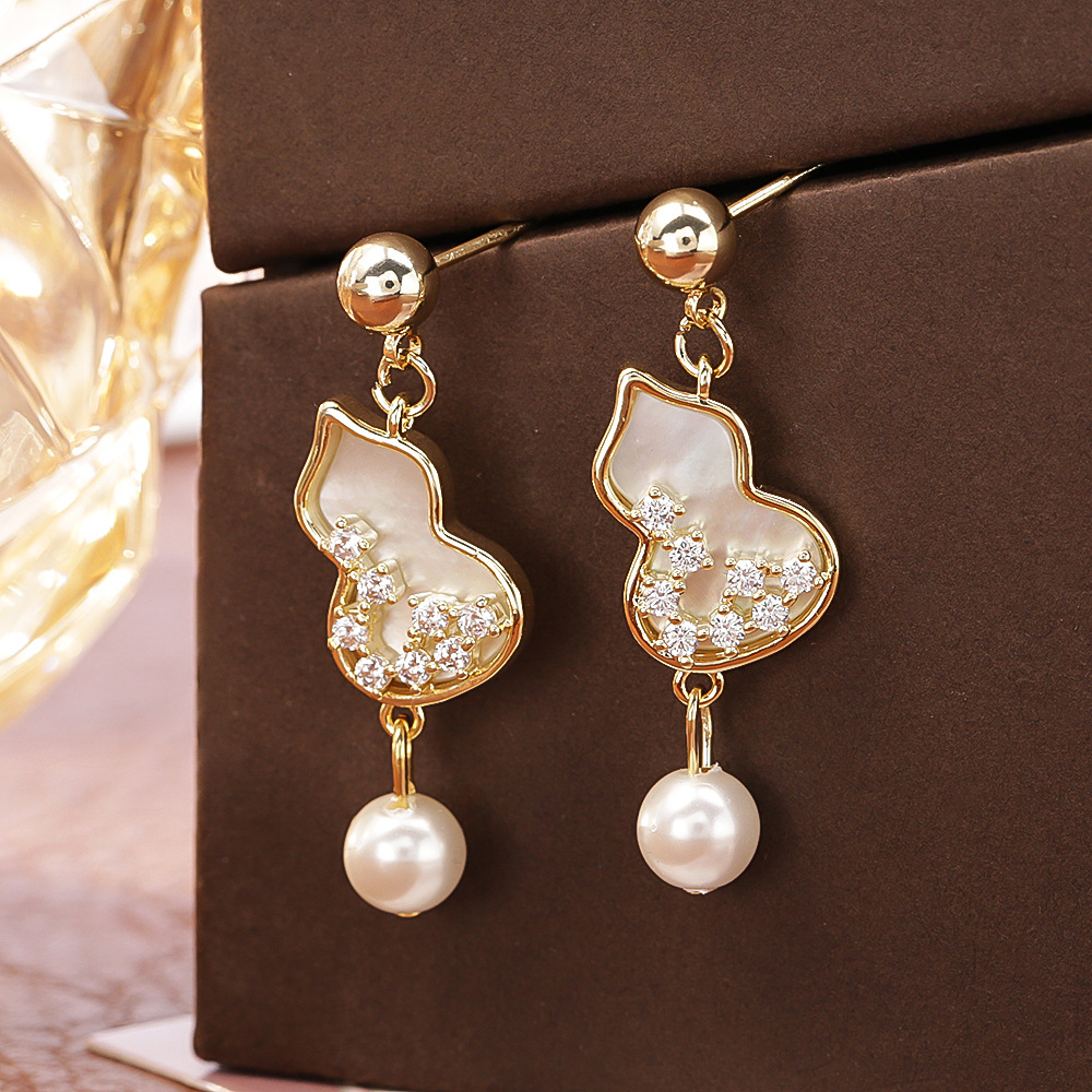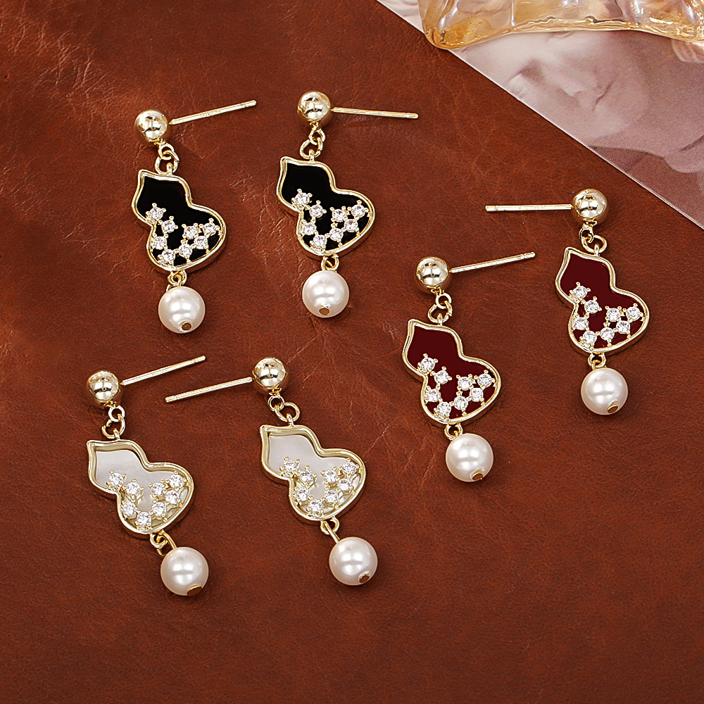 Cilindrata Zircone Orecchini in ottone micro pavimenta, with perla in plastica, Calabassa, placcato oro vero, Micro spianare cubic zirconia & per la donna & smalto, nessuno, Venduto da coppia