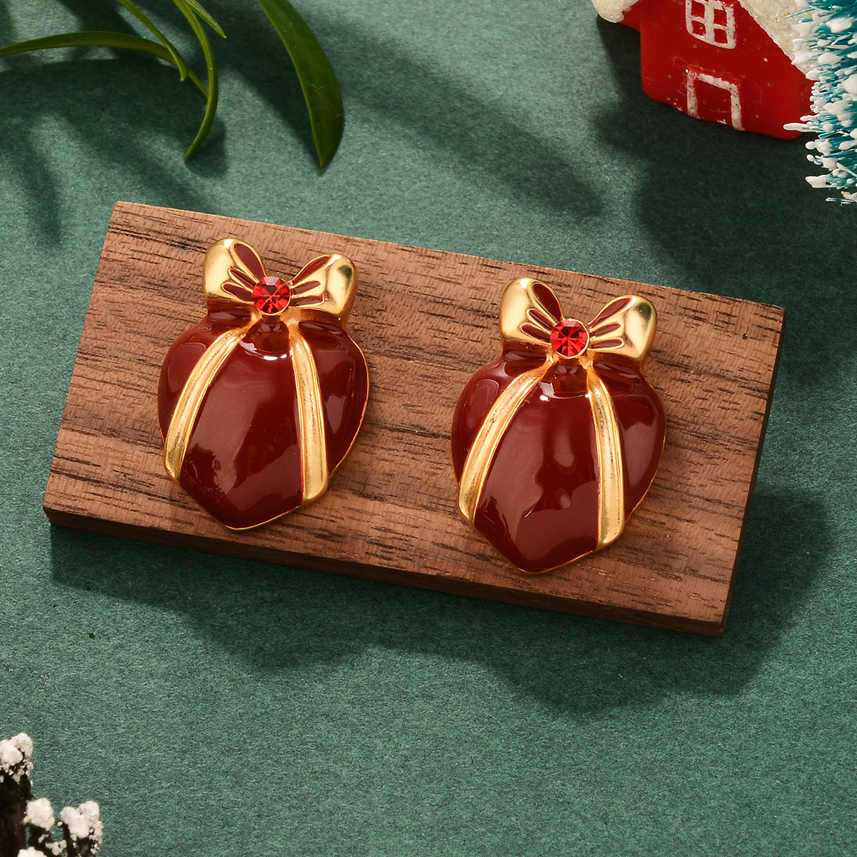 Cilindrata Zircone Orecchini in ottone micro pavimenta, Cuore, placcato, Micro spianare cubic zirconia & per la donna & smalto, dorato, Venduto da coppia
