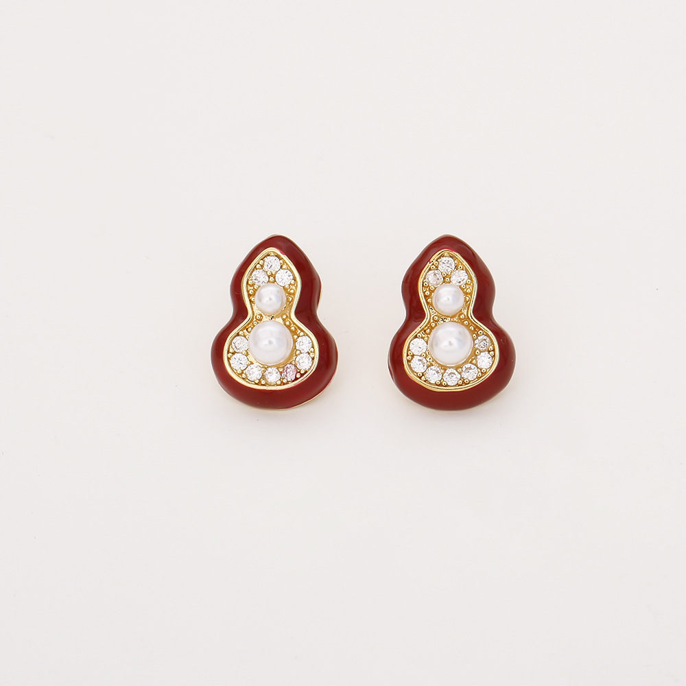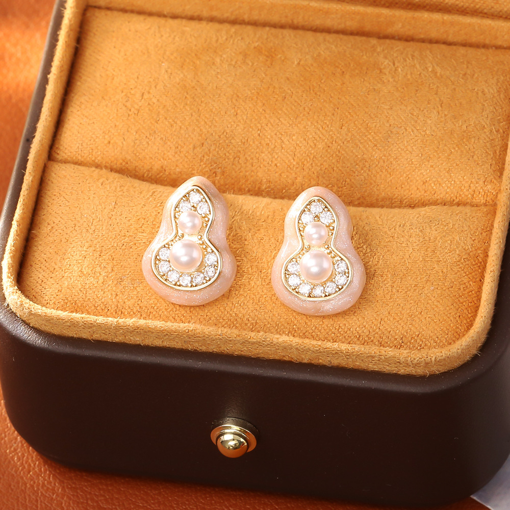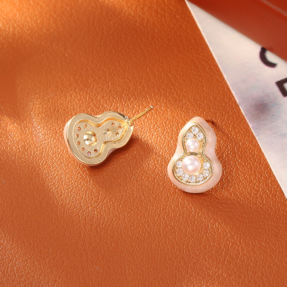 Cilindrata Zircone Orecchini in ottone micro pavimenta, with perla in plastica, Calabassa, placcato oro vero, Micro spianare cubic zirconia & per la donna & smalto, Venduto da coppia