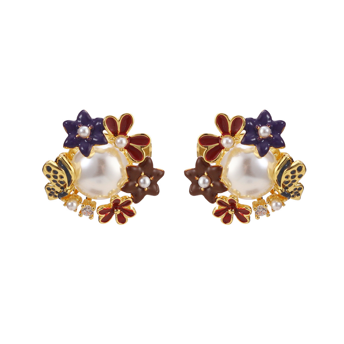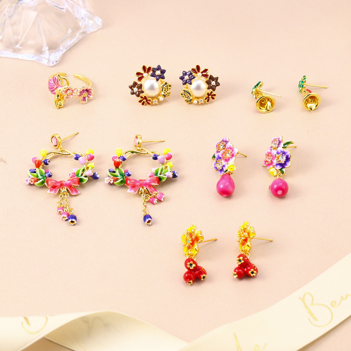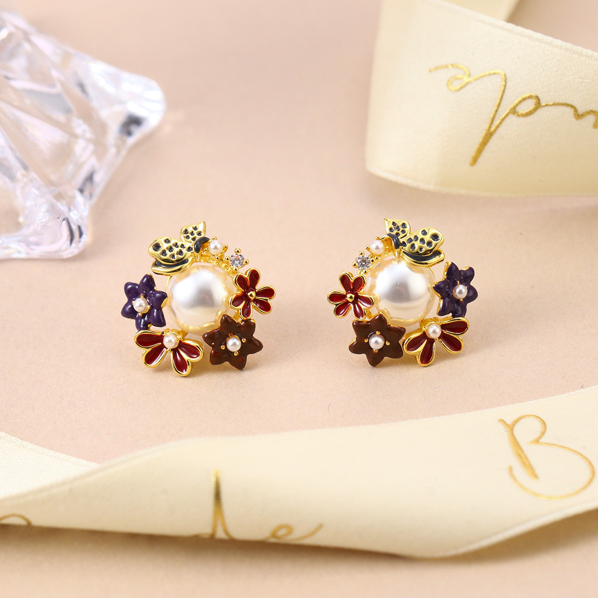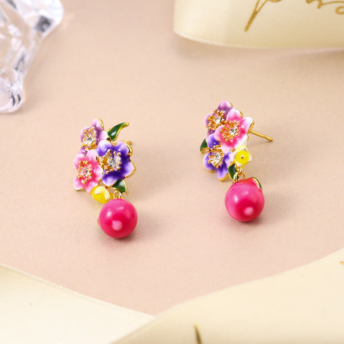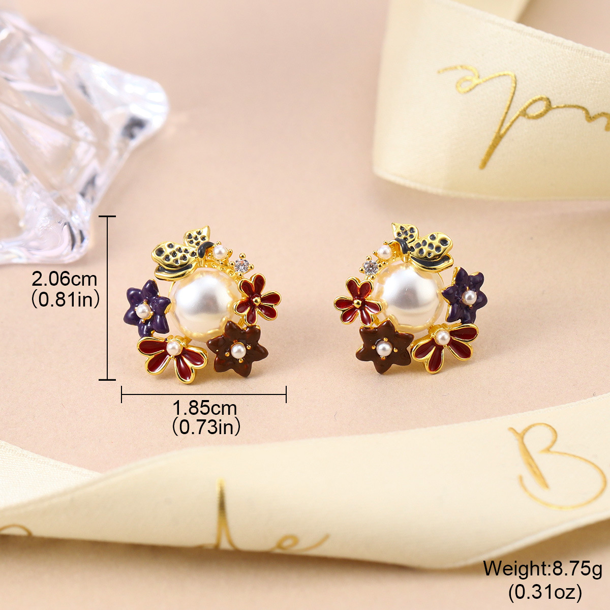 Cilindrata Zircone Orecchini in ottone micro pavimenta, with cubico zircone & perla in plastica, placcato, stili diversi per la scelta & per la donna & smalto, Venduto da coppia