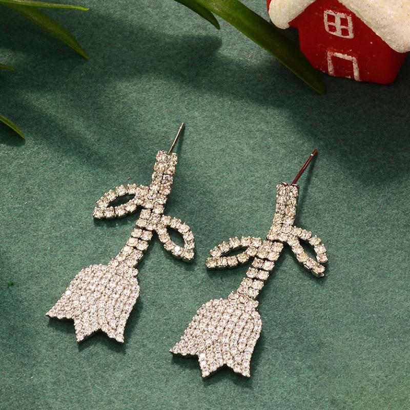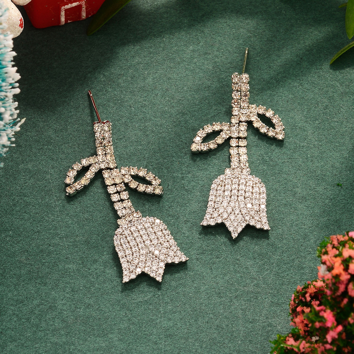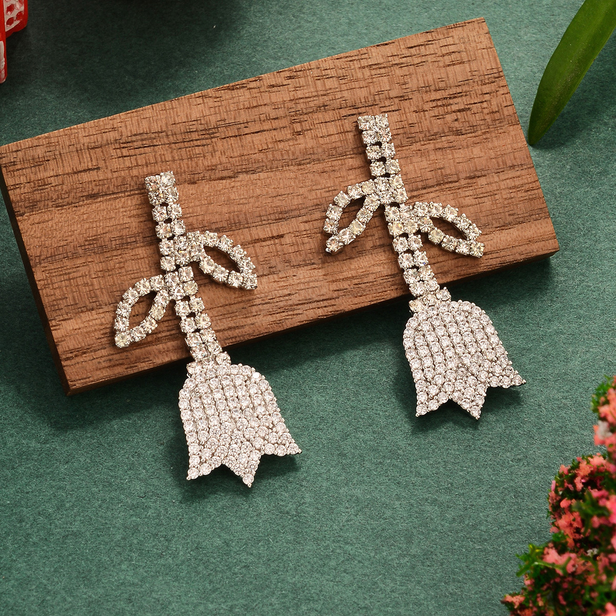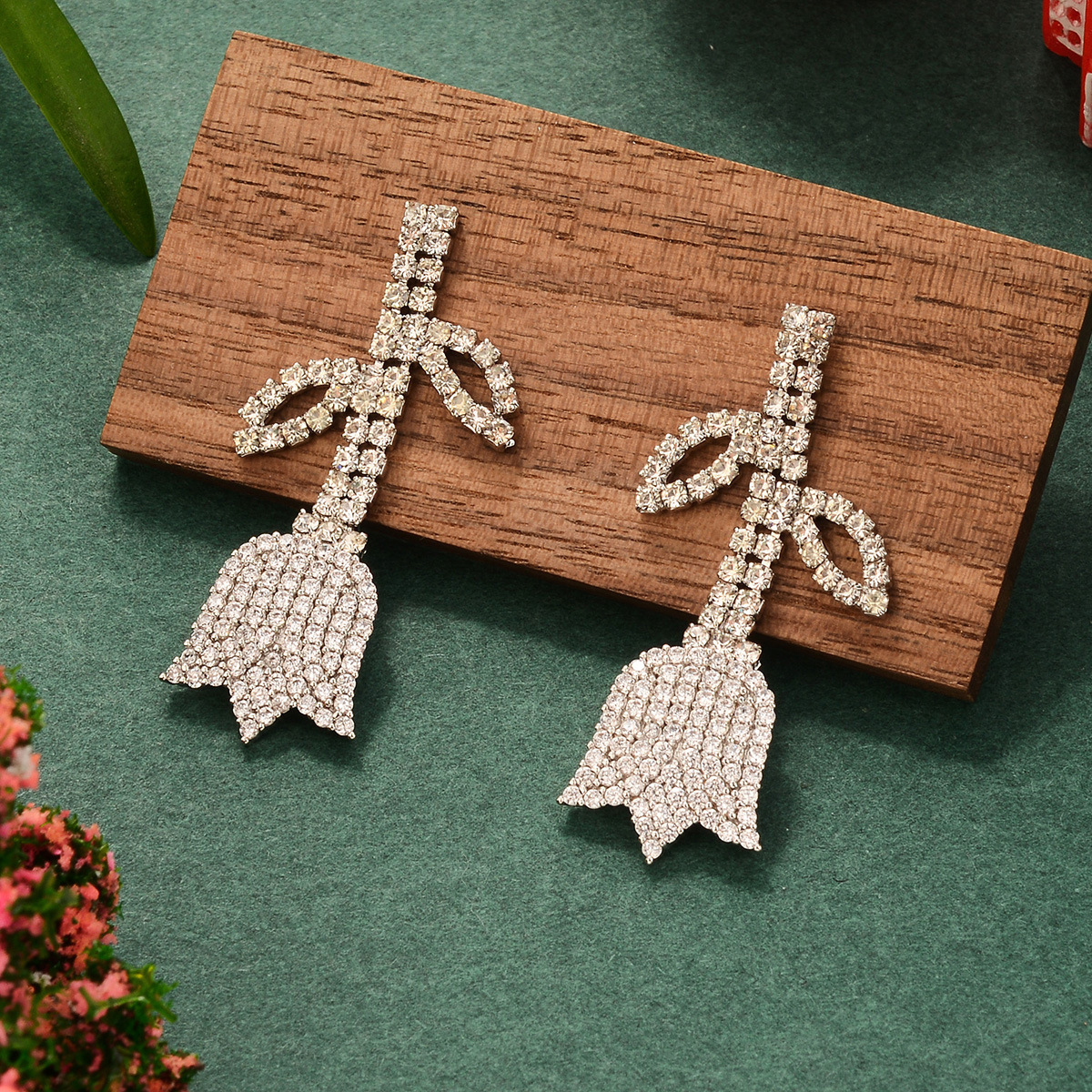 Cilindrata Zircone Orecchini in ottone micro pavimenta, Tulipano, placcato, gioielli di moda & Micro spianare cubic zirconia & per la donna, argento, 38x18.50mm, Venduto da coppia