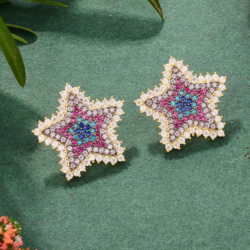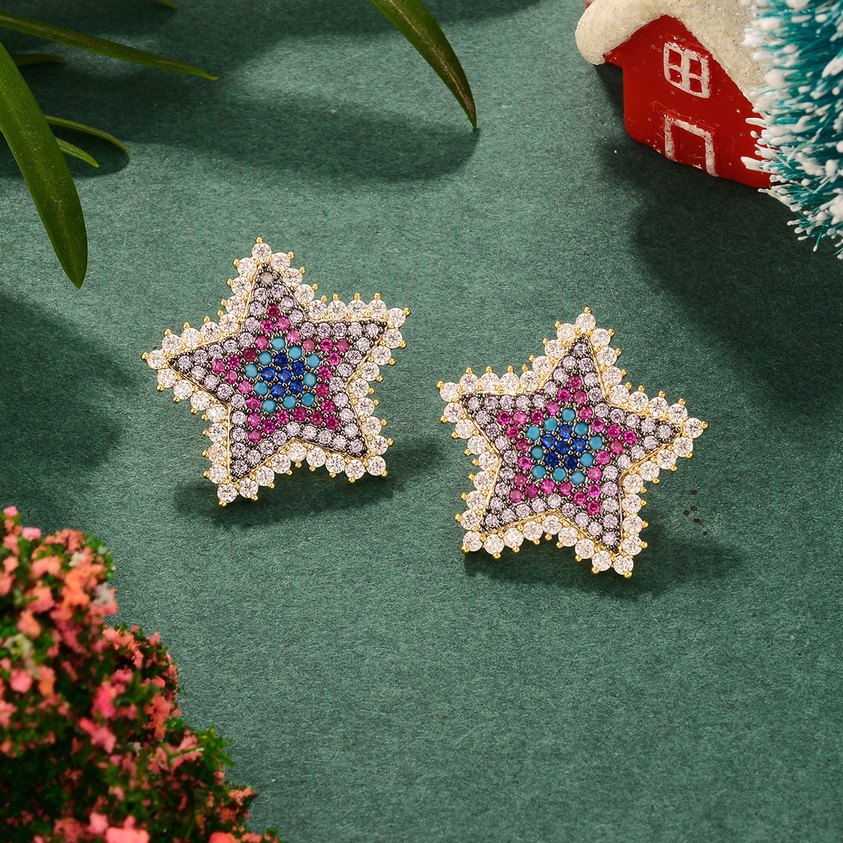 Cilindrata Zircone Orecchini in ottone micro pavimenta, Stella, placcato, gioielli di moda & Micro spianare cubic zirconia & per la donna, Venduto da coppia