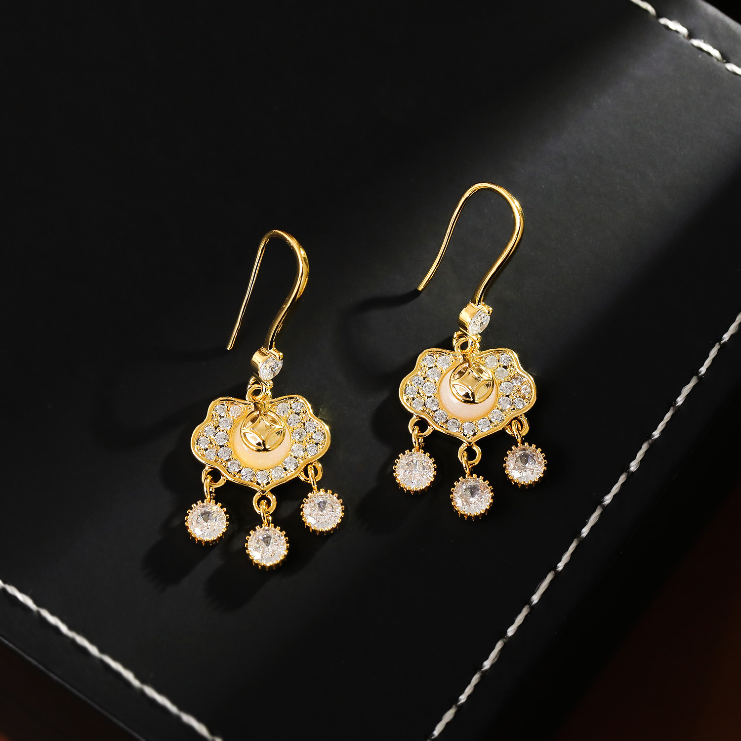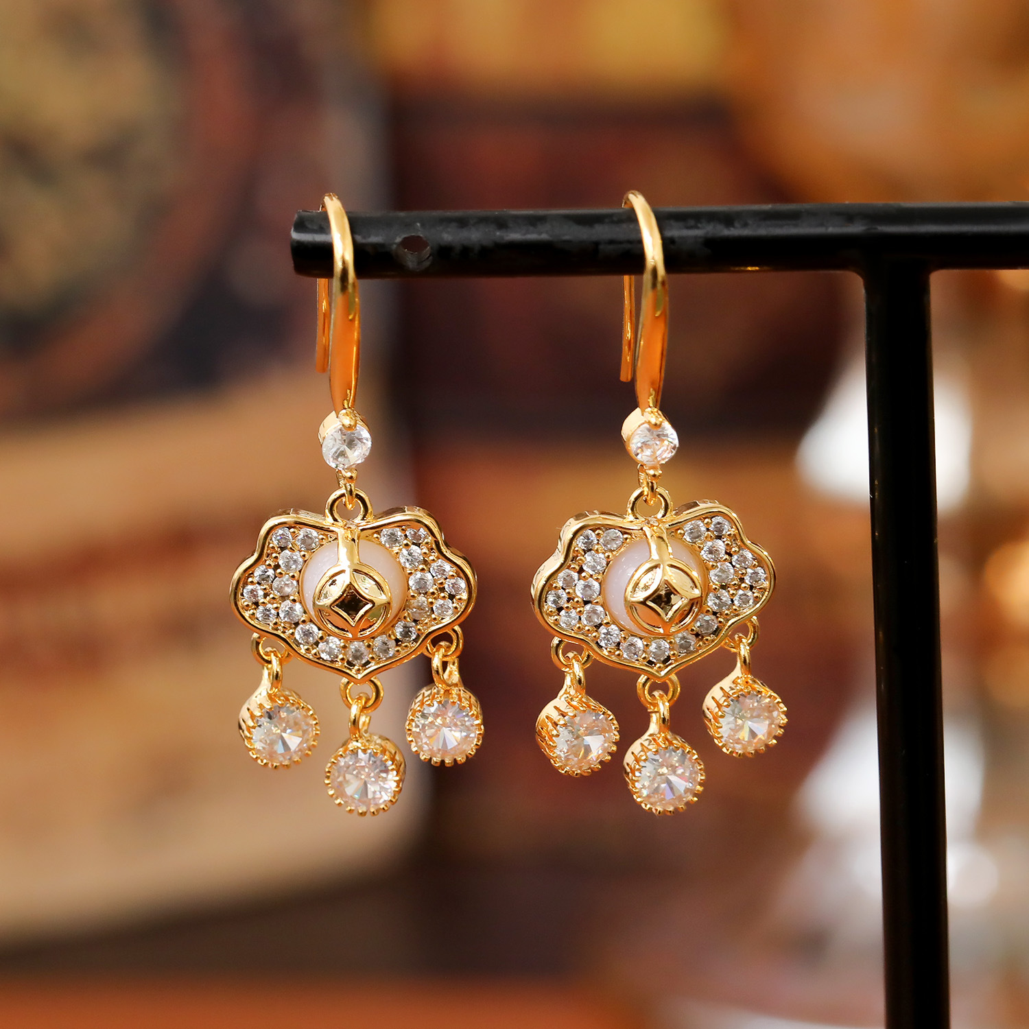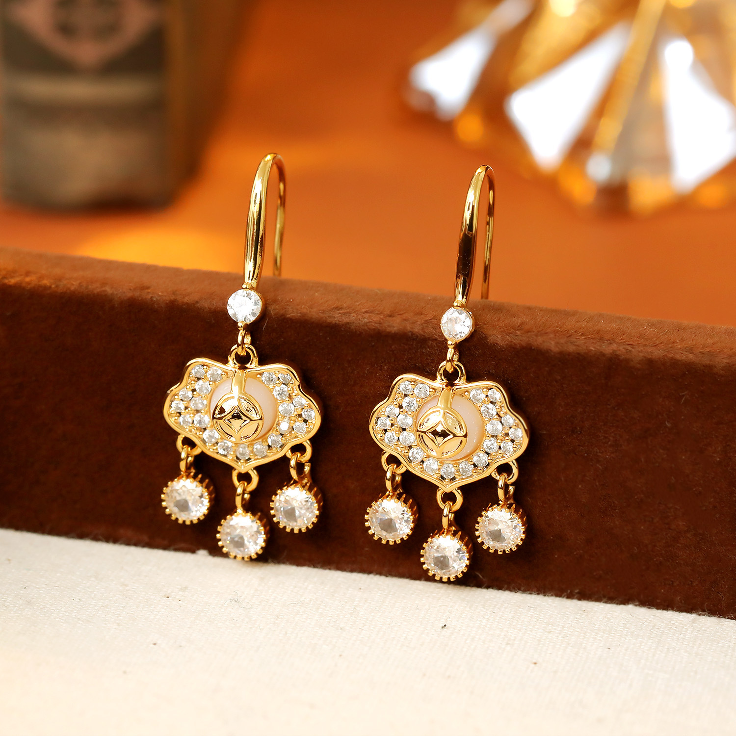 Cilindrata Zircone Orecchini in ottone micro pavimenta, with Bianco Calcedonio, Placcato oro 18K, gioielli di moda & Micro spianare cubic zirconia & per la donna, 26x20mm, Venduto da coppia