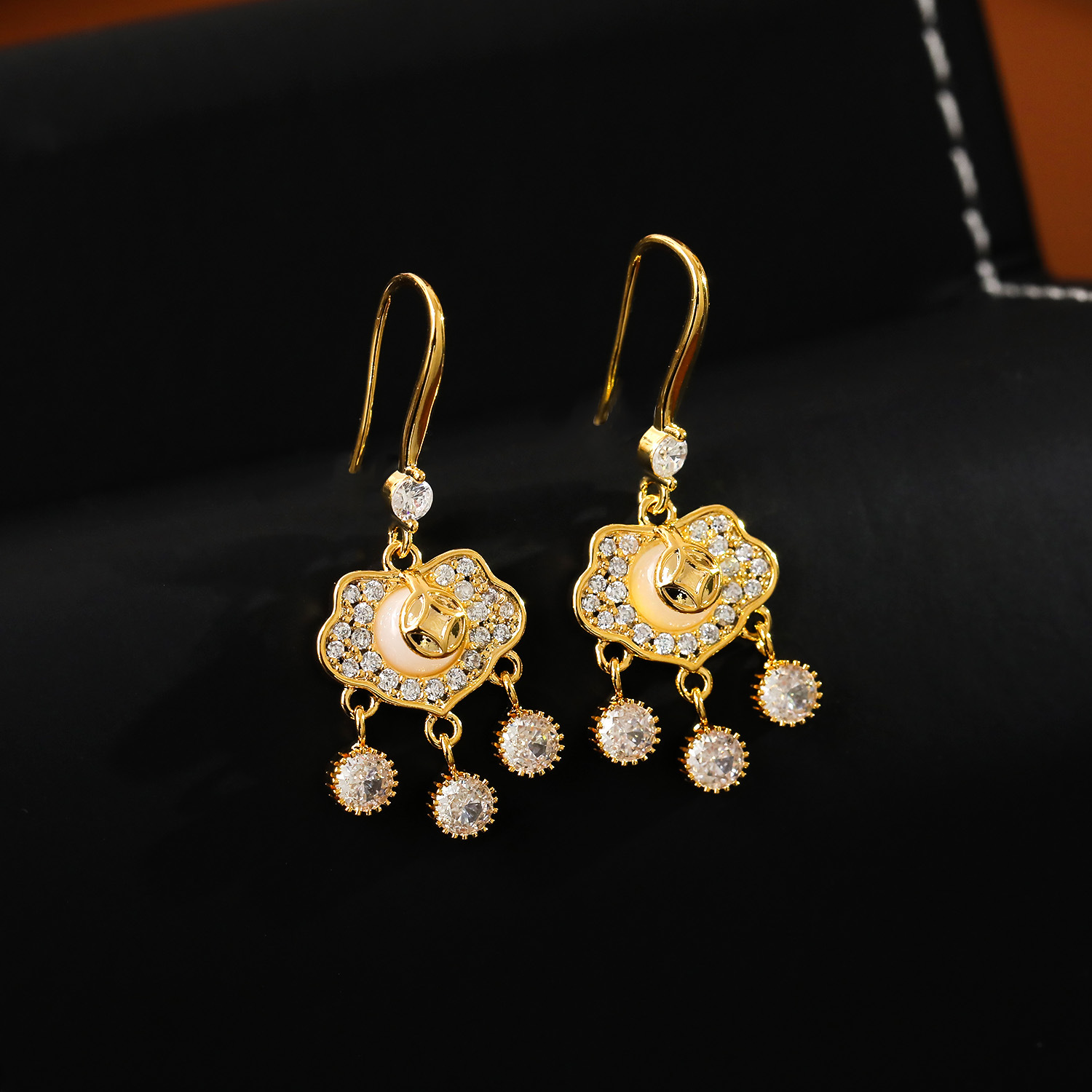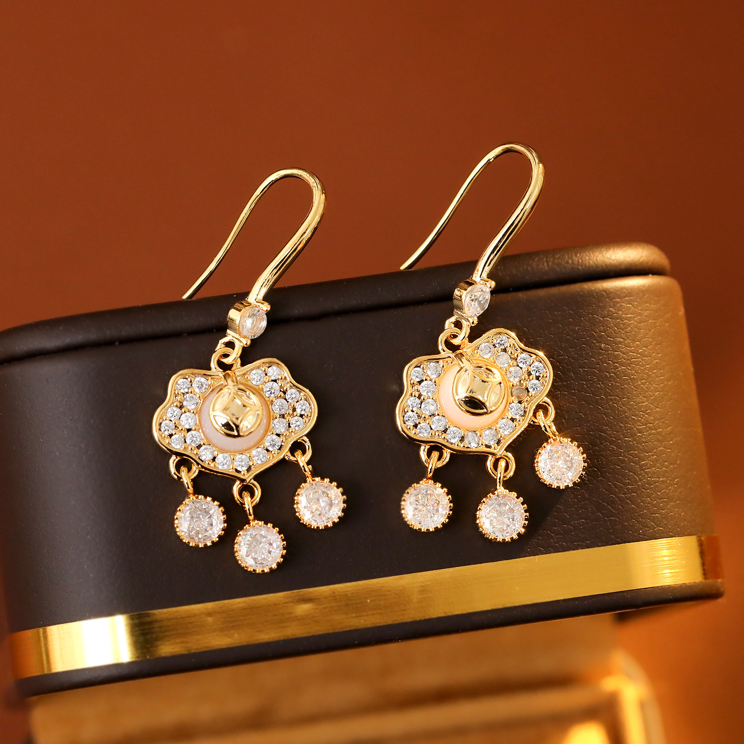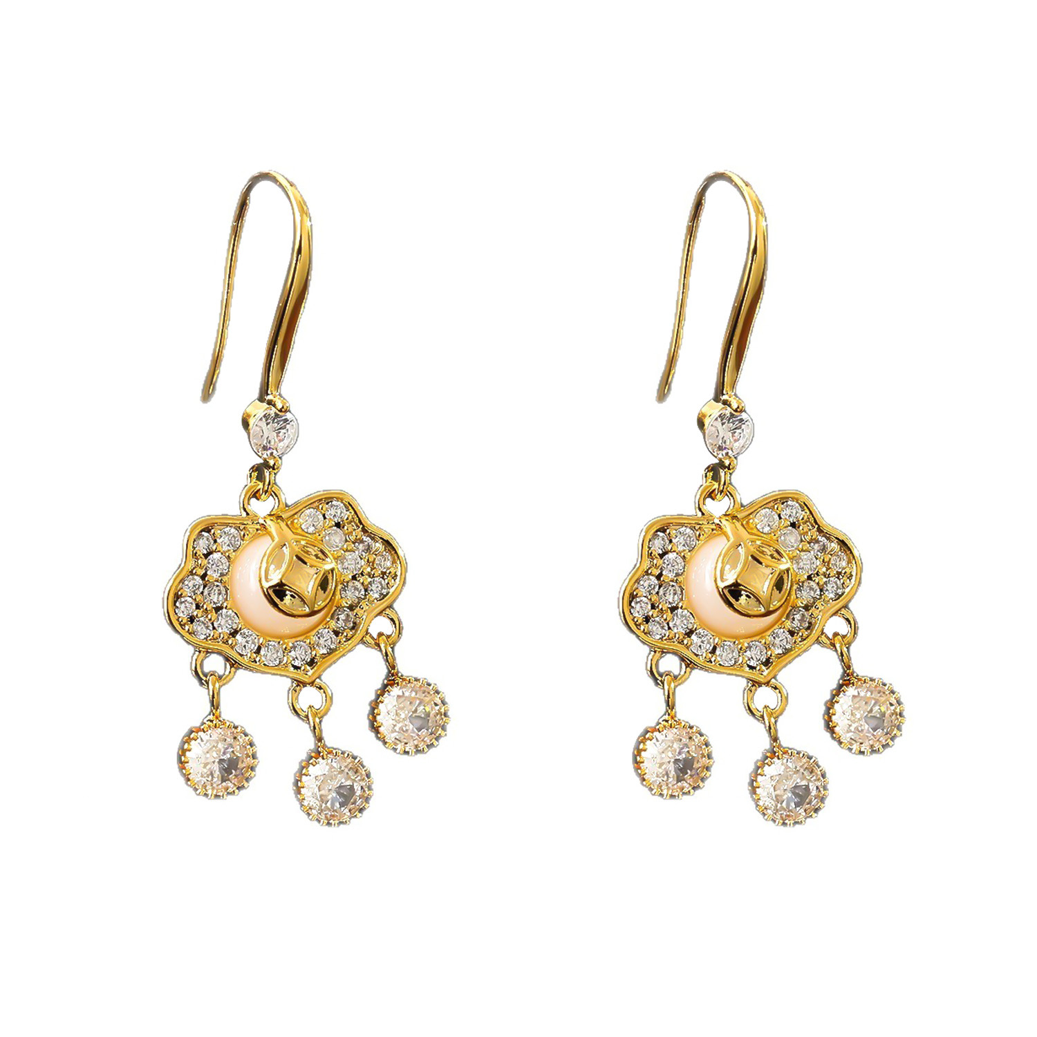 Cilindrata Zircone Orecchini in ottone micro pavimenta, with Bianco Calcedonio, Placcato oro 18K, gioielli di moda & Micro spianare cubic zirconia & per la donna, 26x20mm, Venduto da coppia