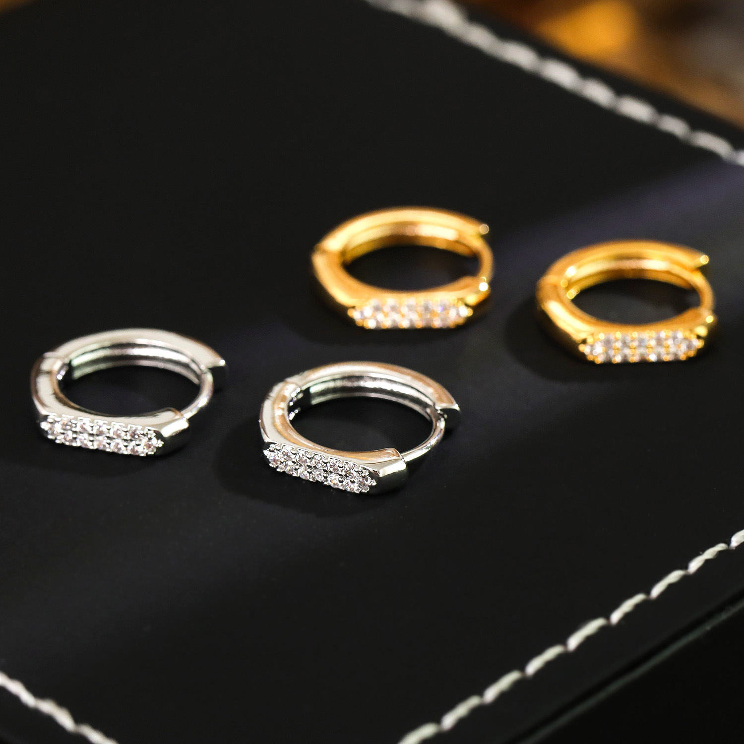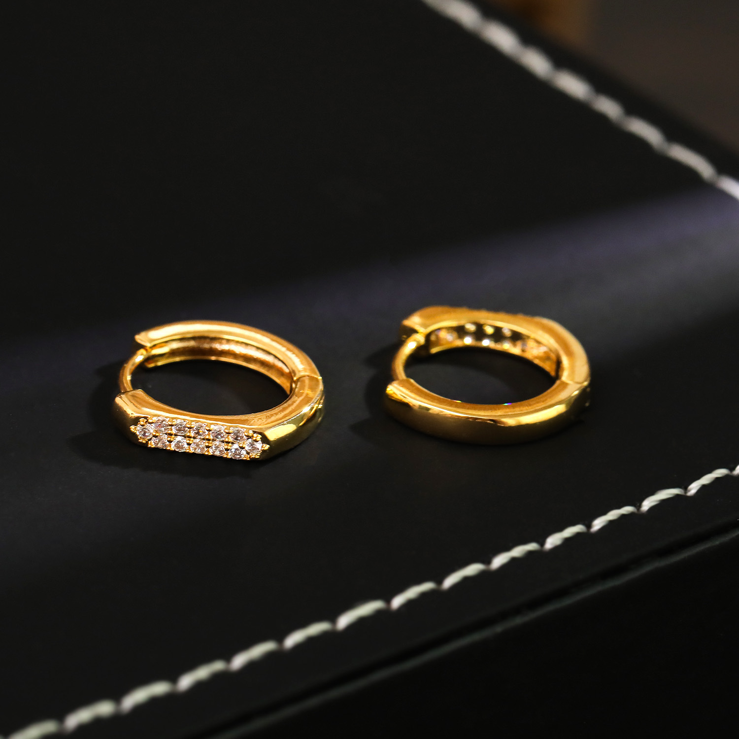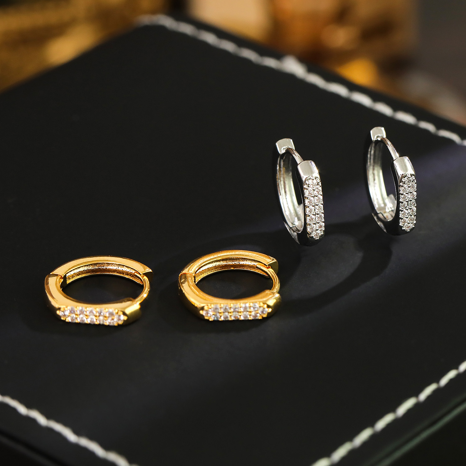 Cilindrata Zircone Orecchini in ottone micro pavimenta, placcato, tre pezzi & per la donna, dorato, Venduto da set