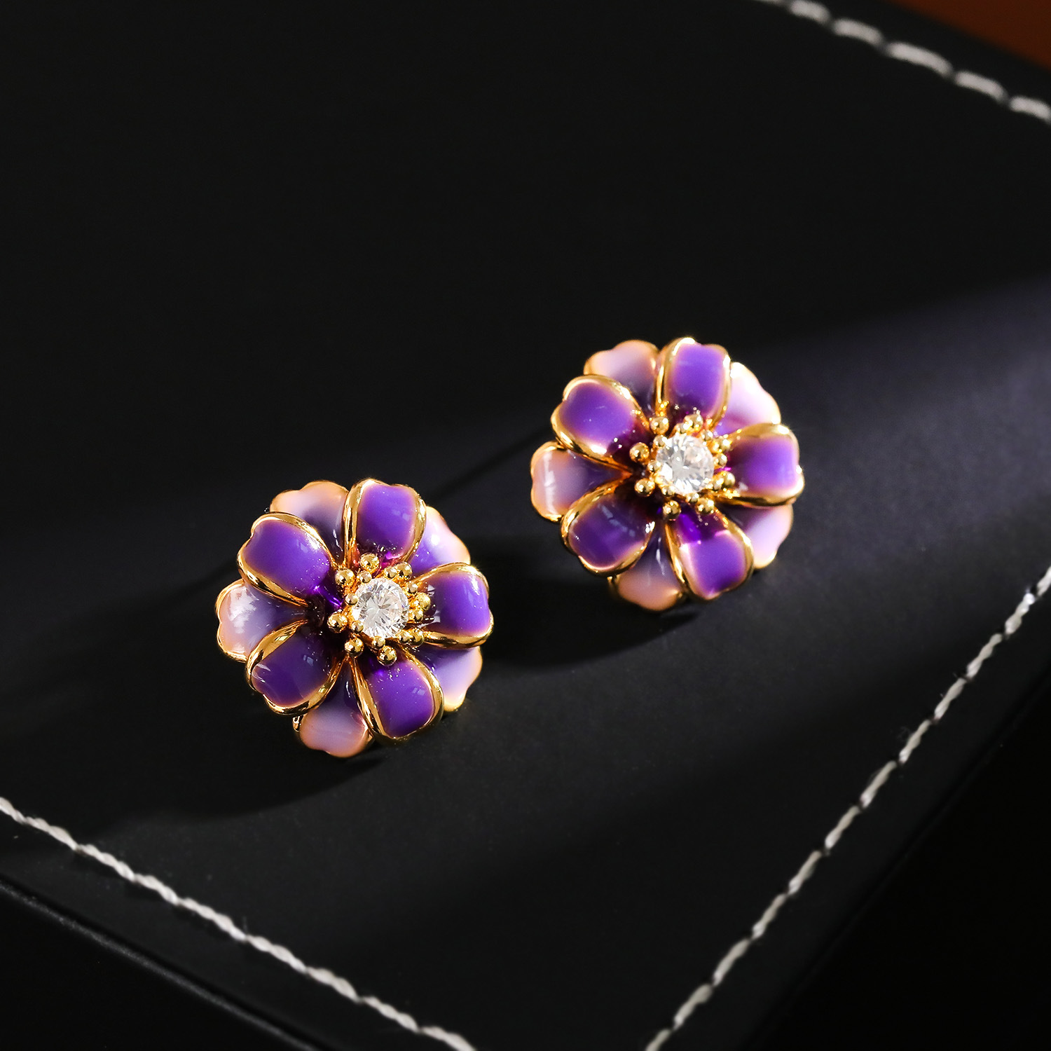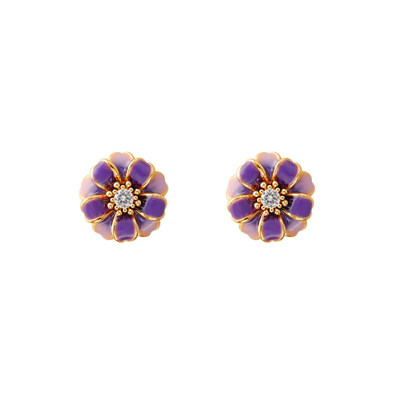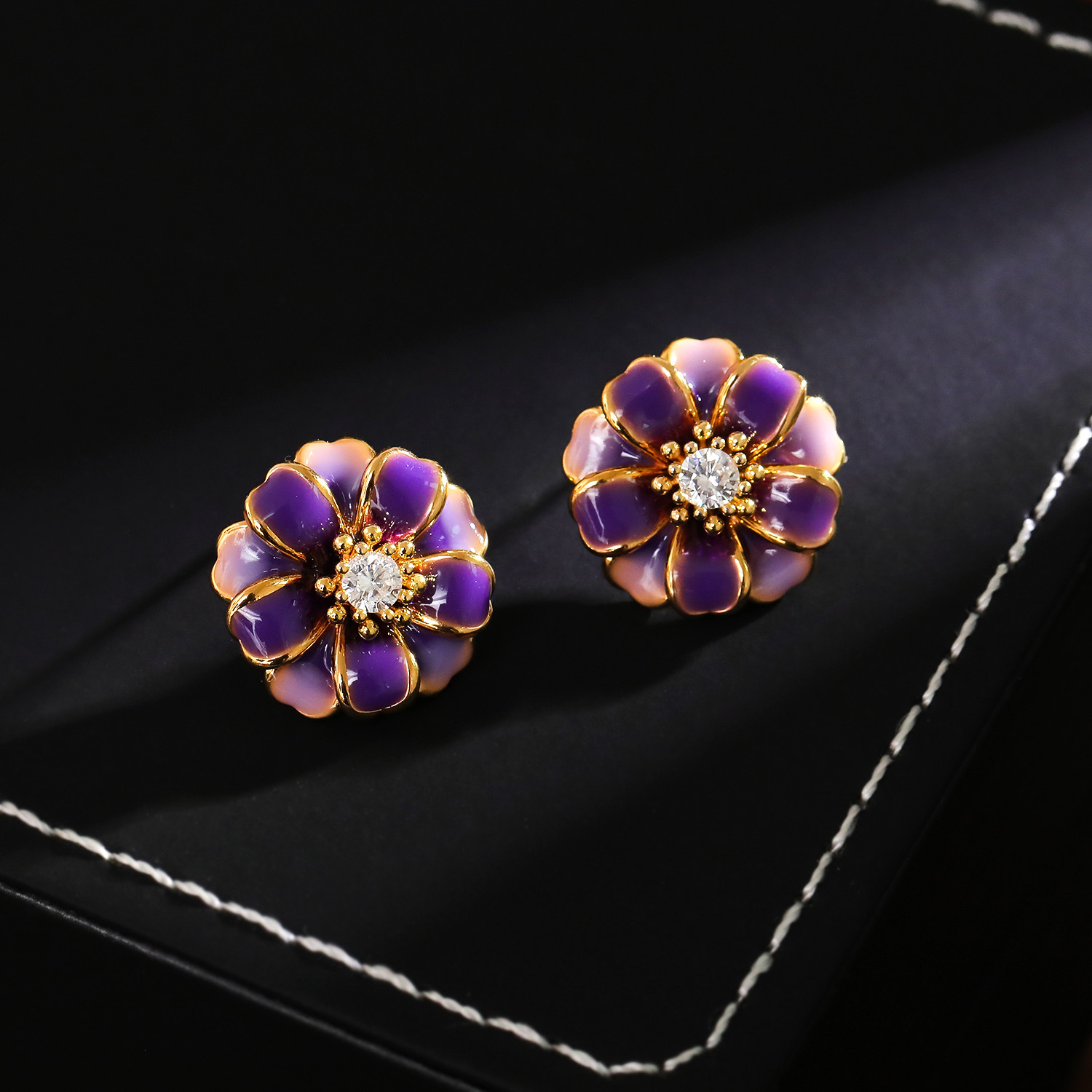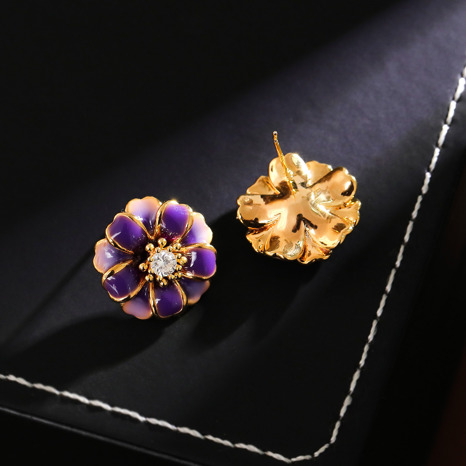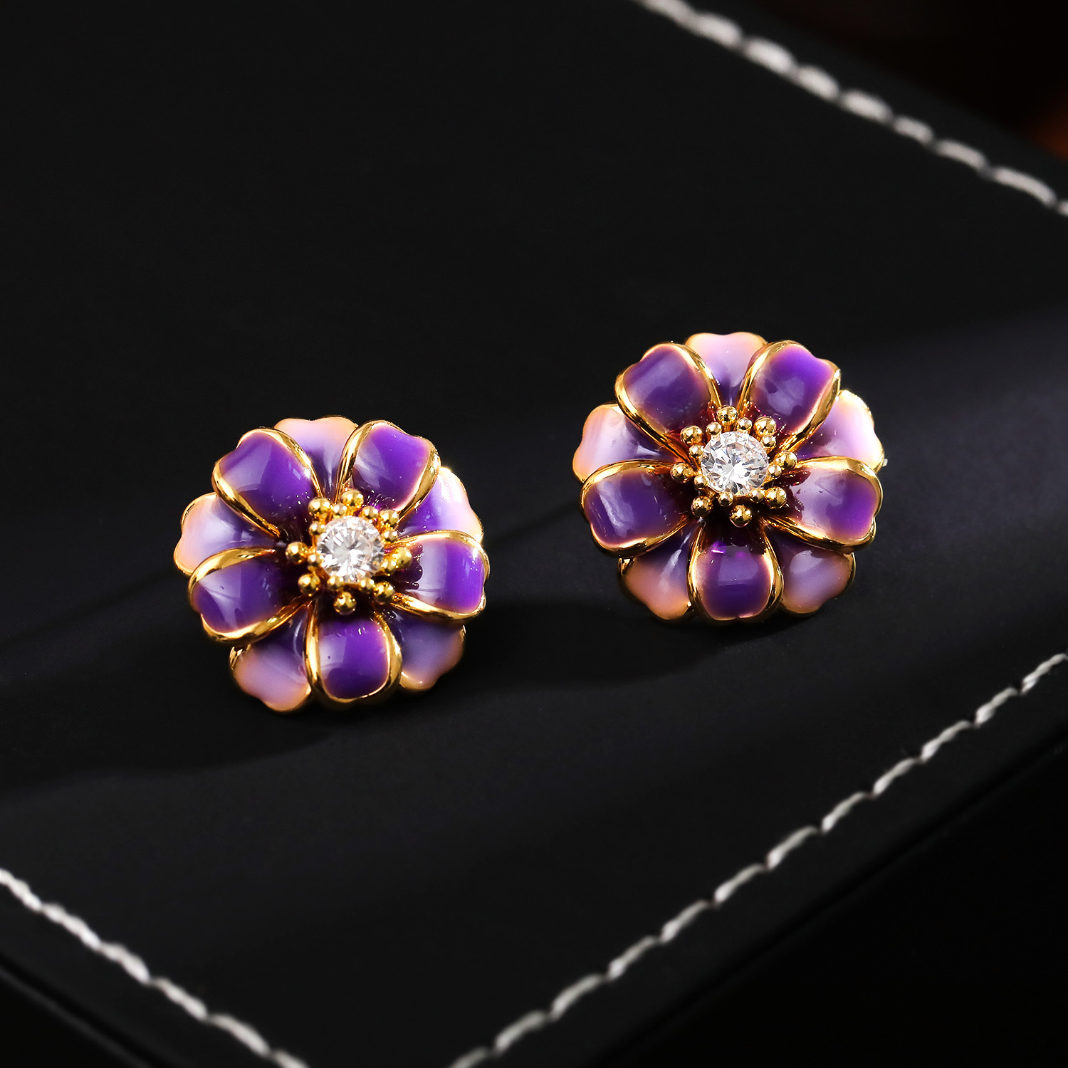 Cilindrata Zircone Orecchini in ottone micro pavimenta, Fiore, Placcato oro 18K, gioielli di moda & Micro spianare cubic zirconia & per la donna, Diameter: 1.9cm, Venduto da coppia