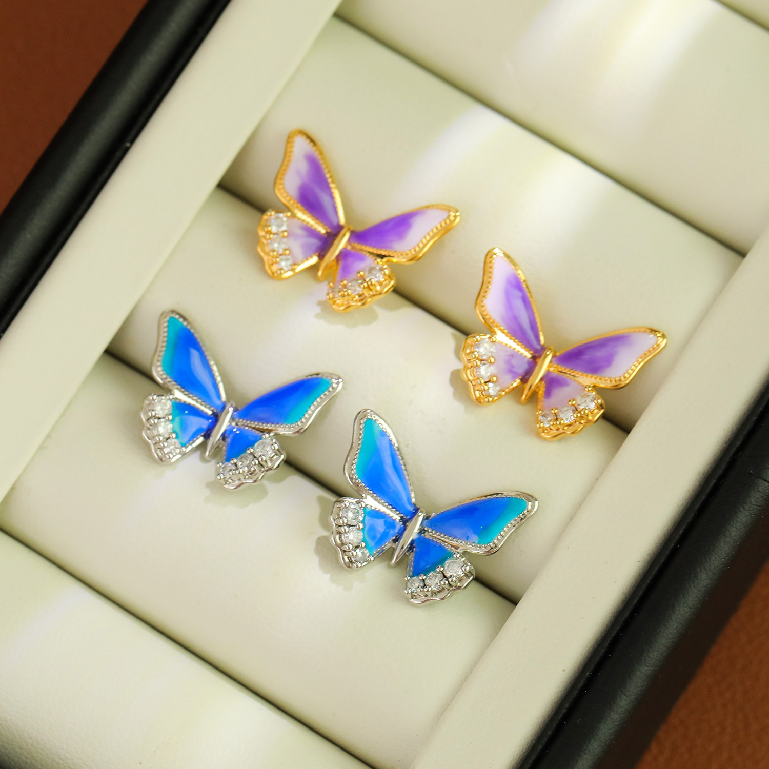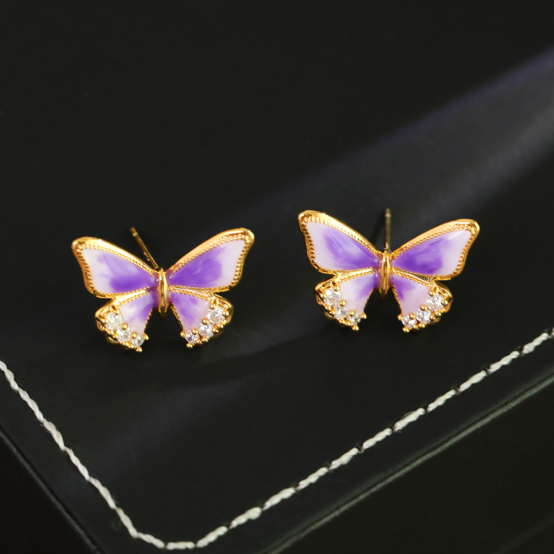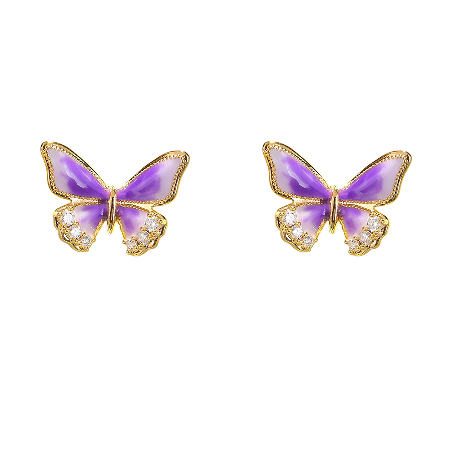 Cilindrata Zircone Orecchini in ottone micro pavimenta, Farfalla, placcato, Micro spianare cubic zirconia & per la donna & smalto, nessuno, 14x20mm, Venduto da coppia