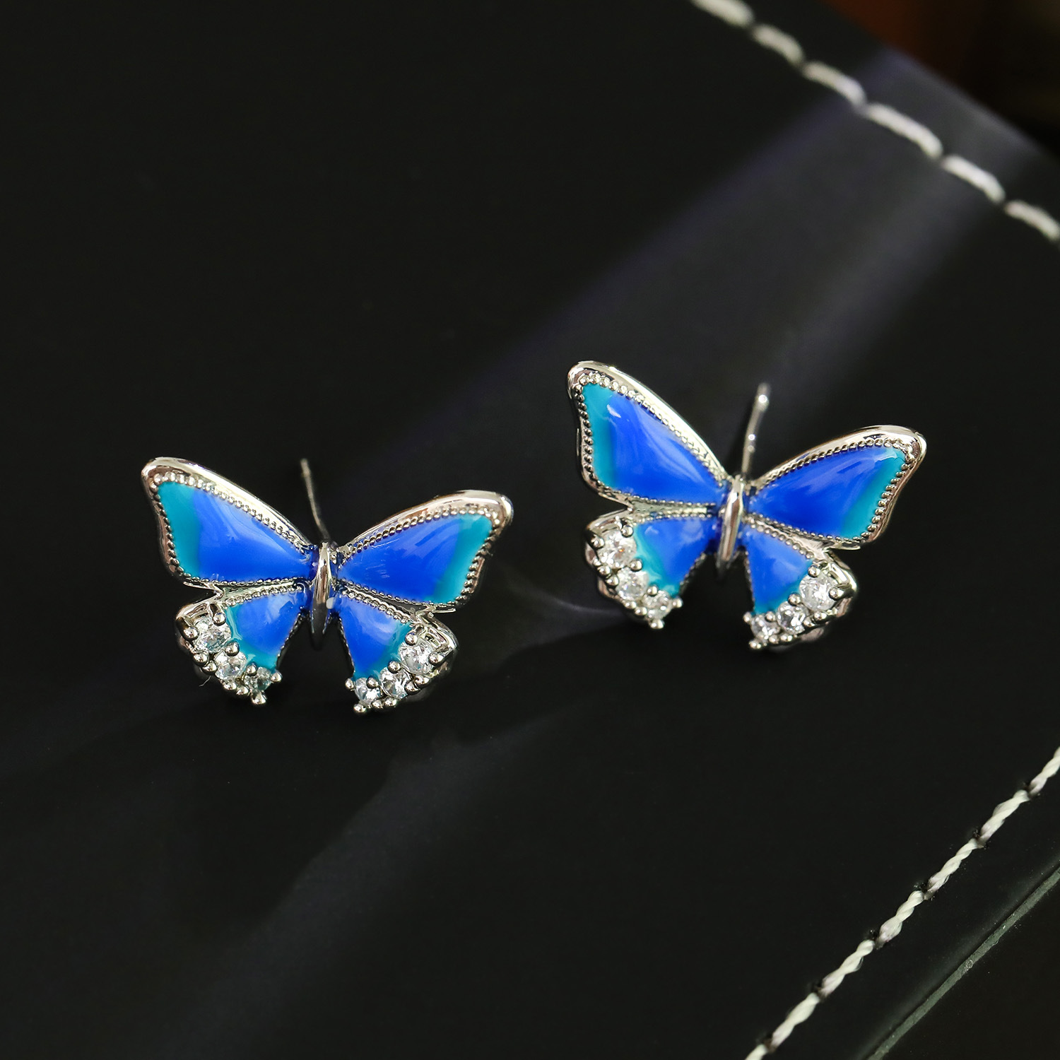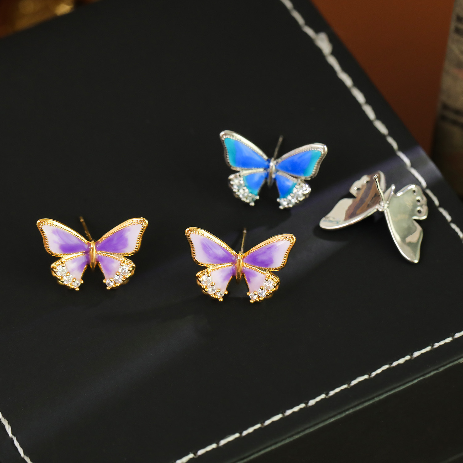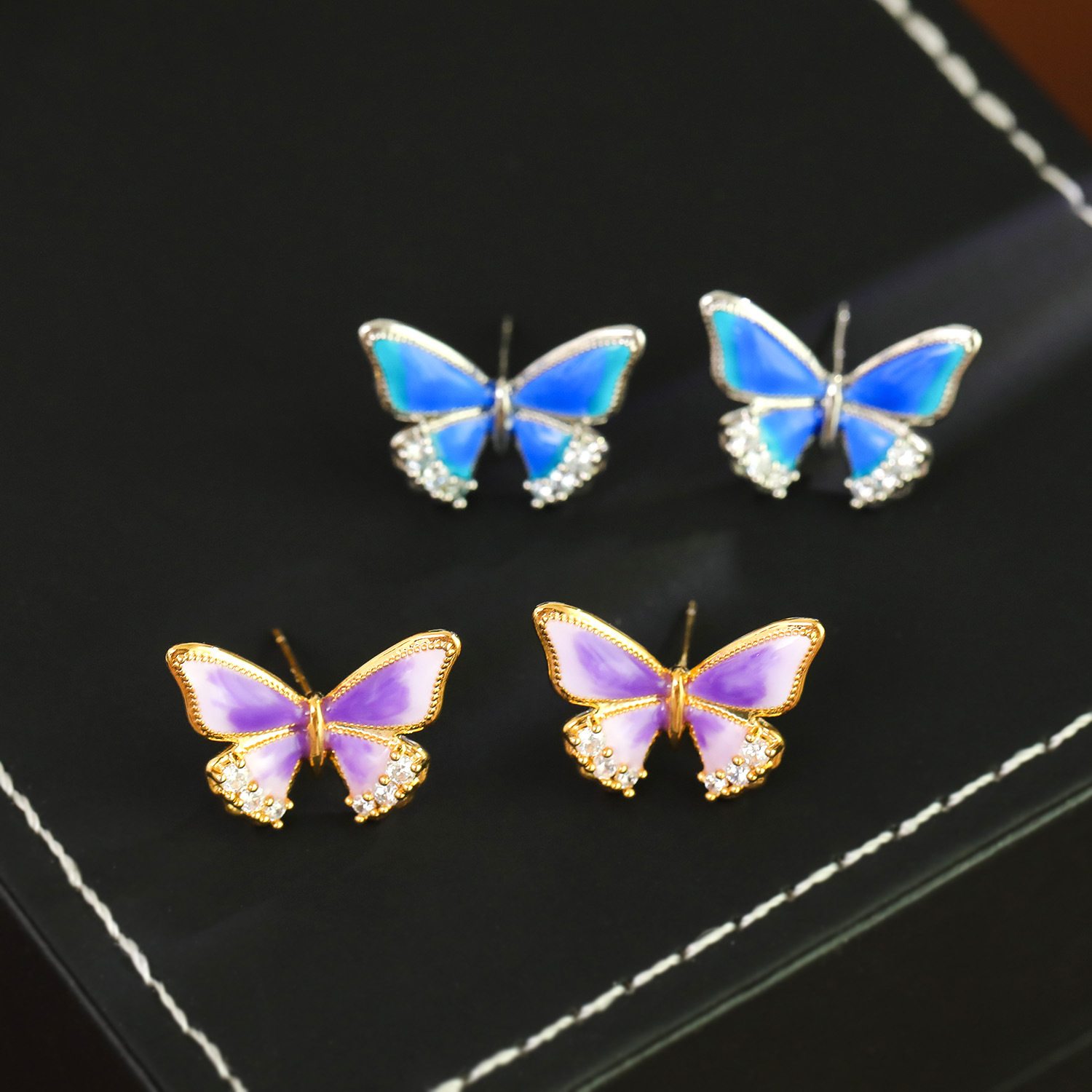 Cilindrata Zircone Orecchini in ottone micro pavimenta, Farfalla, placcato, Micro spianare cubic zirconia & per la donna & smalto, nessuno, 14x20mm, Venduto da coppia