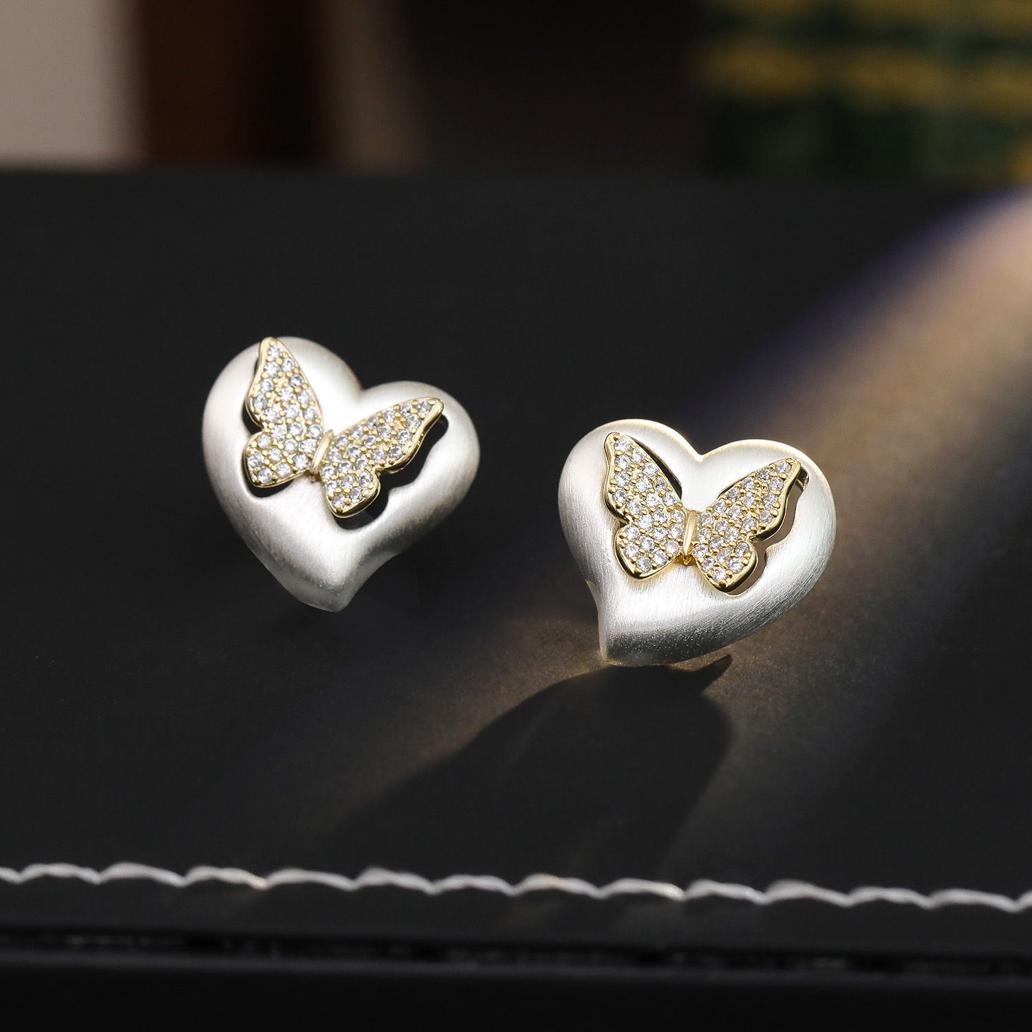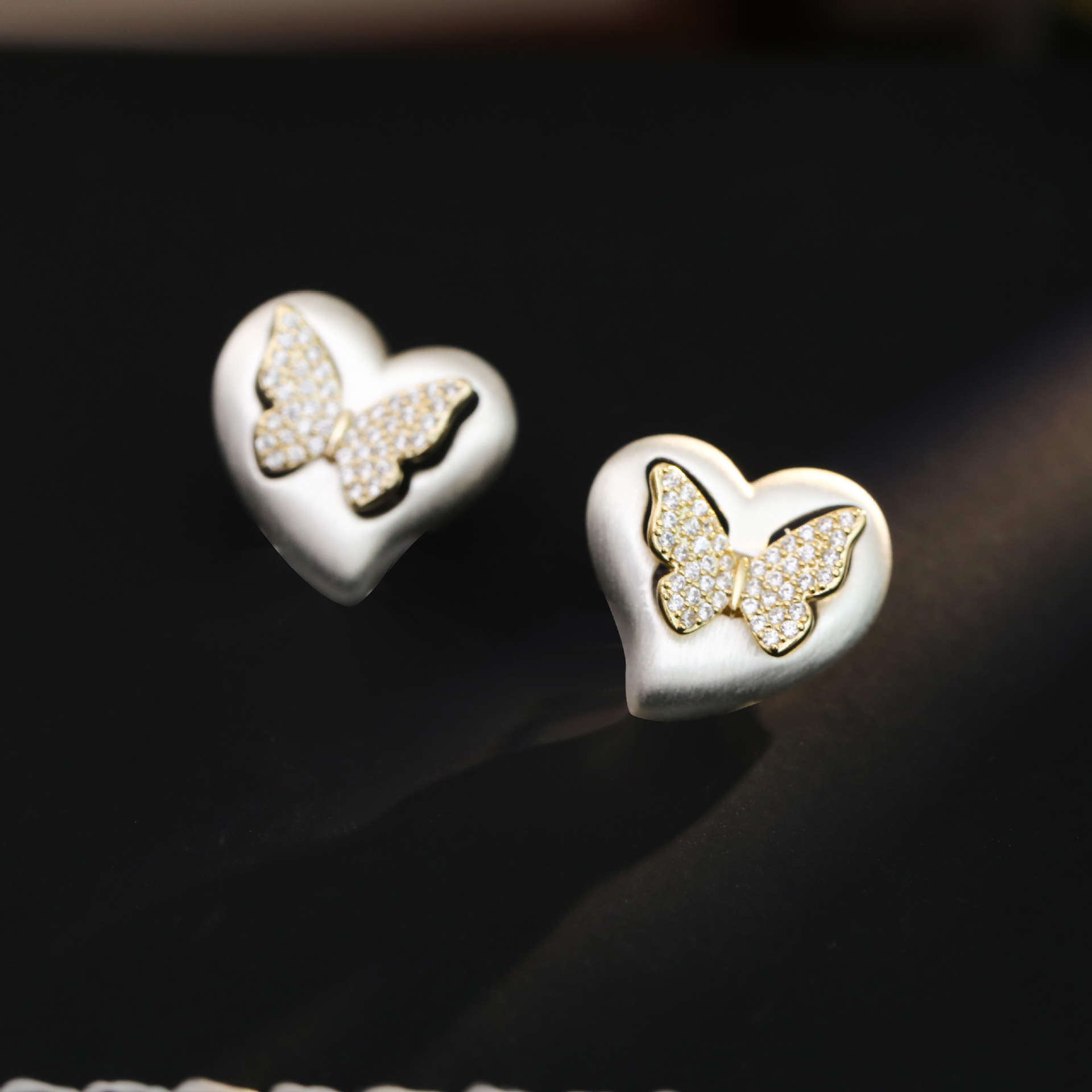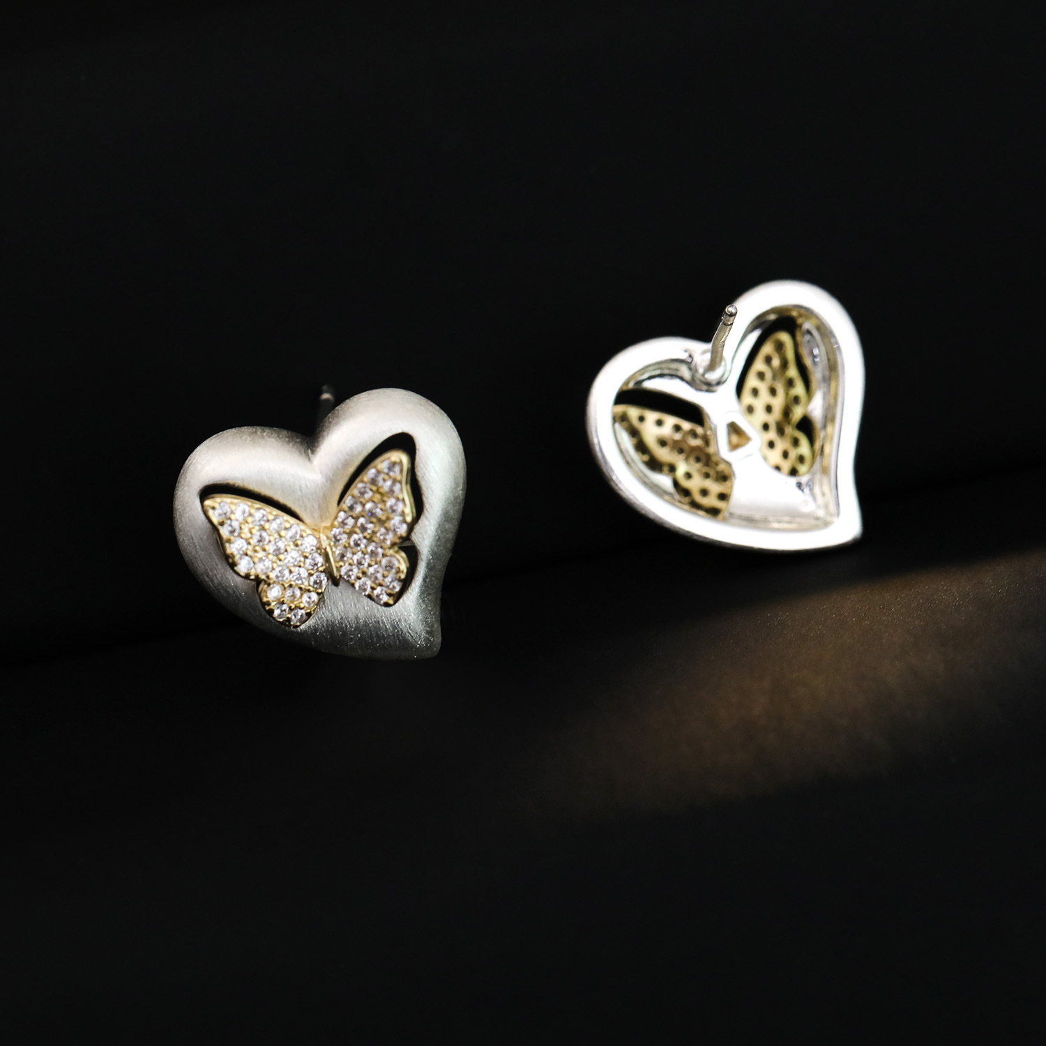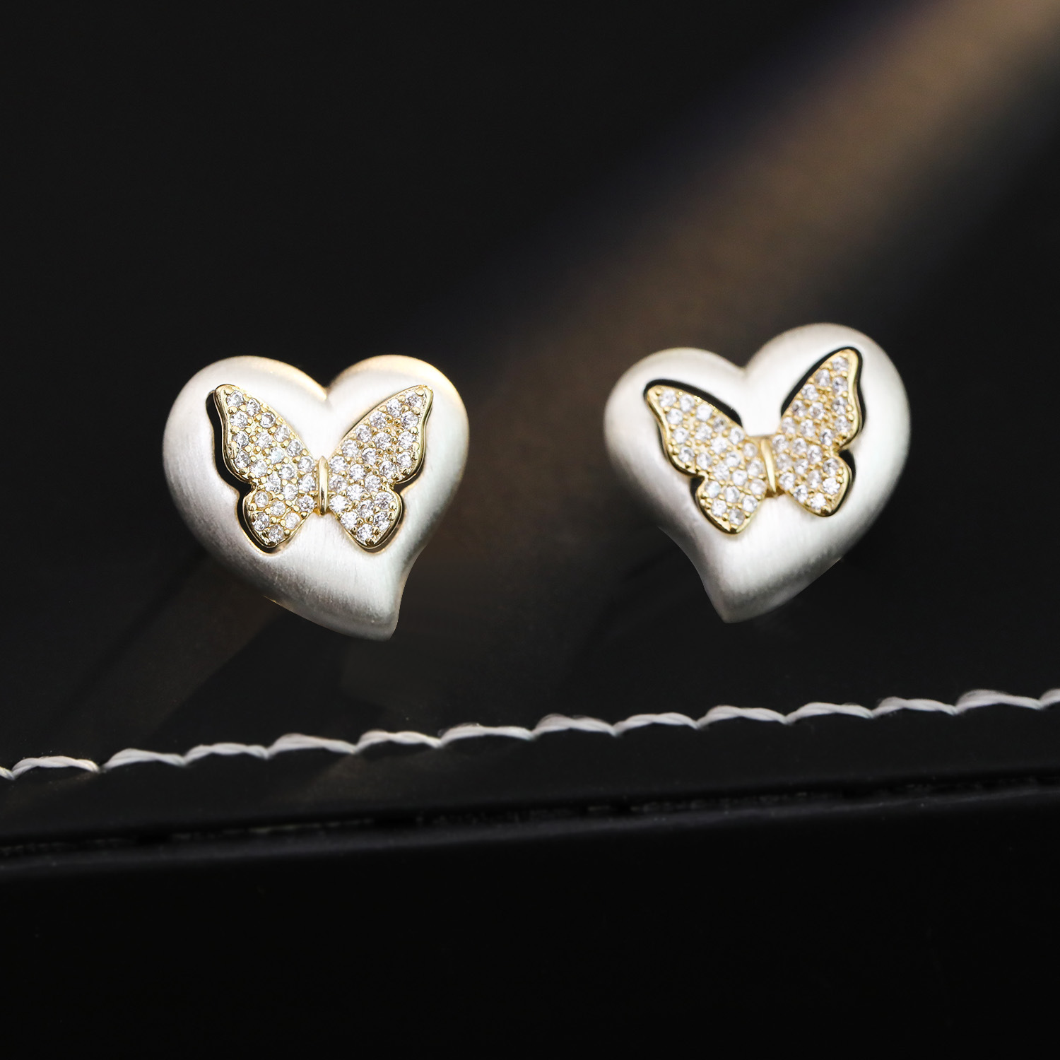 Cilindrata Zircone Orecchini in ottone micro pavimenta, Cuore, Placcato in oro 14K, spazzolato & Micro spianare cubic zirconia & per la donna, argento, 15x16mm, Venduto da coppia