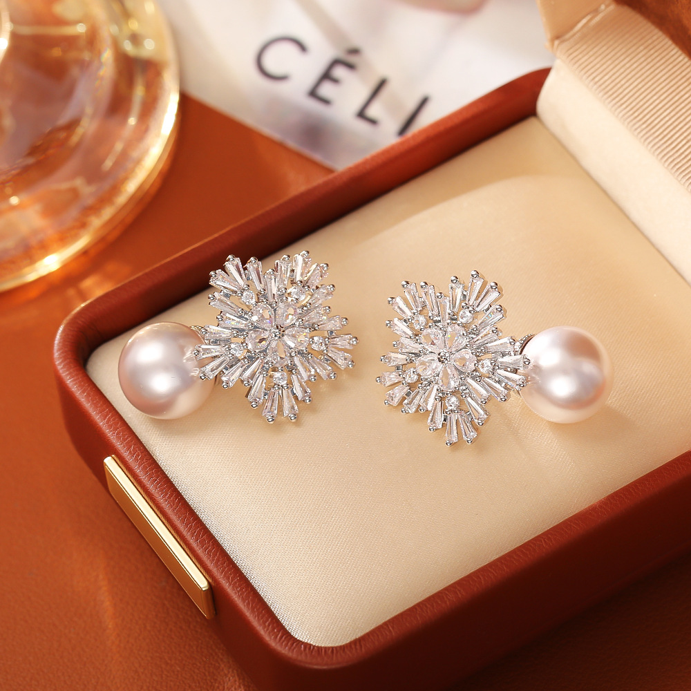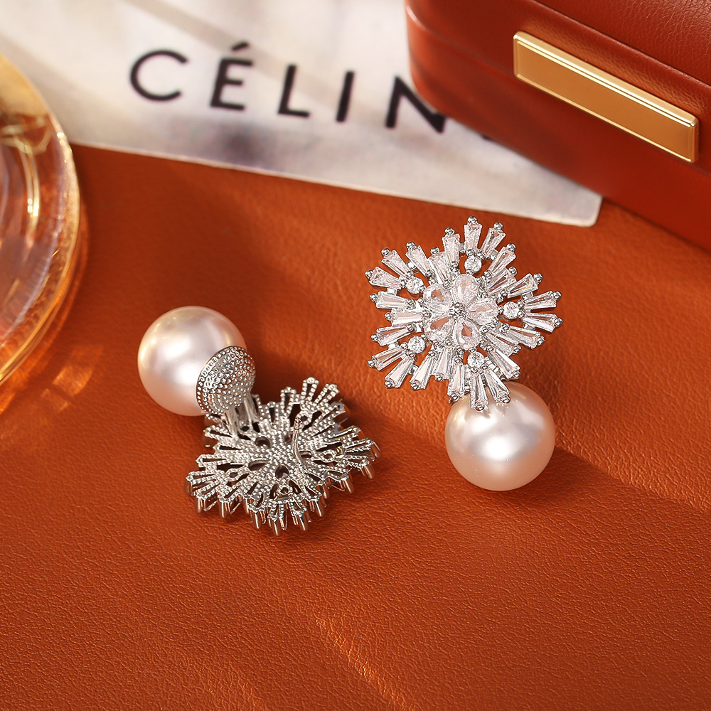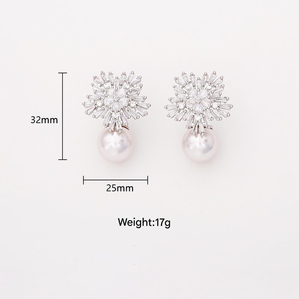 Cilindrata Zircone Orecchini in ottone micro pavimenta, with perla in plastica, placcato oro vero, gioielli di moda & Micro spianare cubic zirconia & per la donna, Venduto da coppia