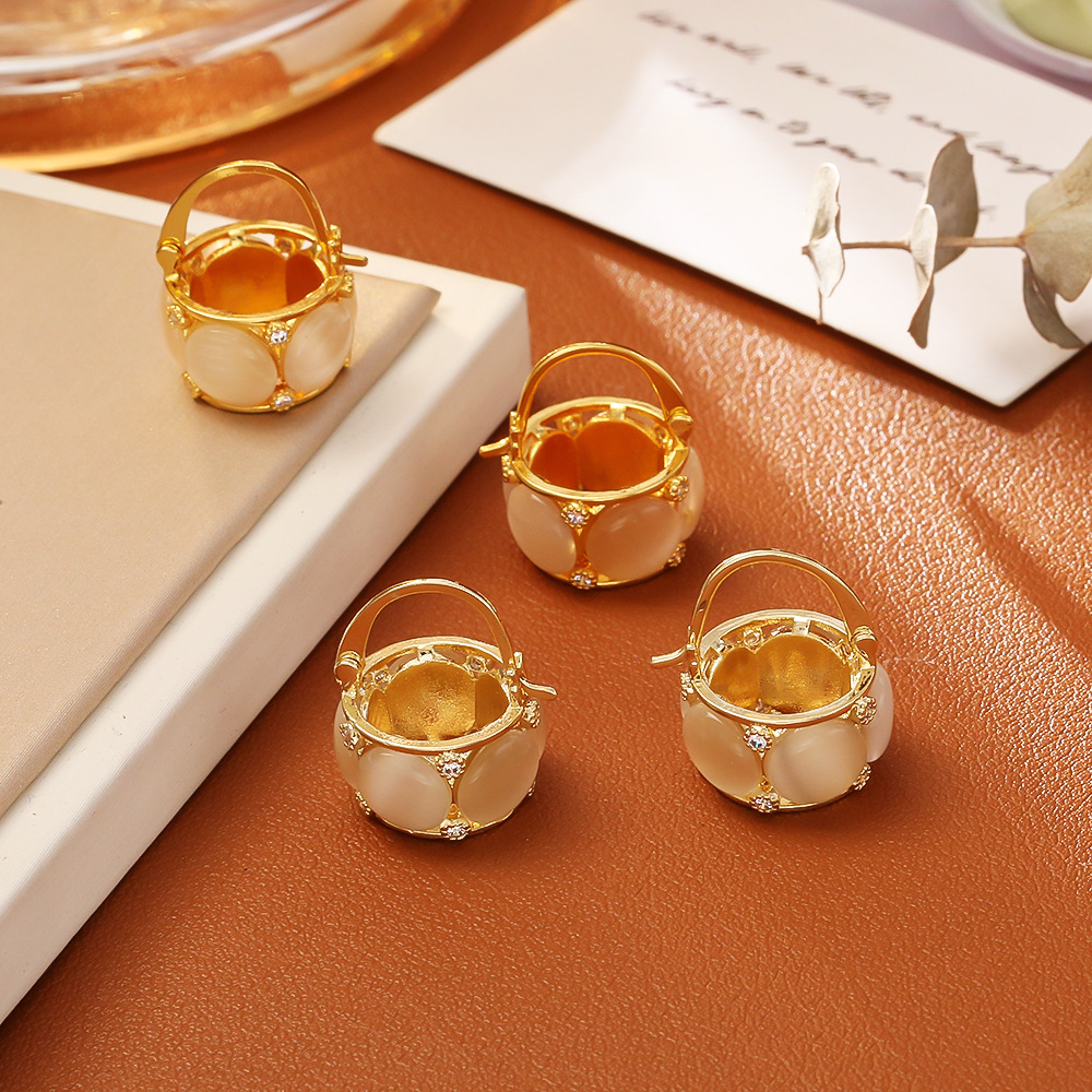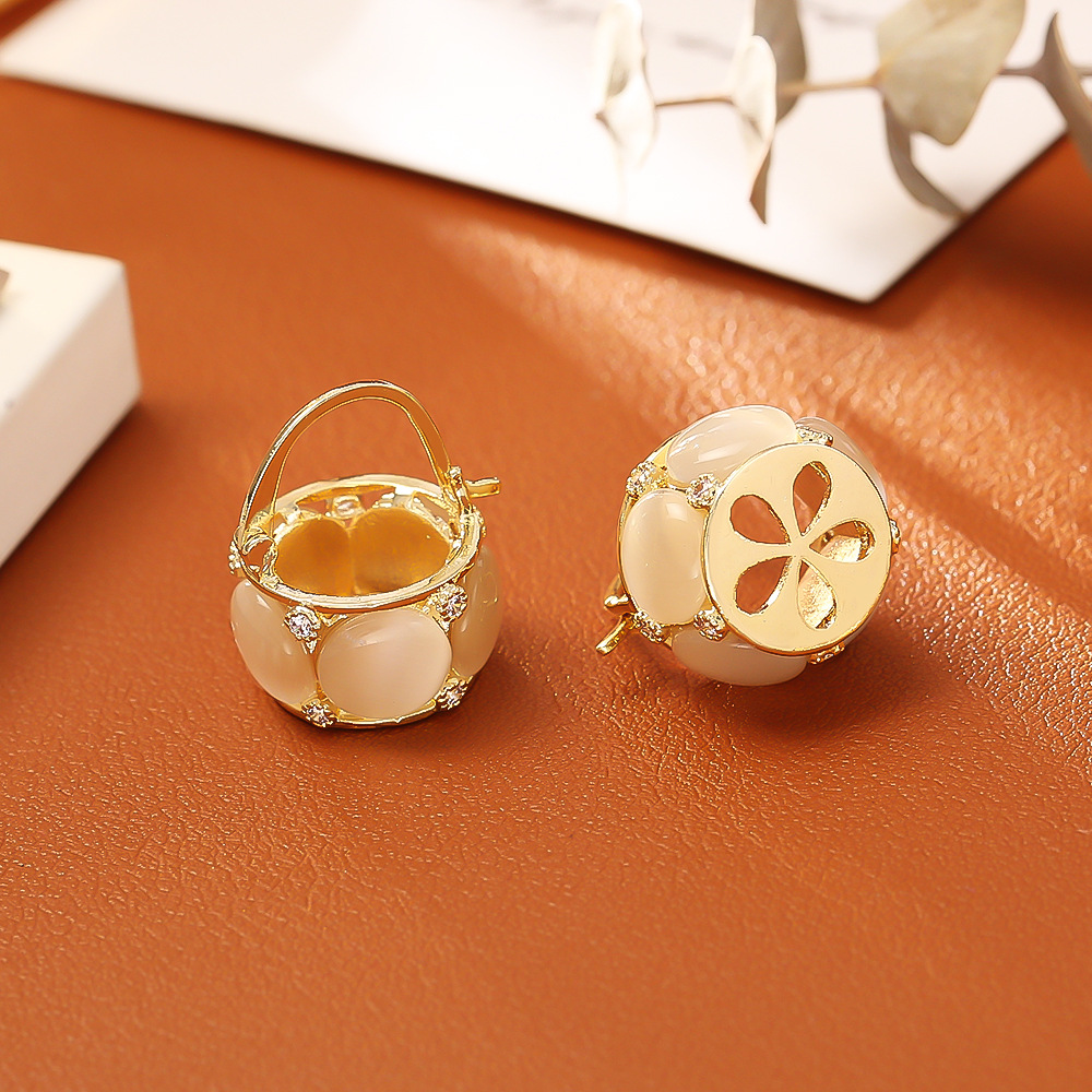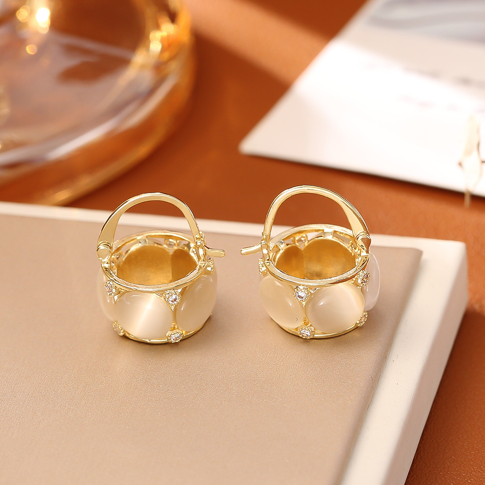 1:24K gold-plated cat's eye stone earrings2:14K gold-plated cat's eye stone earrings