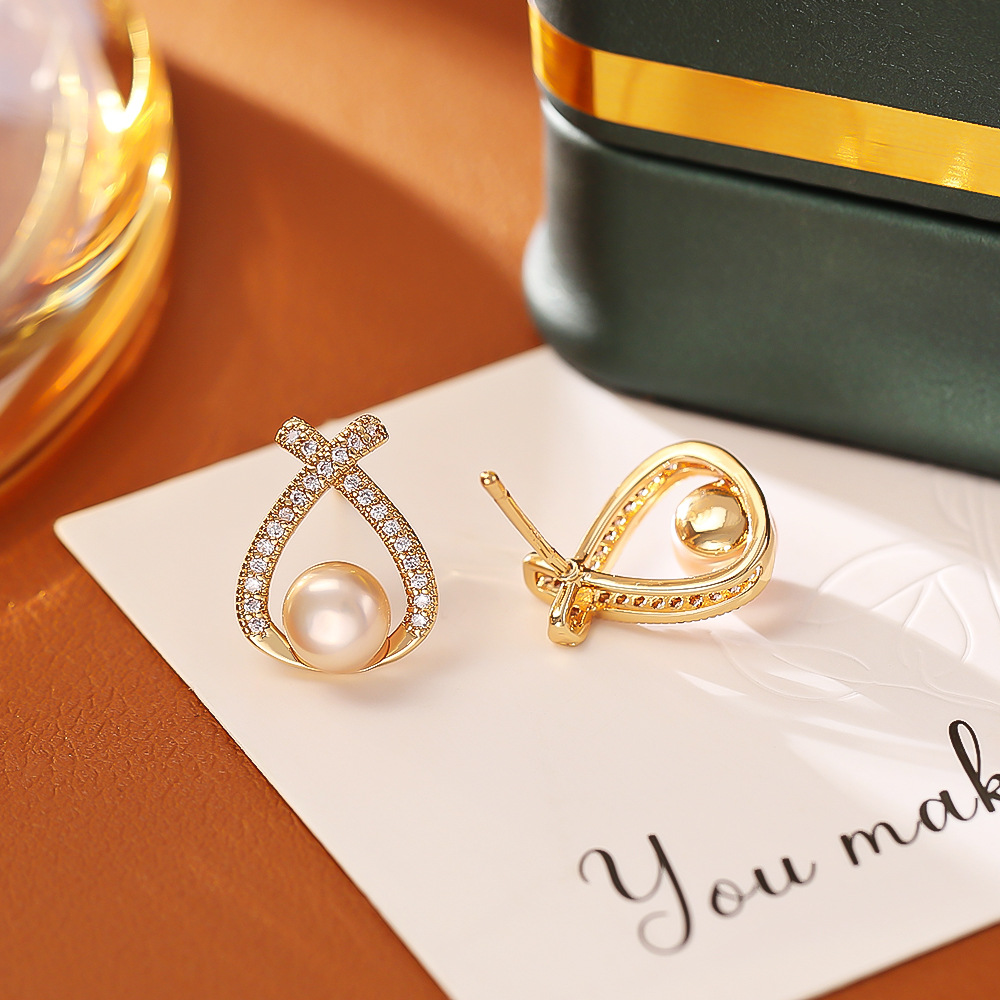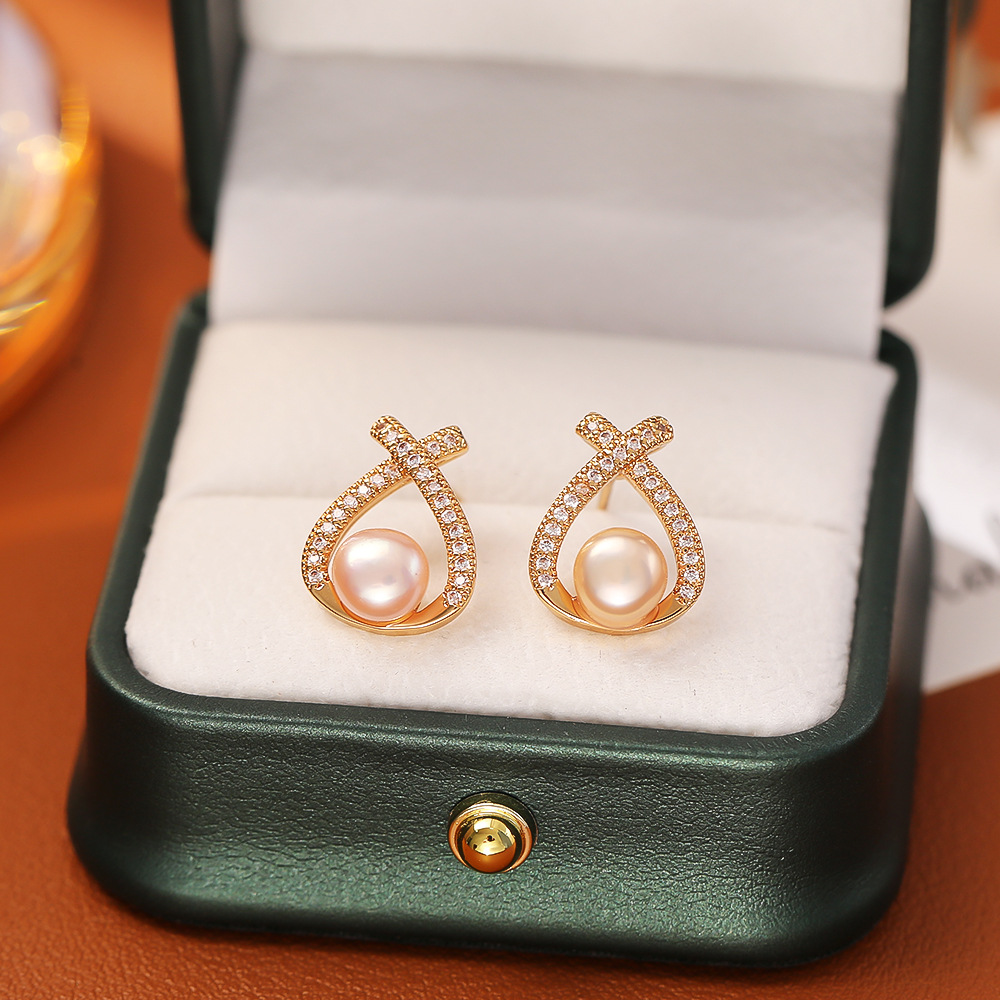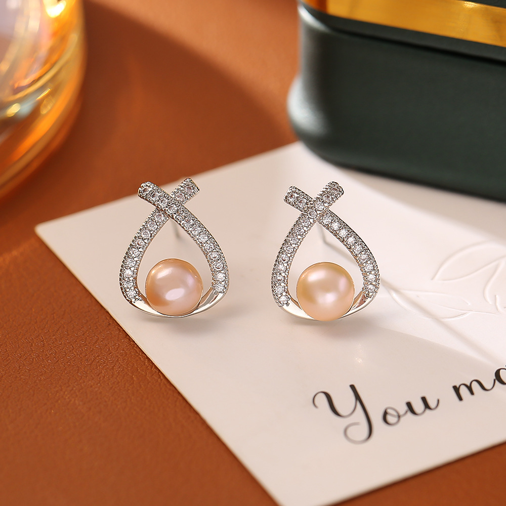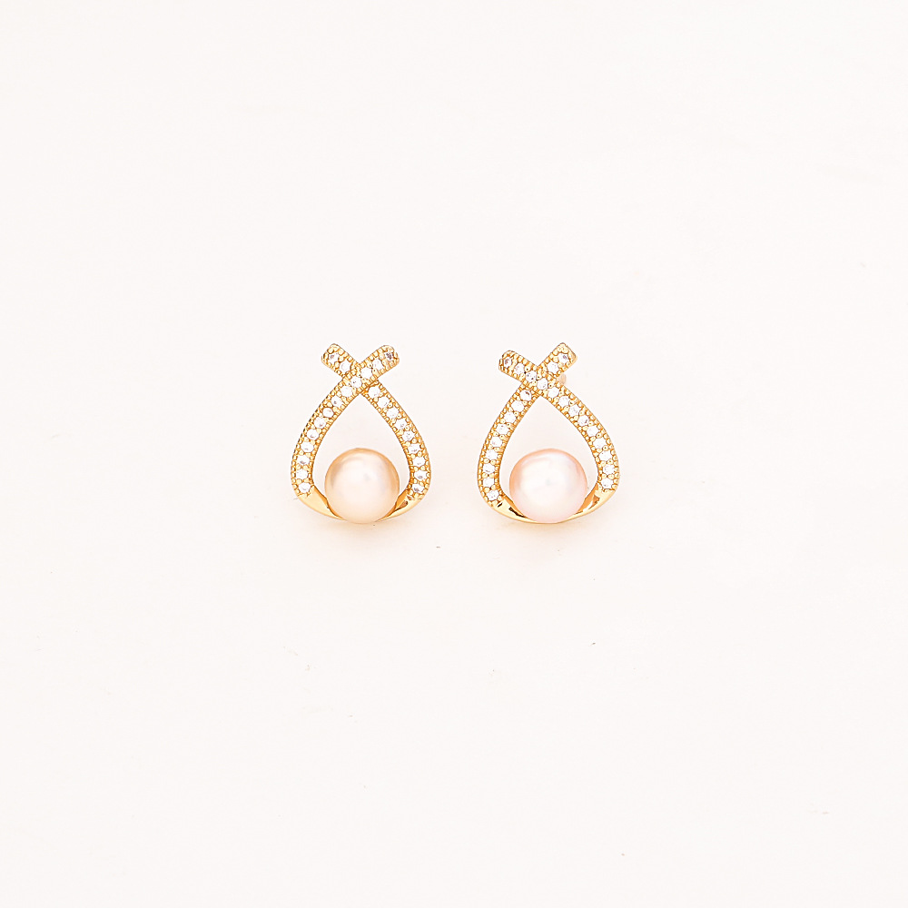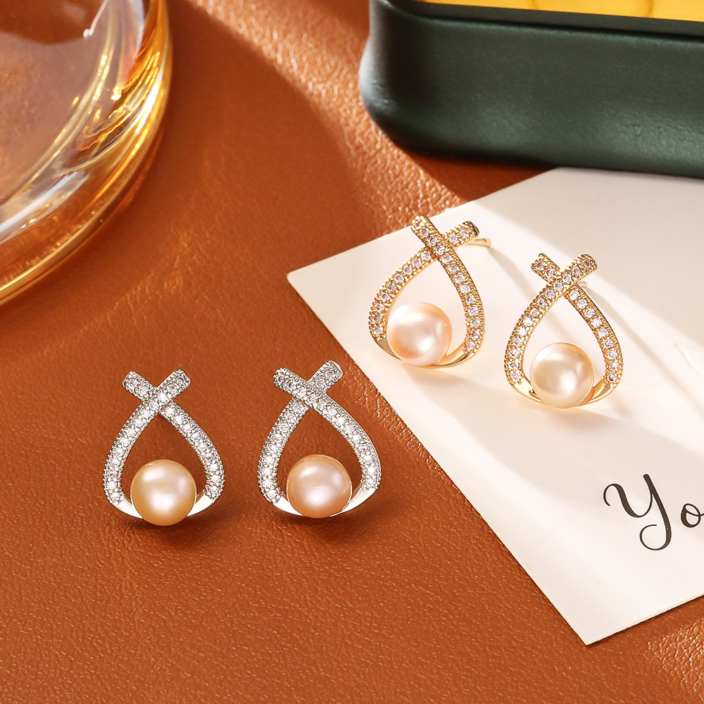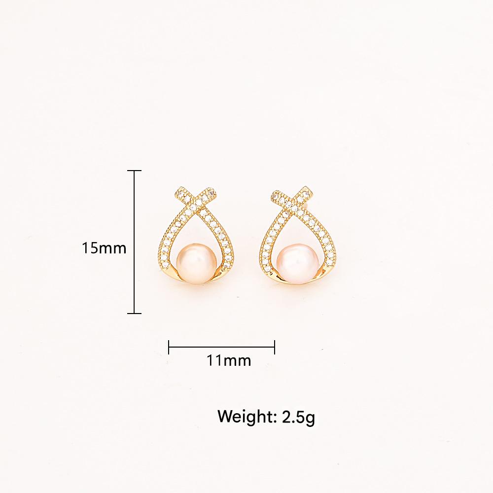 Cilindrata Zircone Orecchini in ottone micro pavimenta, with perla d'acquadolce coltivata naturalmente, placcato, Micro spianare cubic zirconia & per la donna & cavo, nessuno, Venduto da coppia
