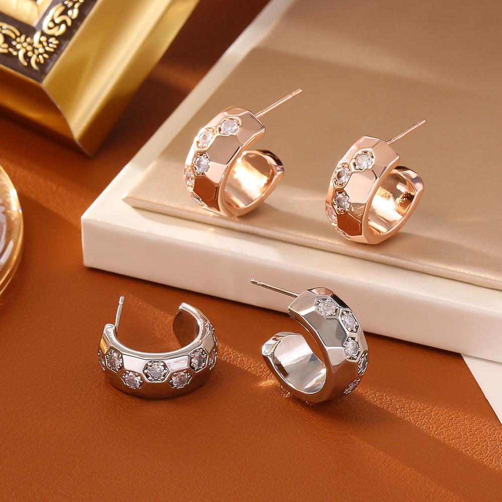 Cilindrata Zircone Orecchini in ottone micro pavimenta, placcato, tre pezzi & per la donna, dorato, Venduto da set