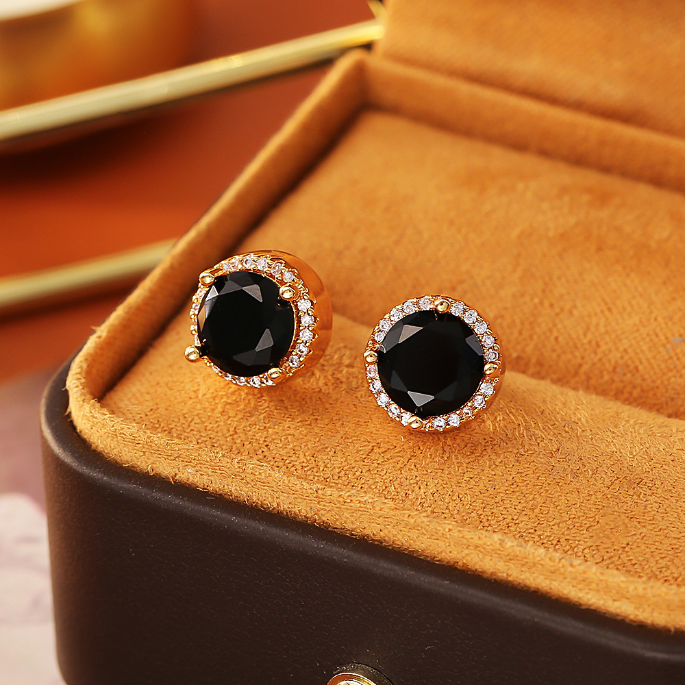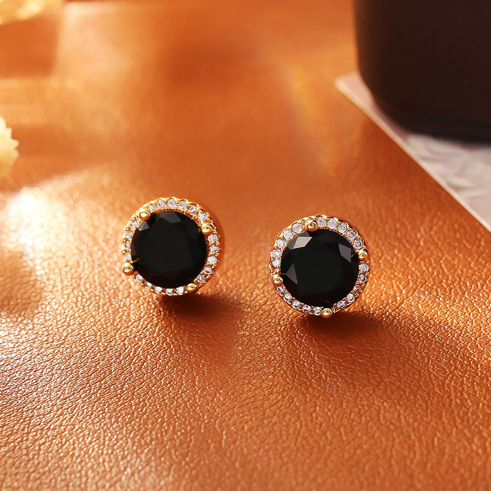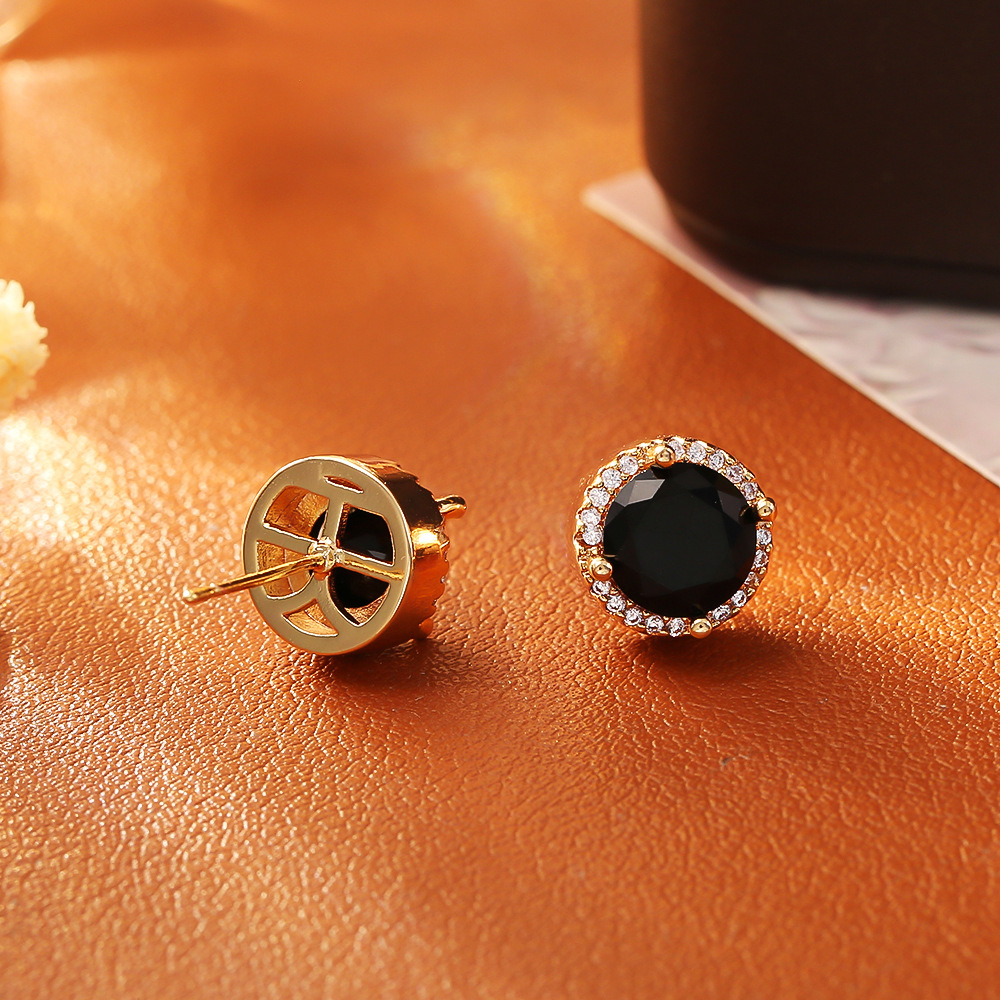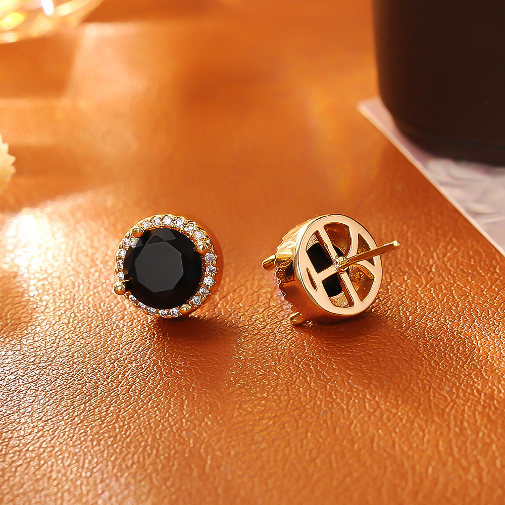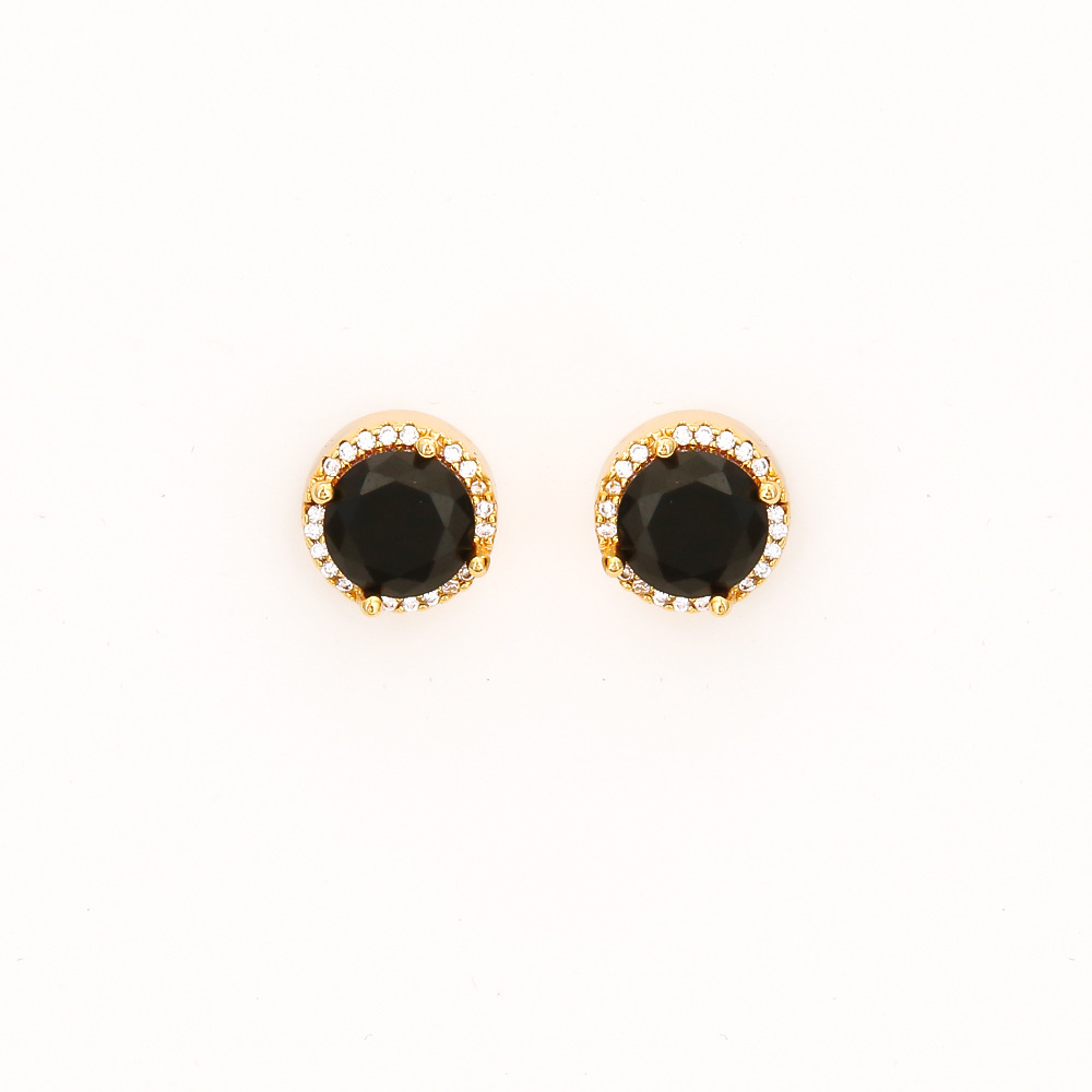 Cilindrata Zircone Orecchini in ottone micro pavimenta, placcato oro vero, gioielli di moda & Micro spianare cubic zirconia & per la donna, nero, Venduto da coppia