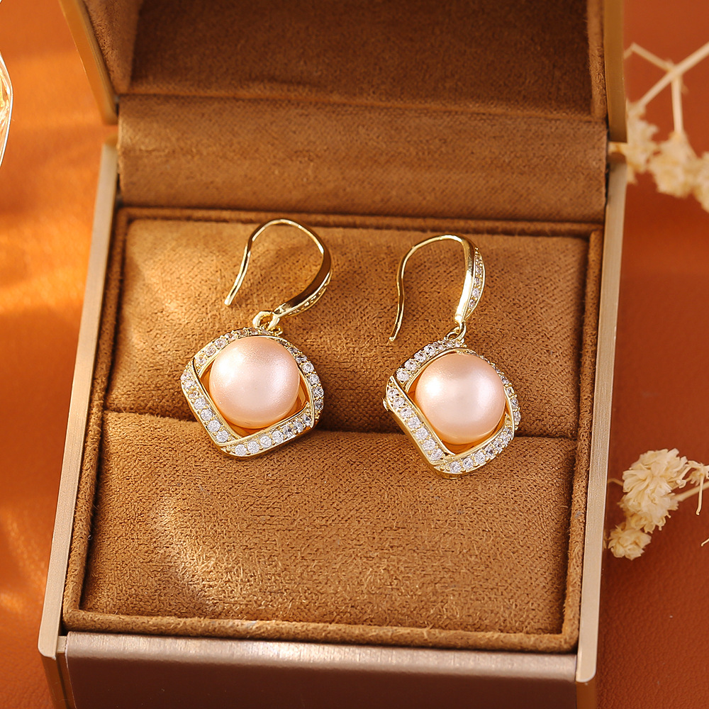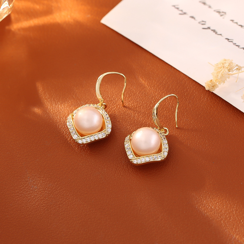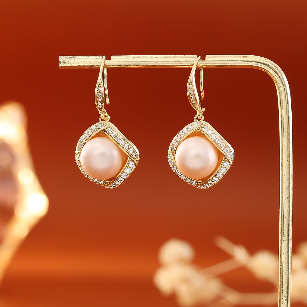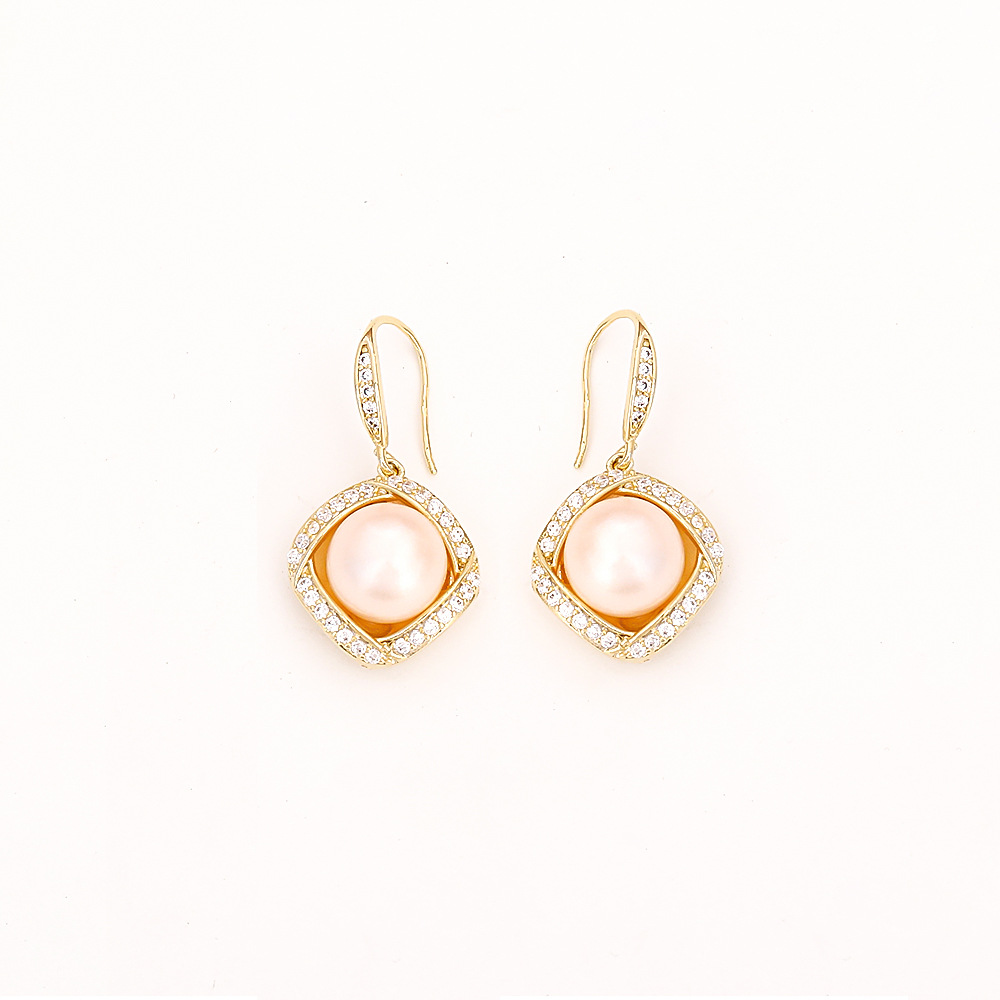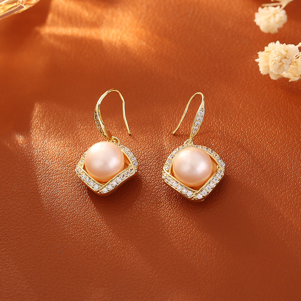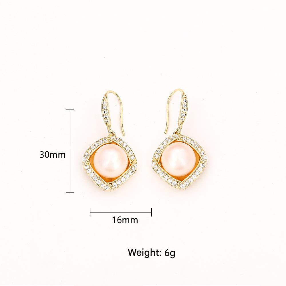 Cilindrata Zircone Orecchini in ottone micro pavimenta, with perla in plastica, placcato oro vero, gioielli di moda & Micro spianare cubic zirconia & per la donna, Venduto da coppia