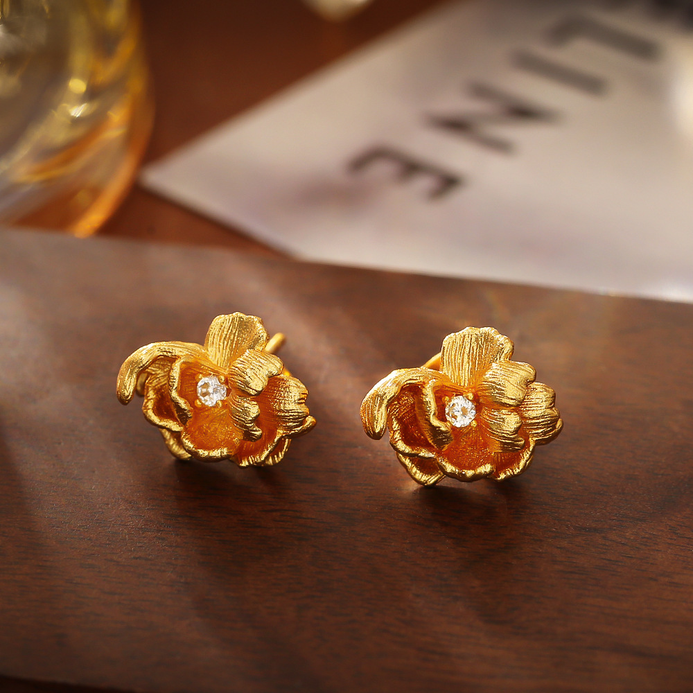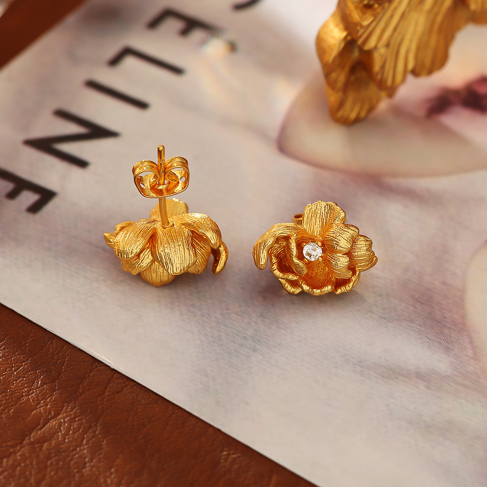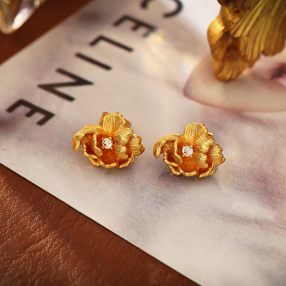Cilindrata Zircone Orecchini in ottone micro pavimenta, Fiore, placcato oro vero, gioielli di moda & Micro spianare cubic zirconia & per la donna, Venduto da coppia