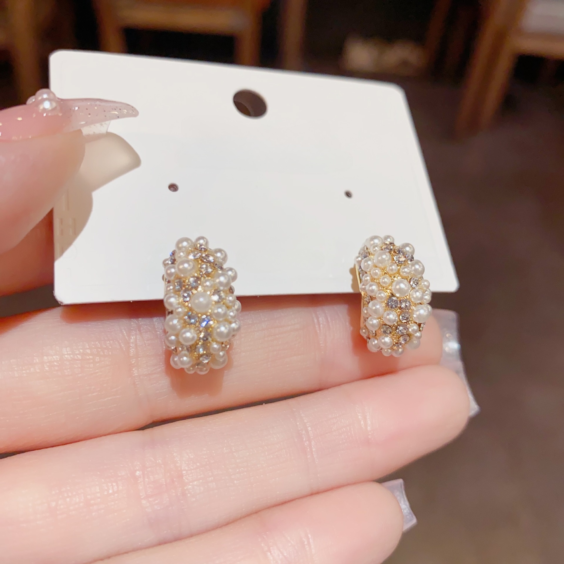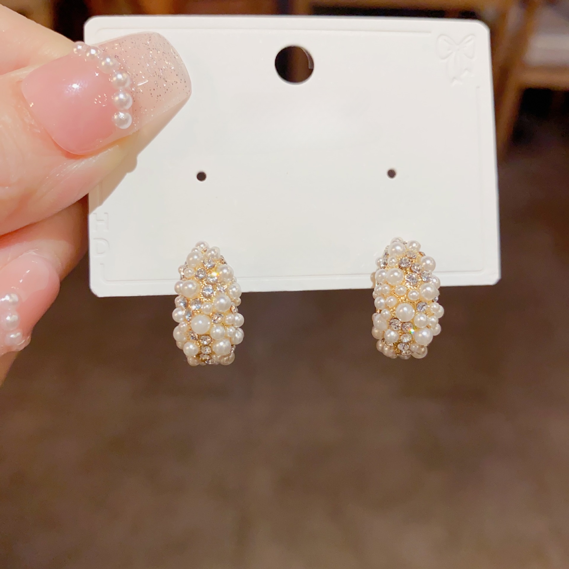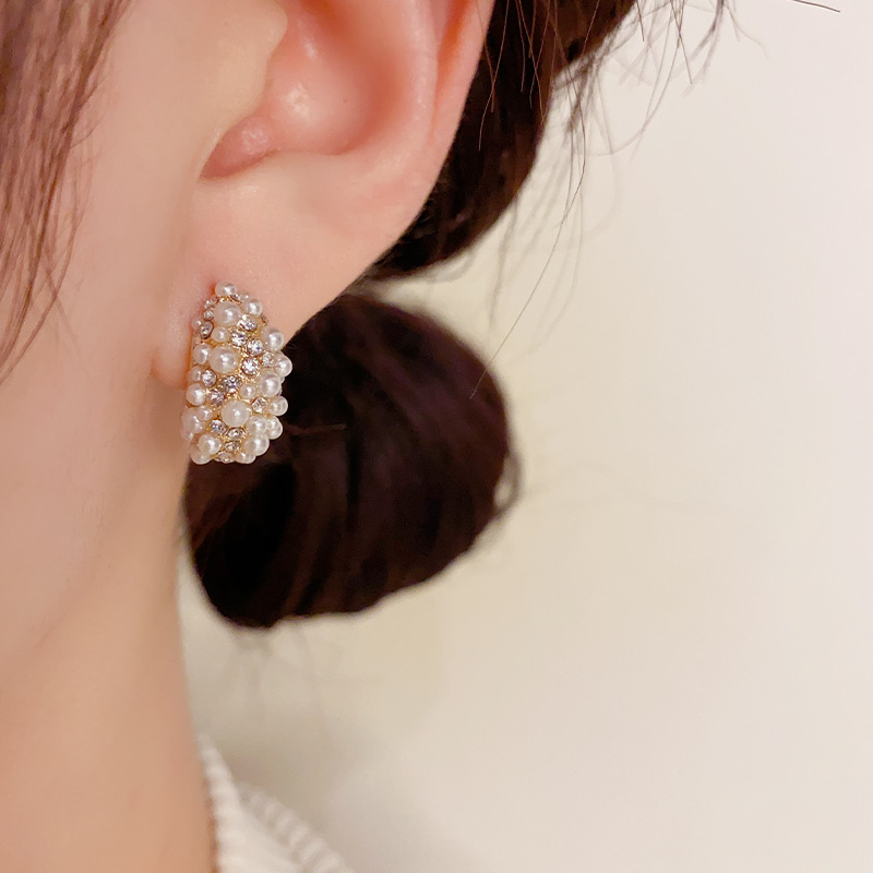 Cilindrata Zircone Orecchini in ottone micro pavimenta, with perla in plastica, placcato oro vero, gioielli di moda & Micro spianare cubic zirconia & per la donna, 18x10mm, Venduto da coppia