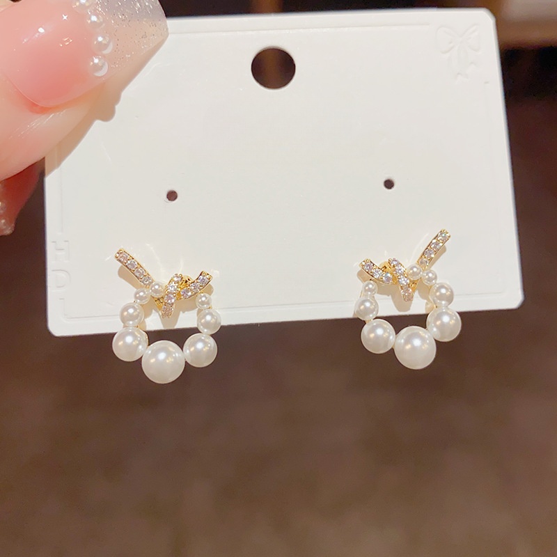Cilindrata Zircone Orecchini in ottone micro pavimenta, with perla in plastica, Placcato in oro 14K, Micro spianare cubic zirconia & per la donna & cavo, 18x14mm, Venduto da coppia