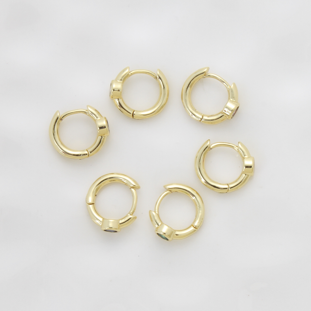 Cilindrata Zircone Orecchini in ottone micro pavimenta, placcato, tre pezzi & per la donna, dorato, Venduto da set