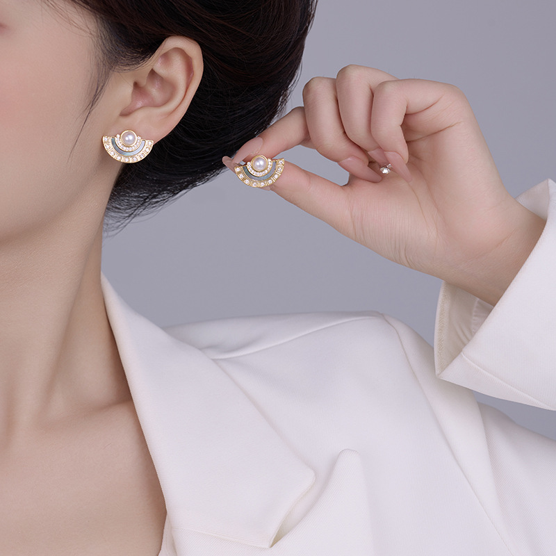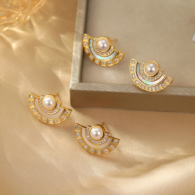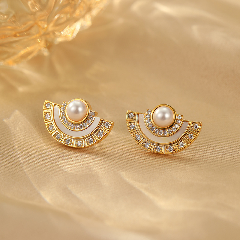 Cilindrata Zircone Orecchini in ottone micro pavimenta, with bianco conchiglia & conchiglia Abalone, laccato oro 18K, materiali diversi per la scelta & Micro spianare cubic zirconia & per la donna, nessuno, 22x15mm, Venduto da coppia