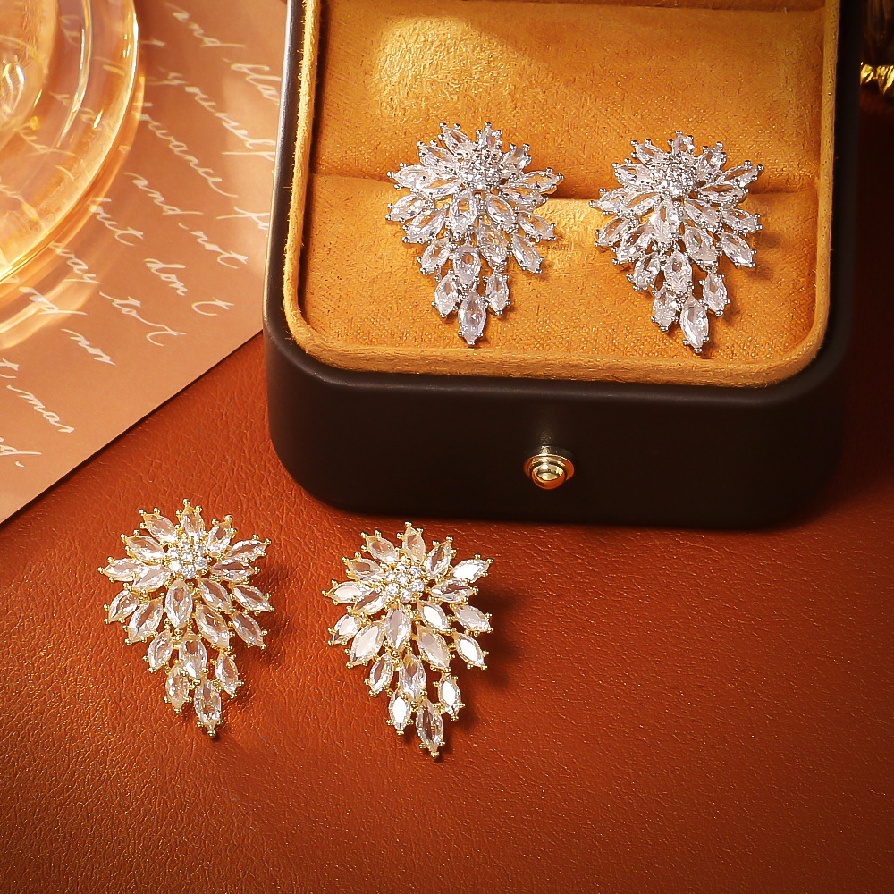 Cilindrata Zircone Orecchini in ottone micro pavimenta, Foglia, placcato, gioielli di moda & Micro spianare cubic zirconia & per la donna, nessuno, Venduto da PC