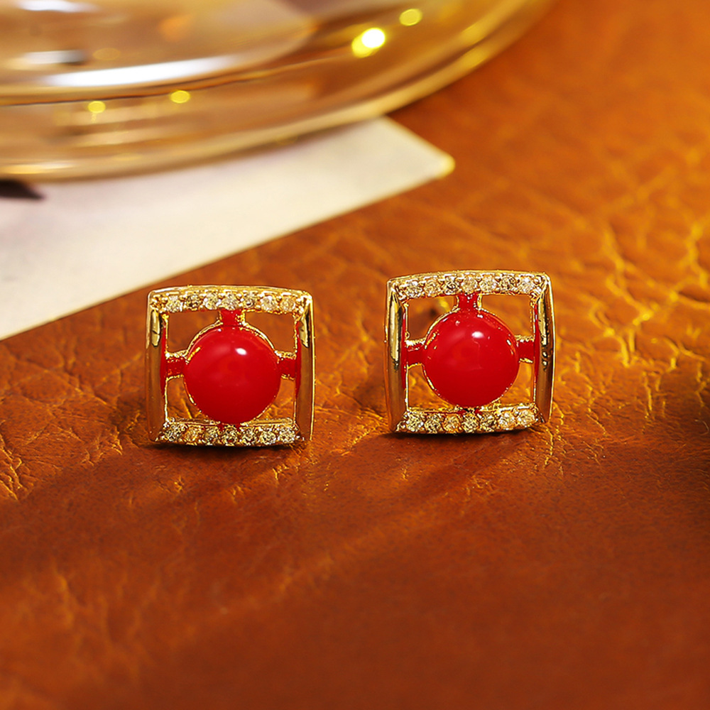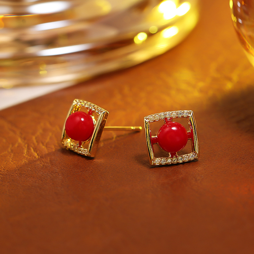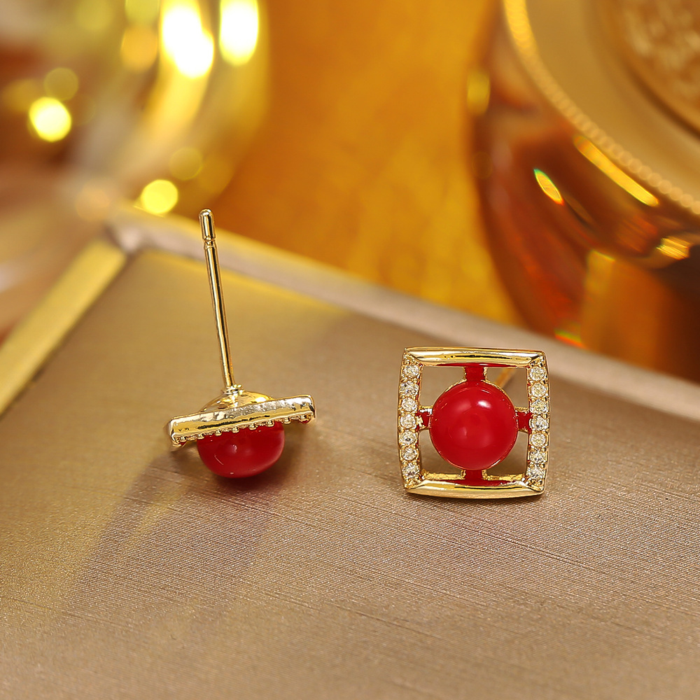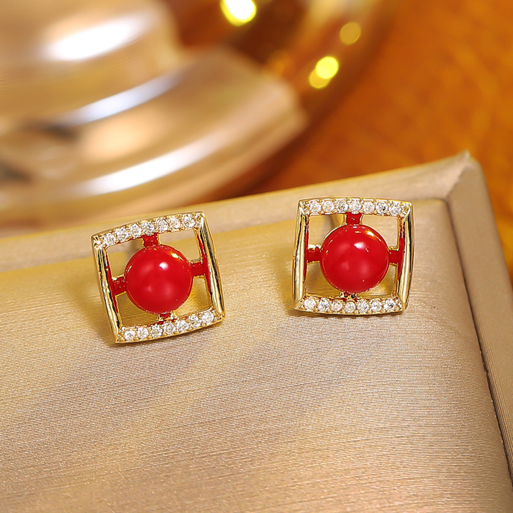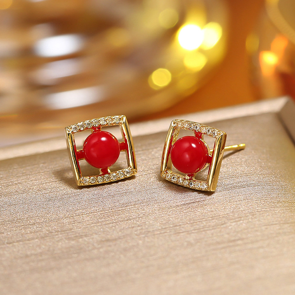 Cilindrata Zircone Orecchini in ottone micro pavimenta, Quadrato, placcato oro vero, Micro spianare cubic zirconia & per la donna & smalto & cavo, assenza di nichel,piombo&cadmio, Venduto da coppia