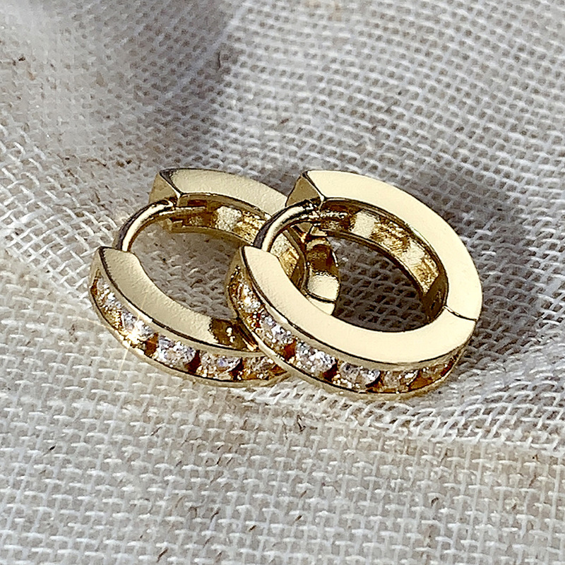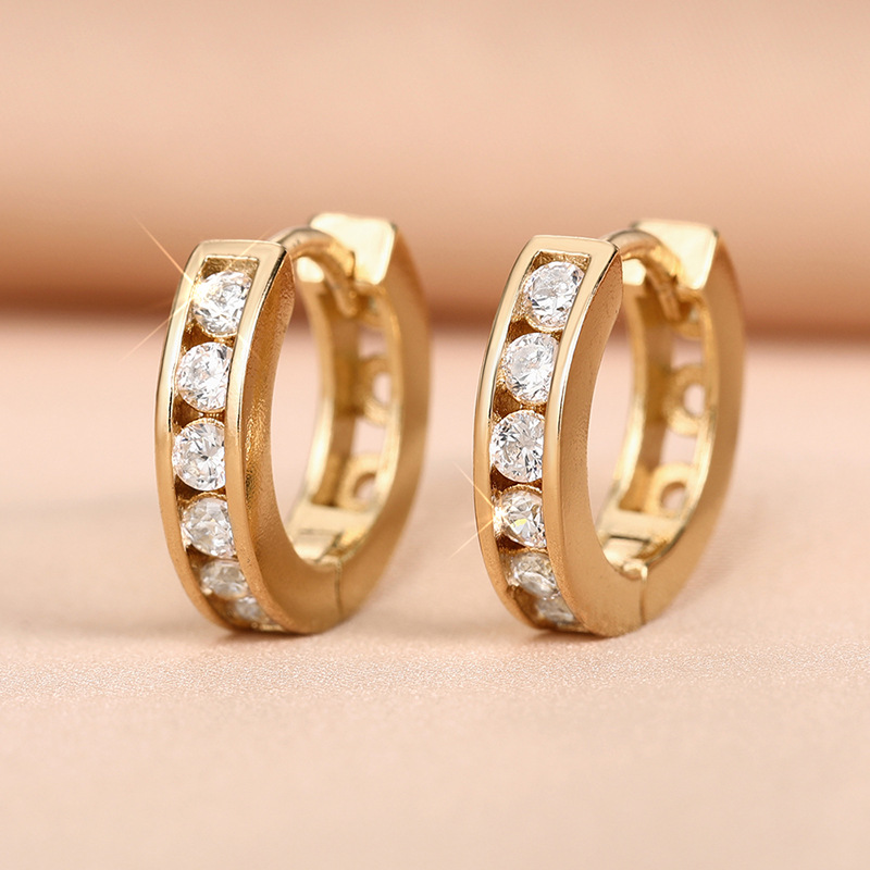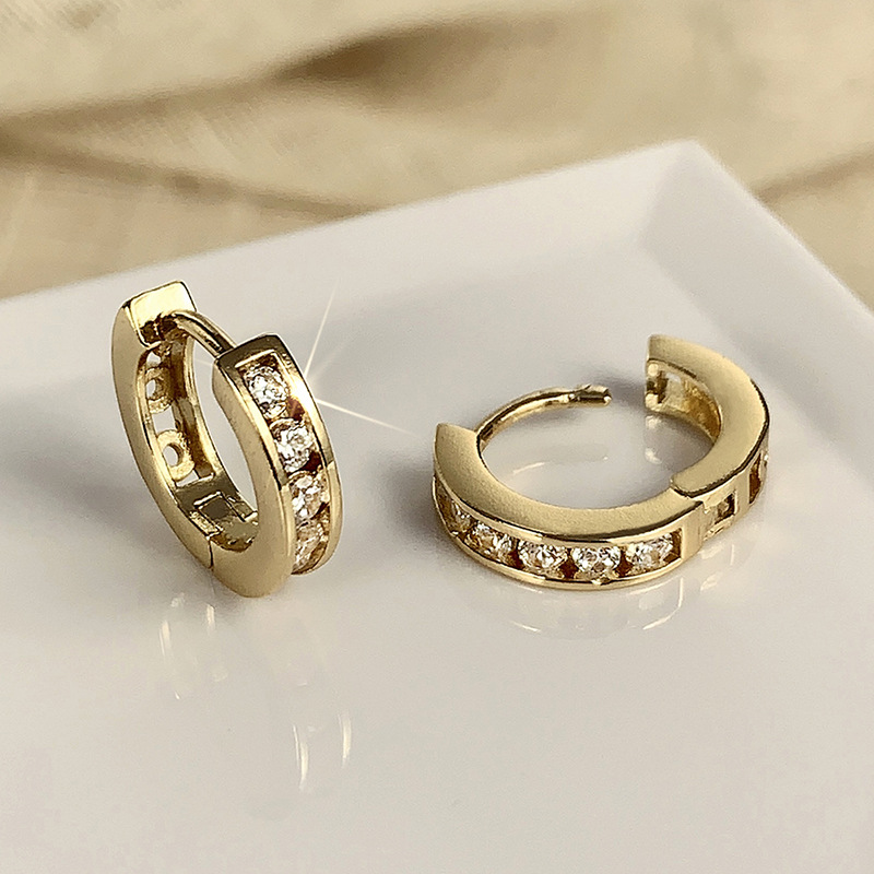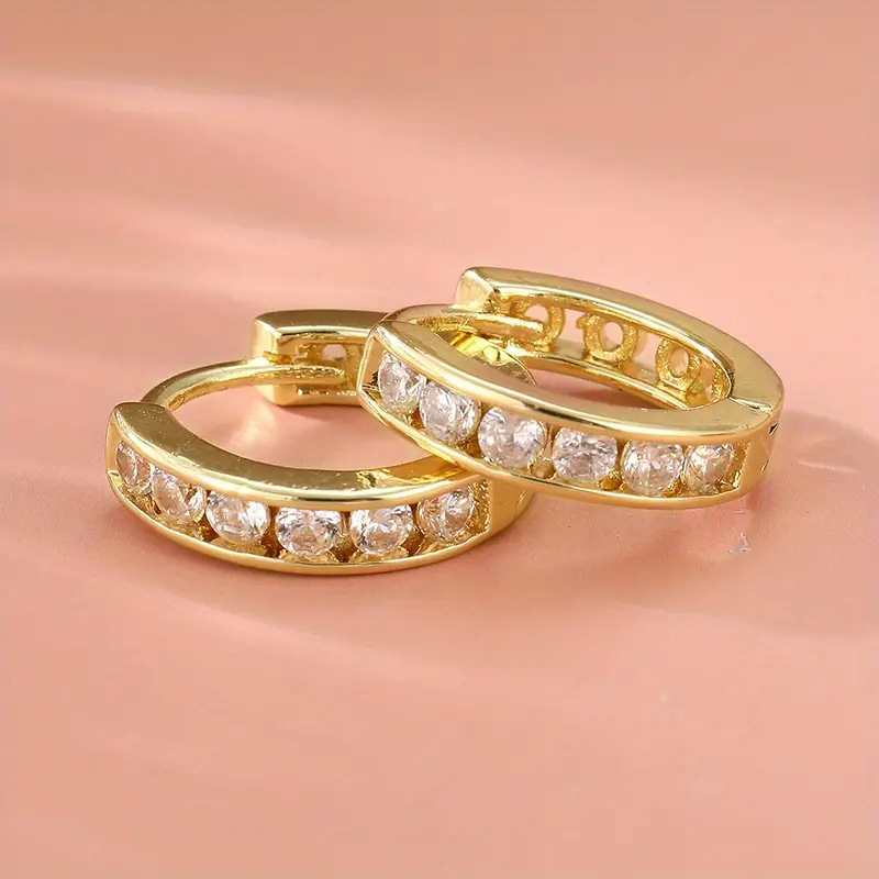 Cilindrata Zircone Orecchini in ottone micro pavimenta, placcato, tre pezzi & per la donna, dorato, Venduto da set